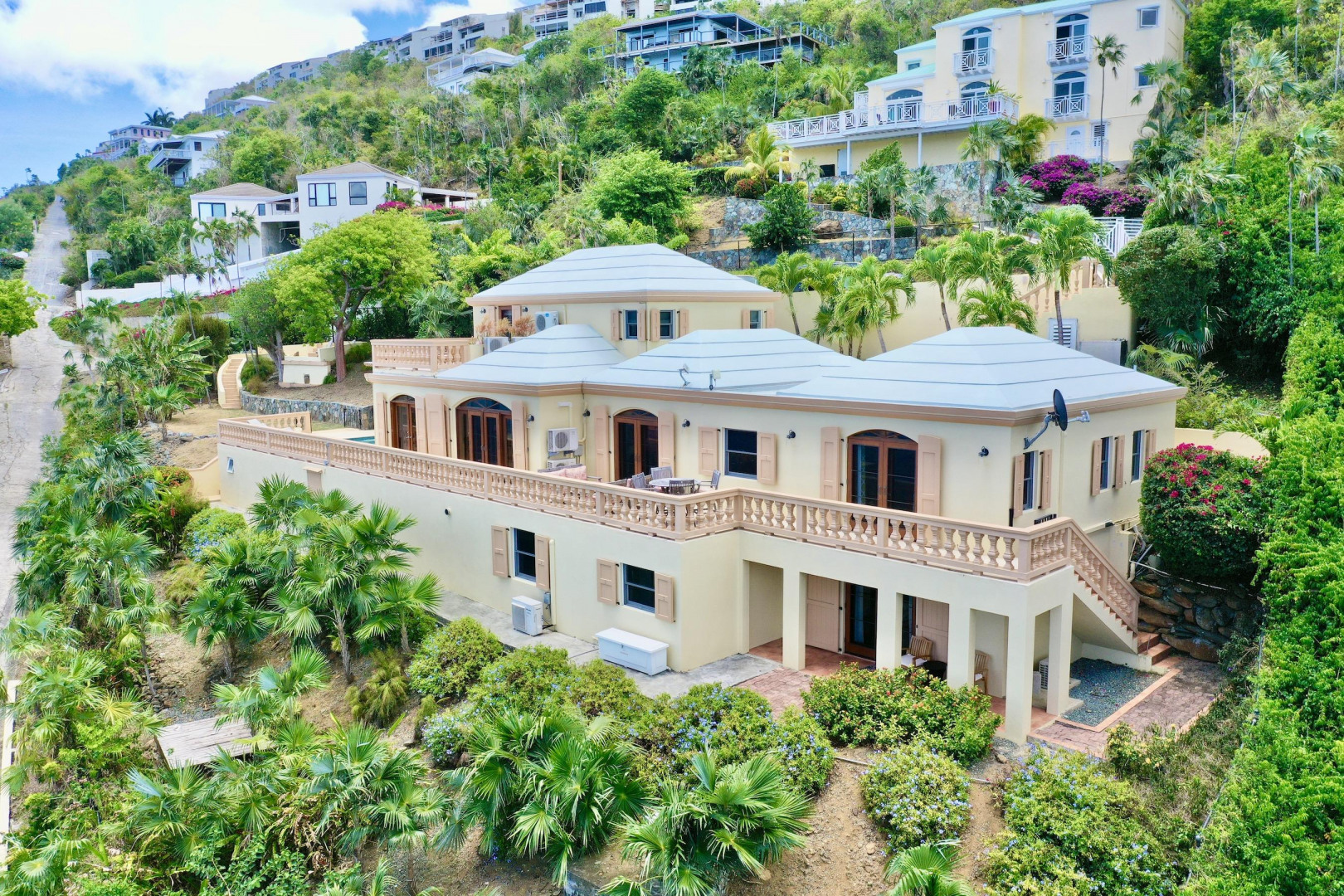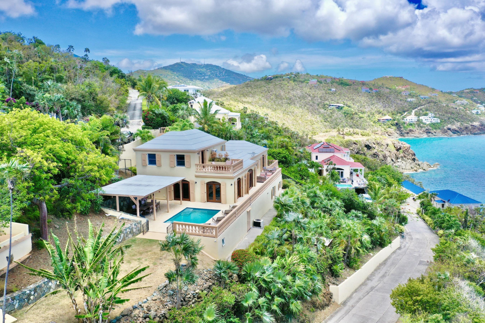 Villa Harmony is a 4 bedroom 3.5 bath villa with ocean and down island views from all rooms. Fabulous chefs kitchen with everything from granite countertops to warming drawers and wine coolers. Lots of room to entertain around the heated pool. Solid masonry home including the gutters. Full auto generator with 450 gallon diesel tank. This villa has been lovingly and meticulously cared for.