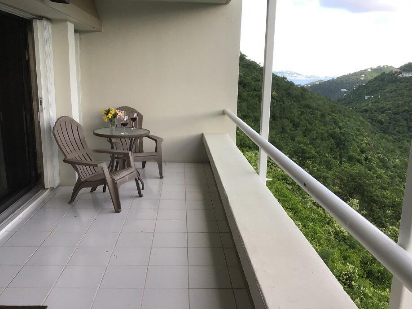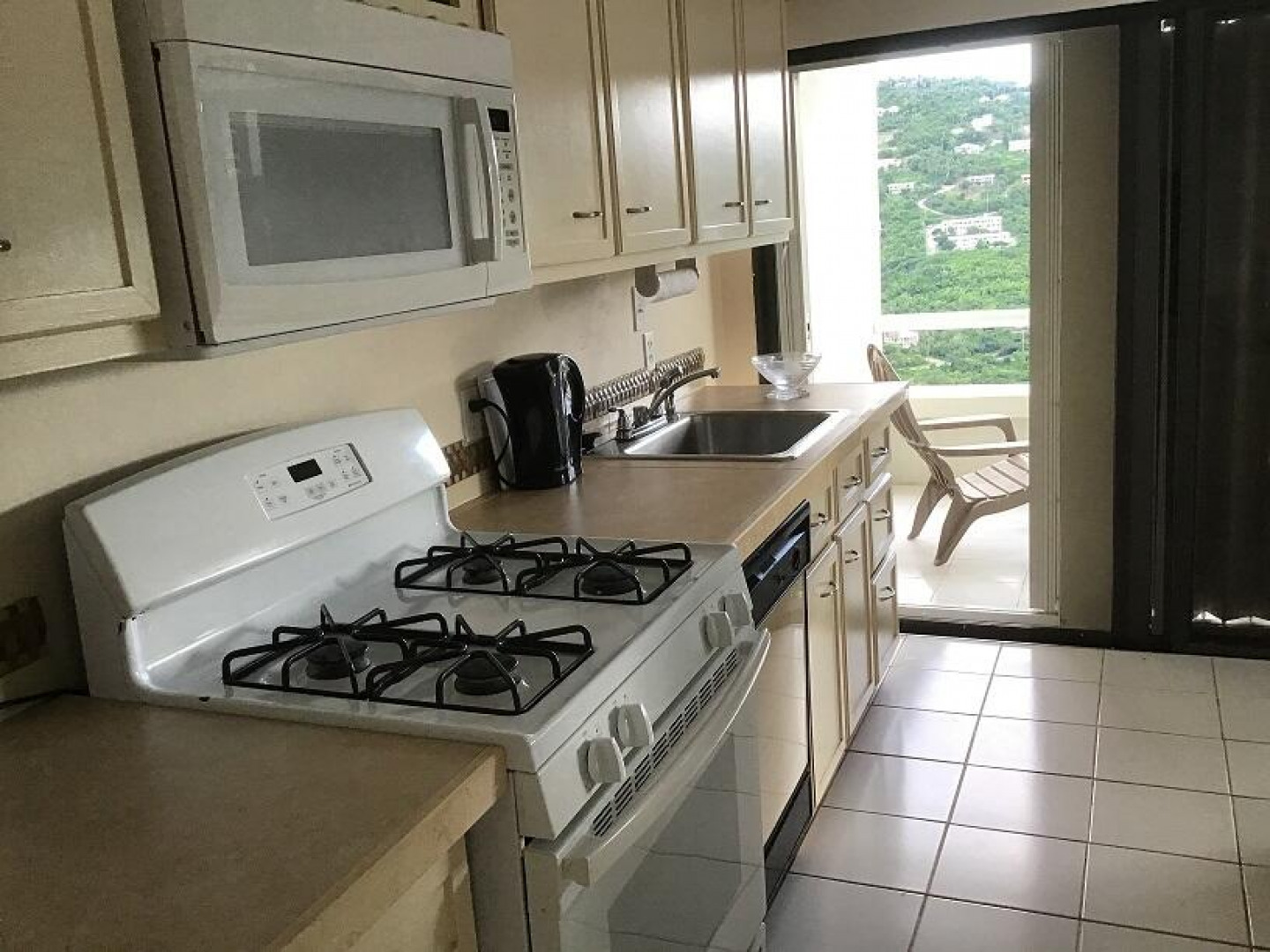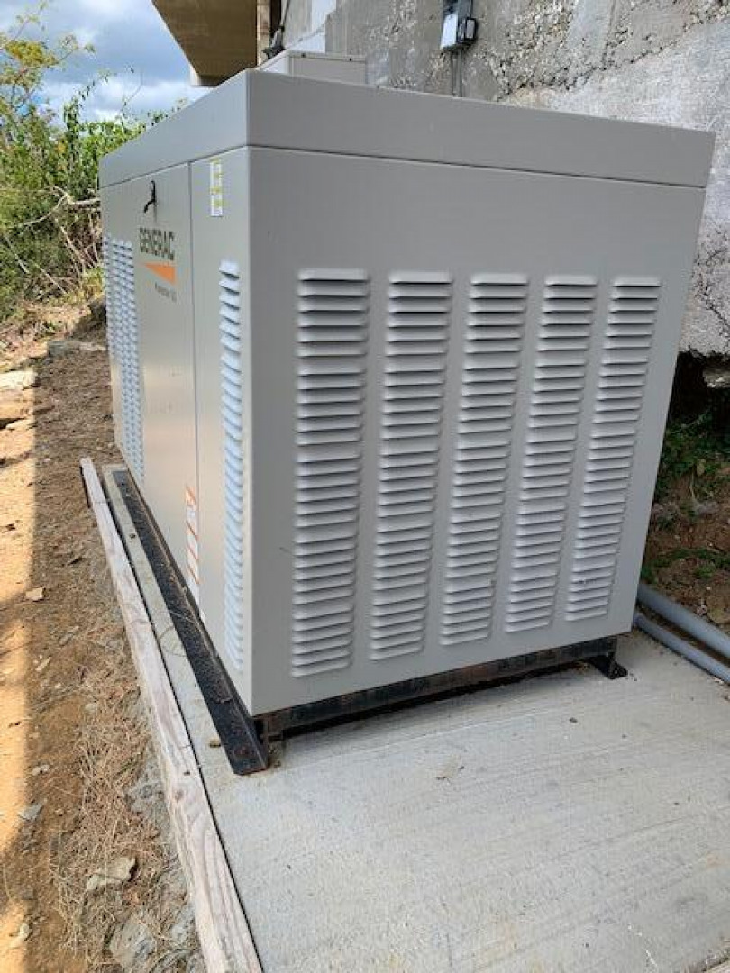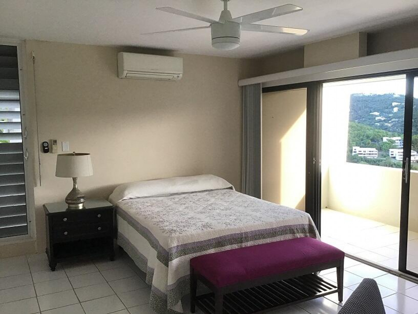 Spectacular view of the golf course with glimpses of st. John and Magens Bay. Living room has brand new PGT storm-resistant sliding glass doors. Accordian-style and roll down storm shutters throughout. Brand new 27 kilowatt liquid-cooled propane generator (fuel-efficient and whisper-quiet at 1800 rpms) with automatic transfer switch and large fuel tank. All new energy-efficient lighting installed throughout. Mitsubishi energy-efficient split unit air conditioning in living room and bedroom. In-line water filter for entire unit, with ultraviolet purifier. Newly cleaned and coated cistern. New ceiling fans with LED lights. Newly repainted. All new electric outlets and switches. Fully furnished. Washer/dryer, dishwasher, refrigerator, range, microwave, coffeemaker,
