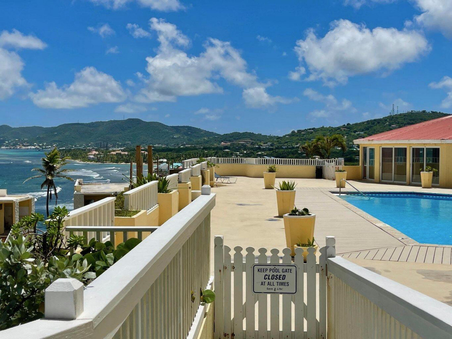 Enjoy fantastic views and cool Caribbean breezes from this updated one bedroom one bathroom St. C Condo. You'll feel right at home with a spacious open floor plan, generous bedroom with two queen beds, and a washer and dryer. This lower level unit is just steps from the pool and complex office. St. C is a gated complex with private parking for your convenience. Just minutes away from downtown Christiansted and is easily accessible to all major roadways. Tenant pays electric and internet.