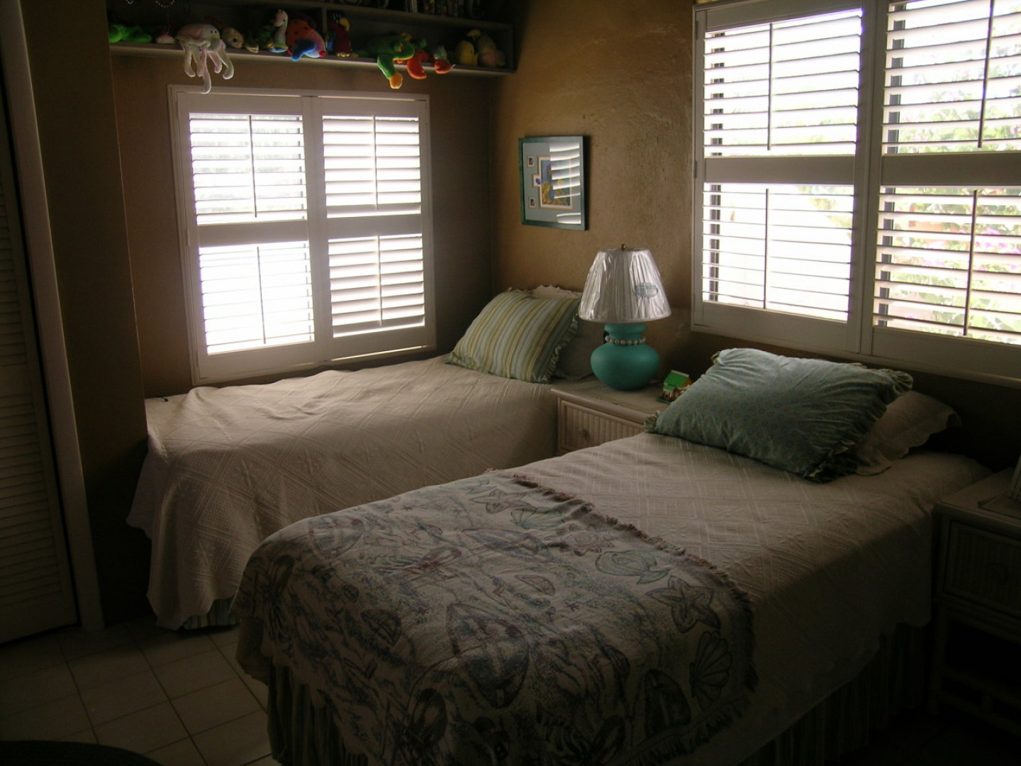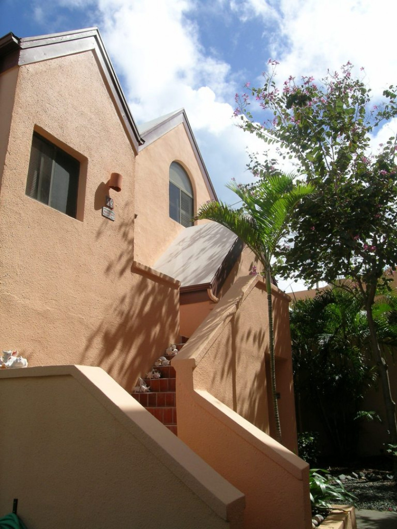 Beautifully decorated upscale 3 bd, 2.5 ba condo. Kitchen & baths remodeled. Fanimation lights & fans. Plantation shutters vinyl all windows. White sand swimming beach. L-shaped gallery roof extended 42'' to enjoy outdoor living. Top level, end, private & quiet(no rentals). Heated pool. Tennis. Generator. East End. One cat ok. See breakdown of improvement $$$ at More.Improvements : Extension of porch roof on gallery $7500. Storm shutters $4500. Plantation shutters vinyl $12,000. Fanimation fans $6000. Remodels: Master Bath $2700, 1/2 ba $1800, upstairs bath $700, kitchen incl fridge $16k, plants $1400, storage upstairs $800. Total $53,400