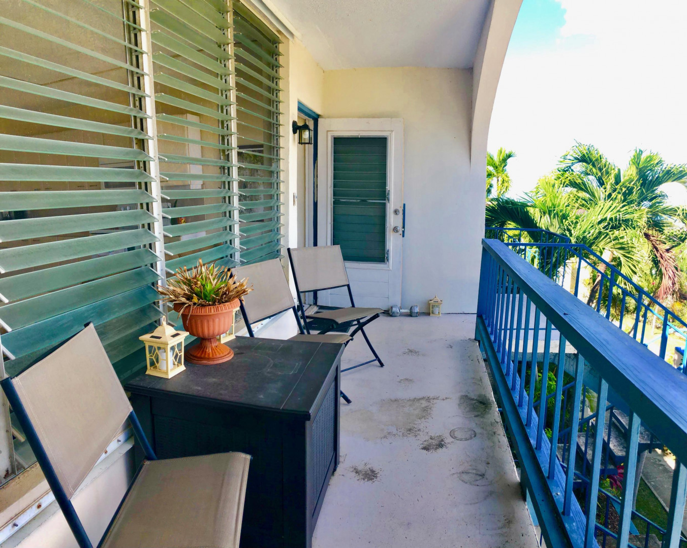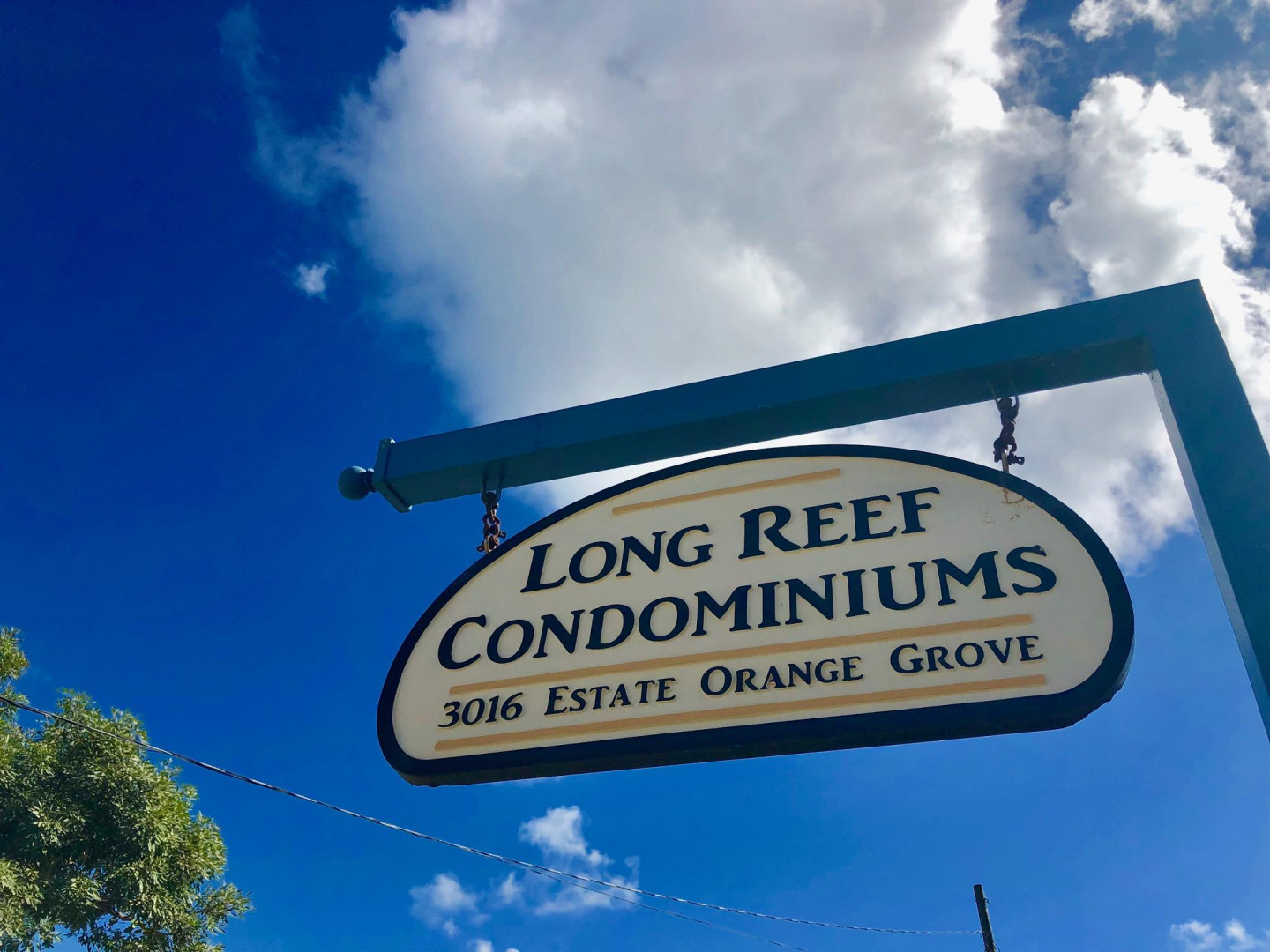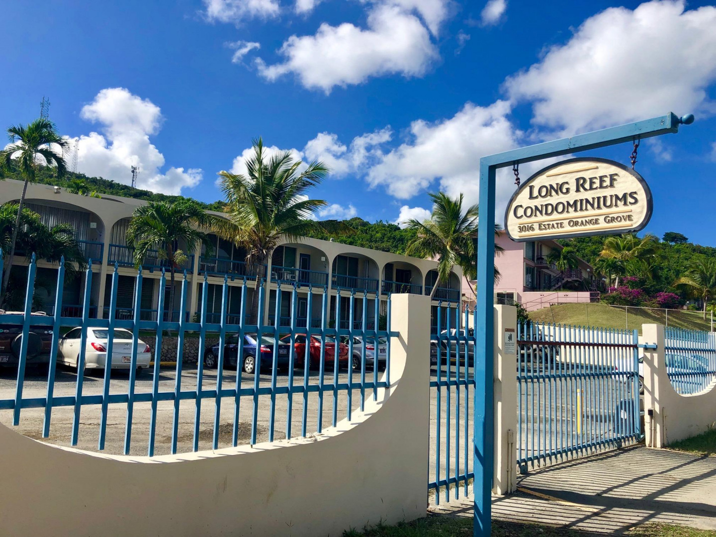 One bedroom condo with beautiful views of Christiansted and the blue Caribbean Sea.3rd floor end unit with great breezes. The common areas are in good shape, nicely landscaped and low fees!Walk to shopping, beaches, restaurants and transportation. Parking lot is fenced.Some tile in the bedroom needs to be replaced. Wasn't put in right and some have come off.