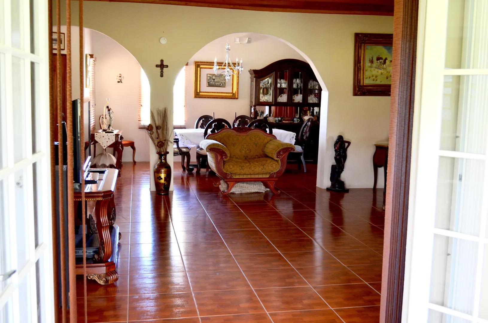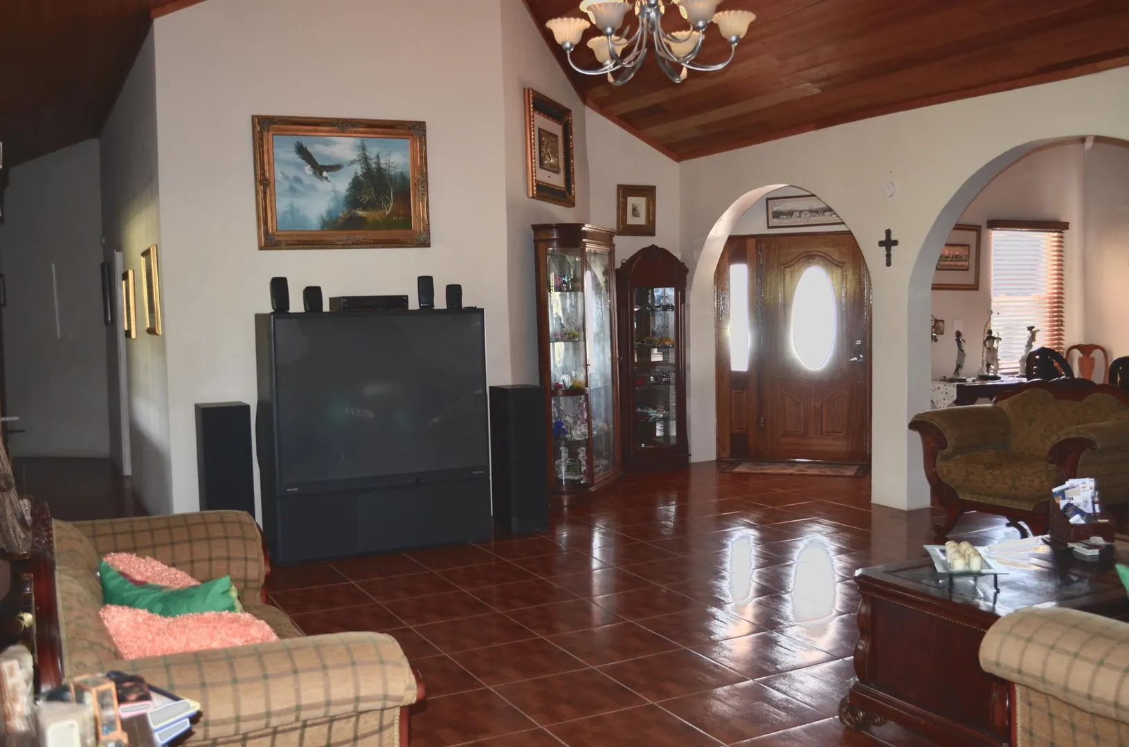 Exceptional 4/21/2 home on 2 acres boasts a dreamy kitchen, a true master suite with deep soaker tub, walk-in closet & split AC & a 2 car garage. So many features deliver luxurious living for a lucky family. Solar hot water heater, bright airy sun room w/wet bar and fridge, sumptuous bedrooms, cypress cathedral ceilings, huge lawn w/fruit trees (mango, coconut, bananas, soursop) & 20 kw generator.