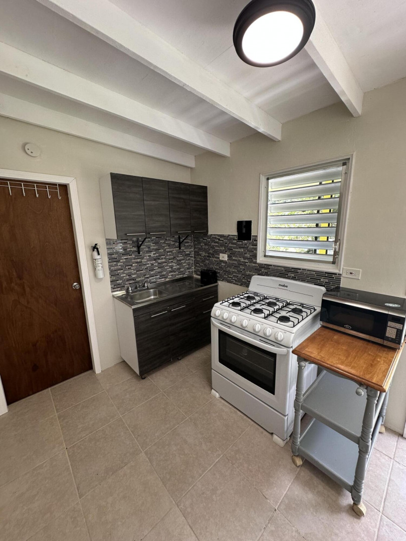 Cheery one bedroom/one bath apartment rental available. Lovely newly remodeled bathroom. Kitchen has been redone with new backsplash over the sink. Relax on the front porch with the convenient roll down sun shade. Rent includes electric (Wapa), with a generous cap amount, internet and water. Great central location. The apartment is attached to the home located at 143 Sion Hill.