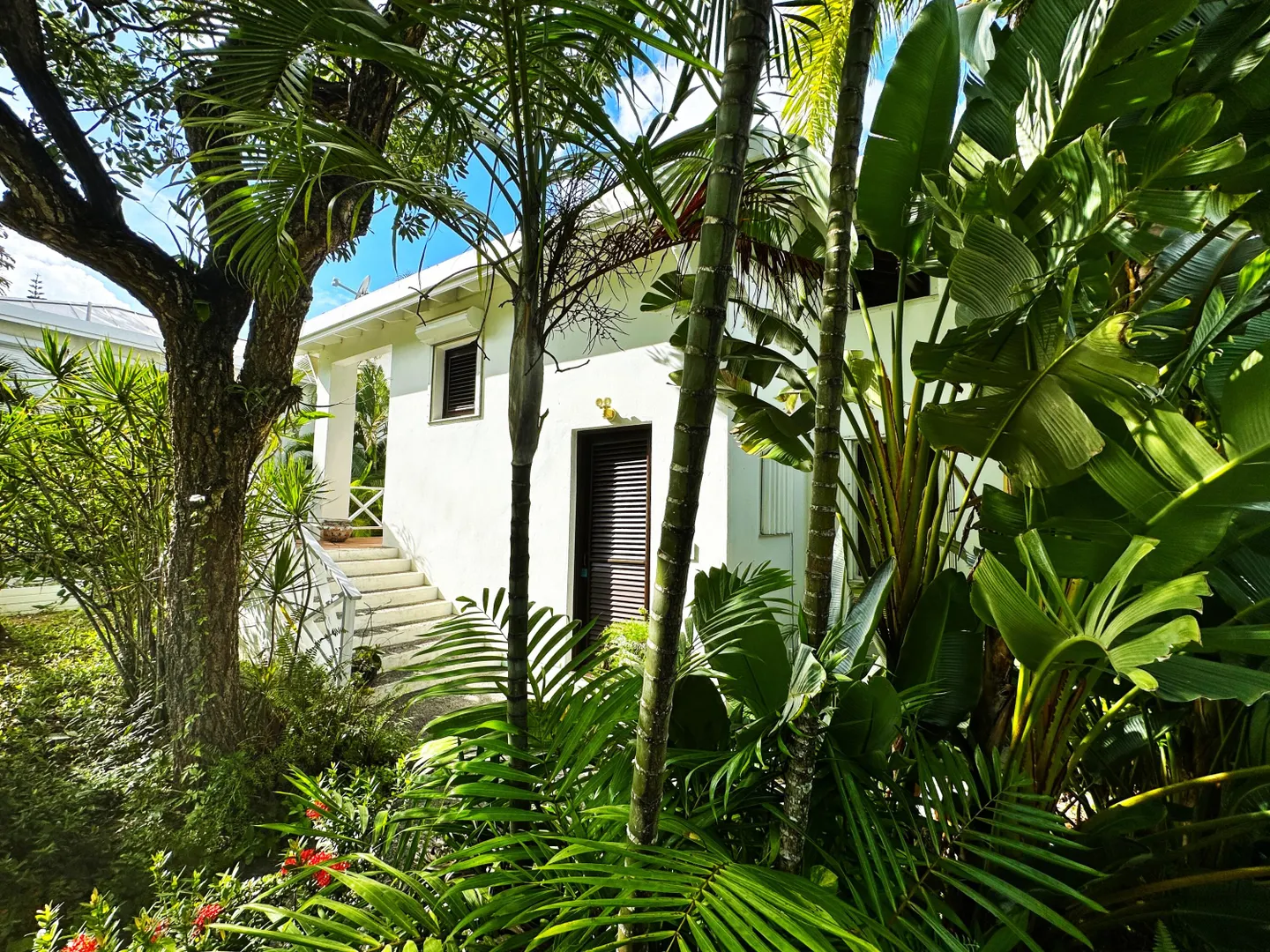 Gorgeous villa on the #2 fairway of beautiful Carambola Golf Course. #15 Sweet Lime is a beautifully and tastefully renovated stand alone villa with three bedrooms and three and a half baths. The huge great room with wood floors and vaulted ceilings includes a nicely appointed kitchen with custom mahogany cabinets and black granite countertops. Four sets of French doors open to a covered balcony with lush tropical views that wraps around for plenty outdoor space for relaxing, grilling, and hobbies. Upper level also includes a guest bath and a nice office space. Lower level offers three large air conditioned bedrooms with en suite baths and a laundry room. Amenities of this gated community include Carambola pool, tennis courts, pickle ball courts, and beautifully landscaped grounds.