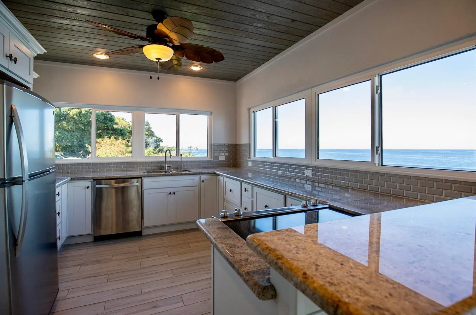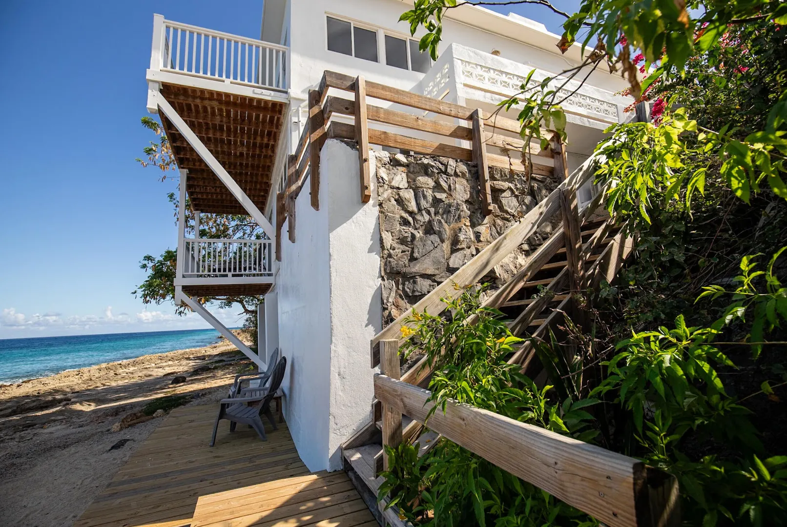 This exceptional waterfront property offers the perfect blend of modern comfort and serene island living. Situated on the coveted west side of St. Croix, near the picturesque Hams Bluff, this home boasts 3 bedrooms, 2 bathrooms, and a 1 bedroom, 1 bathroom apartment, ideal for guests or rental income.Enjoy incredible waterfront views from nearly every room, with impact windows and doors throughout, ensuring both beauty and safety. The concrete roof adds to the property's durability, while the split AC units in each room provide cool comfort year-round.