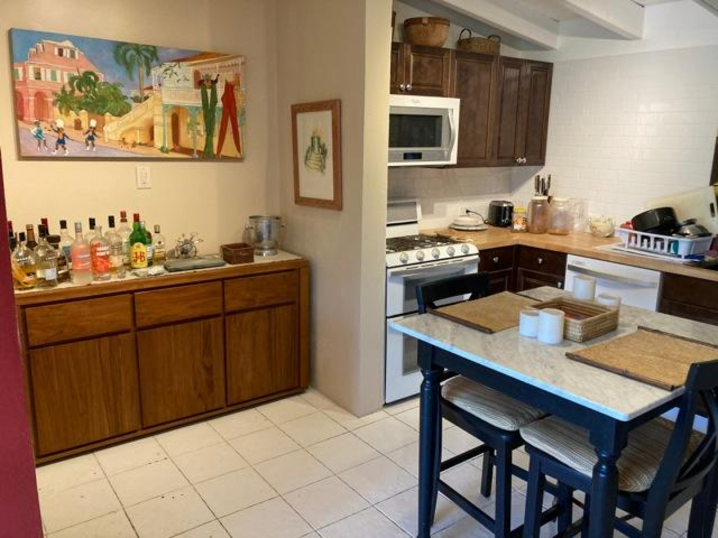 This is two units combined into one, yielding a very spacious and elegant 2 bedroom 3 bath condo. Exquisitely furnished and very private. End unit, high ceilings, large 400 sq. ft gallery overlooking the pool and grounds, and very breezy and comfortable, although 4 split units (brand new) will keep you cool if you prefer AC. Accordian hurricane shutters recently installed on all the sliders, and grillwork removed from sliders to create a more open, inviting space.