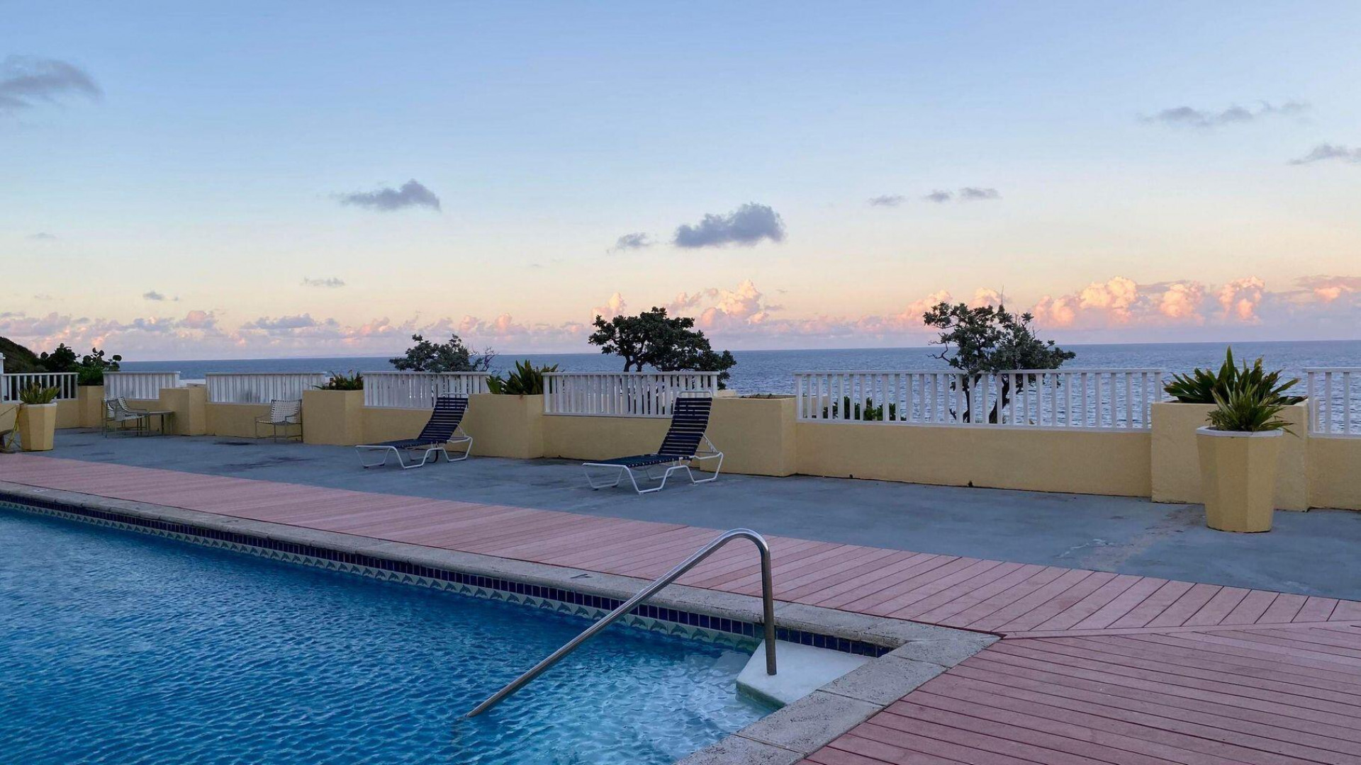 St. C Condos are known for their views and constant trade-winds. Located on a waterfront cliff property overlooking the Caribbean Ocean, Buck Island and down island. Unit 318 is a huge 1 bedroom floor plan allowing for plenty of room to stretch out. The unit comes fully furnished with AC in the bedroom and living room. A top level unit allows for exceptional views. . Pool onsite. Washer and dryer private to unit. Post Office boxes on site. 10 mins to Christiansted as well as Sunny Isles, 15 mins to North shore. Enjoy the sunrises, tradewind breezes and the sounds of the ocean from both the living room and bedroom. Condo fees include insurance, ext. maintenance, pest control, gate, on site staff & office and water.