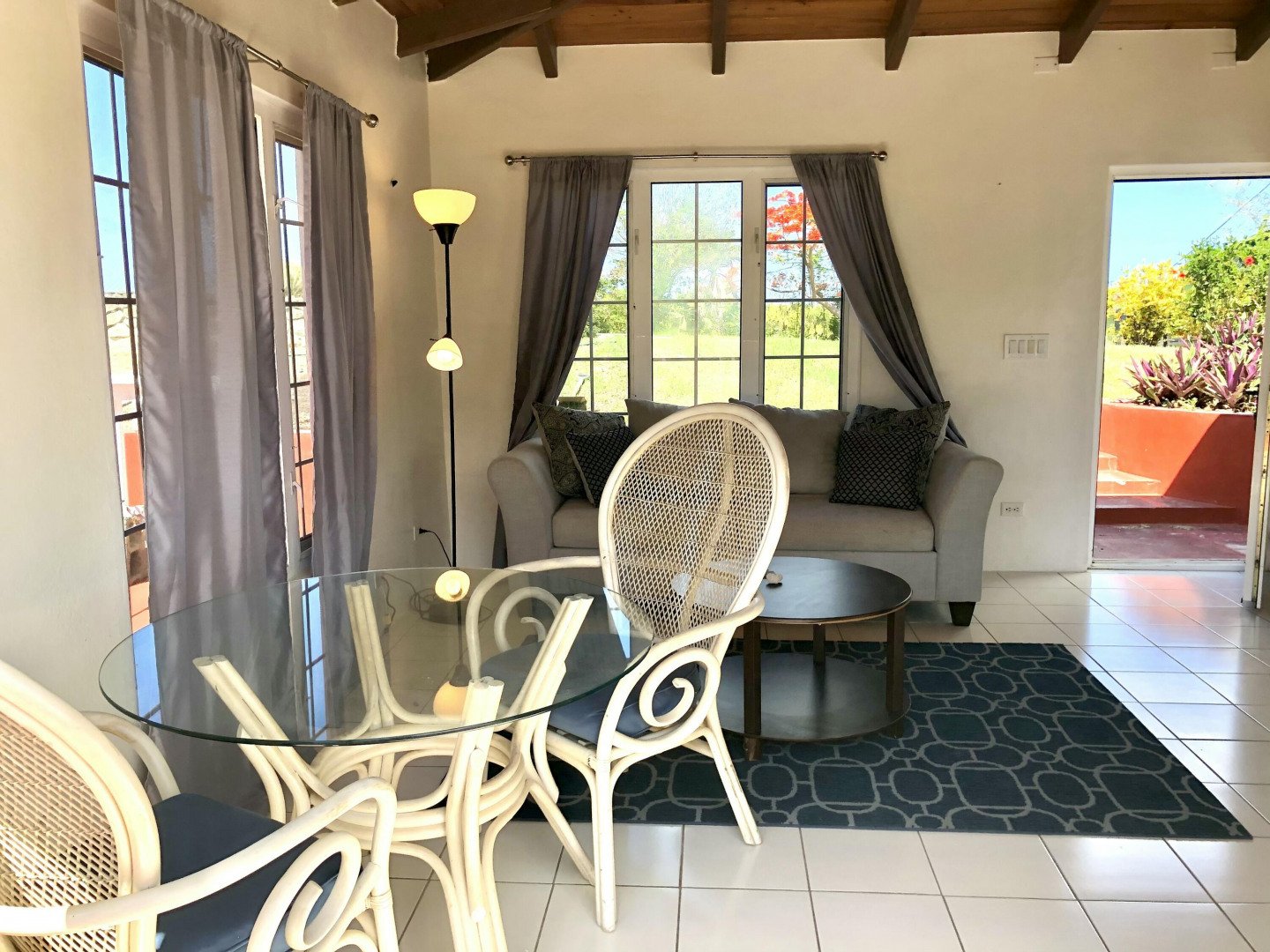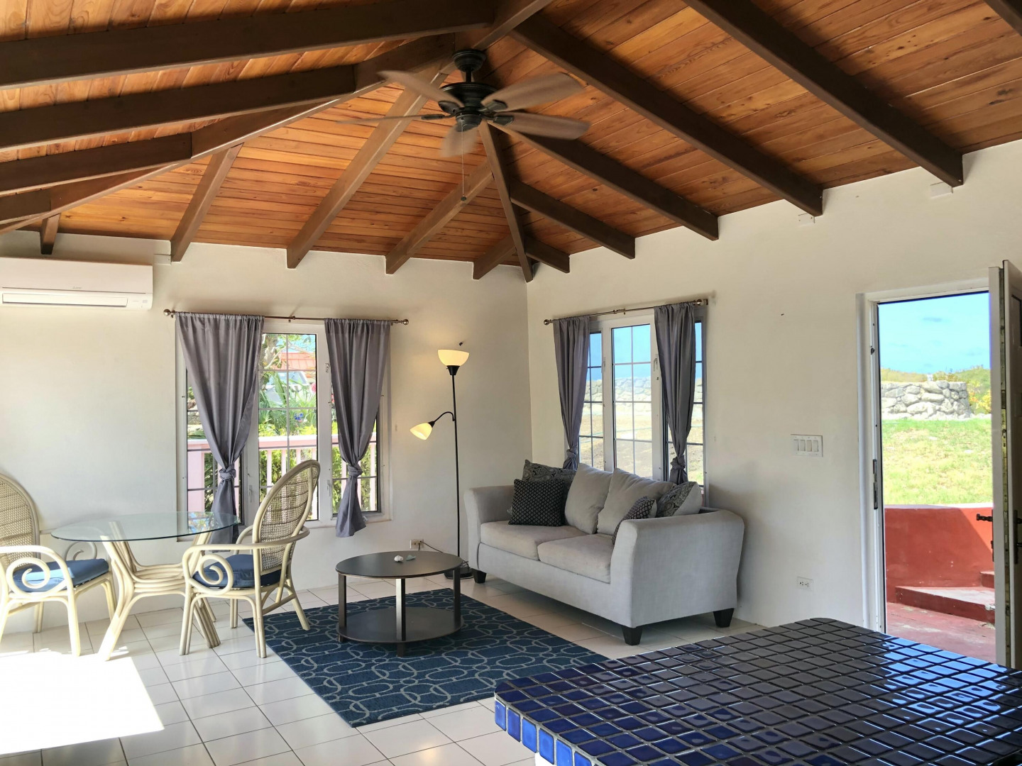 Freestanding 1 BR/1BA cottage on pastoral estate includes a gorgeous sea view at top of entry, split A/C throughout, complementary water, washer/dryer, living room furniture set, ample closet space & private, gated patio. There is a large aggressive dog on the property. Tenant must be OK with dogs. Pets considered with a pet fee.
