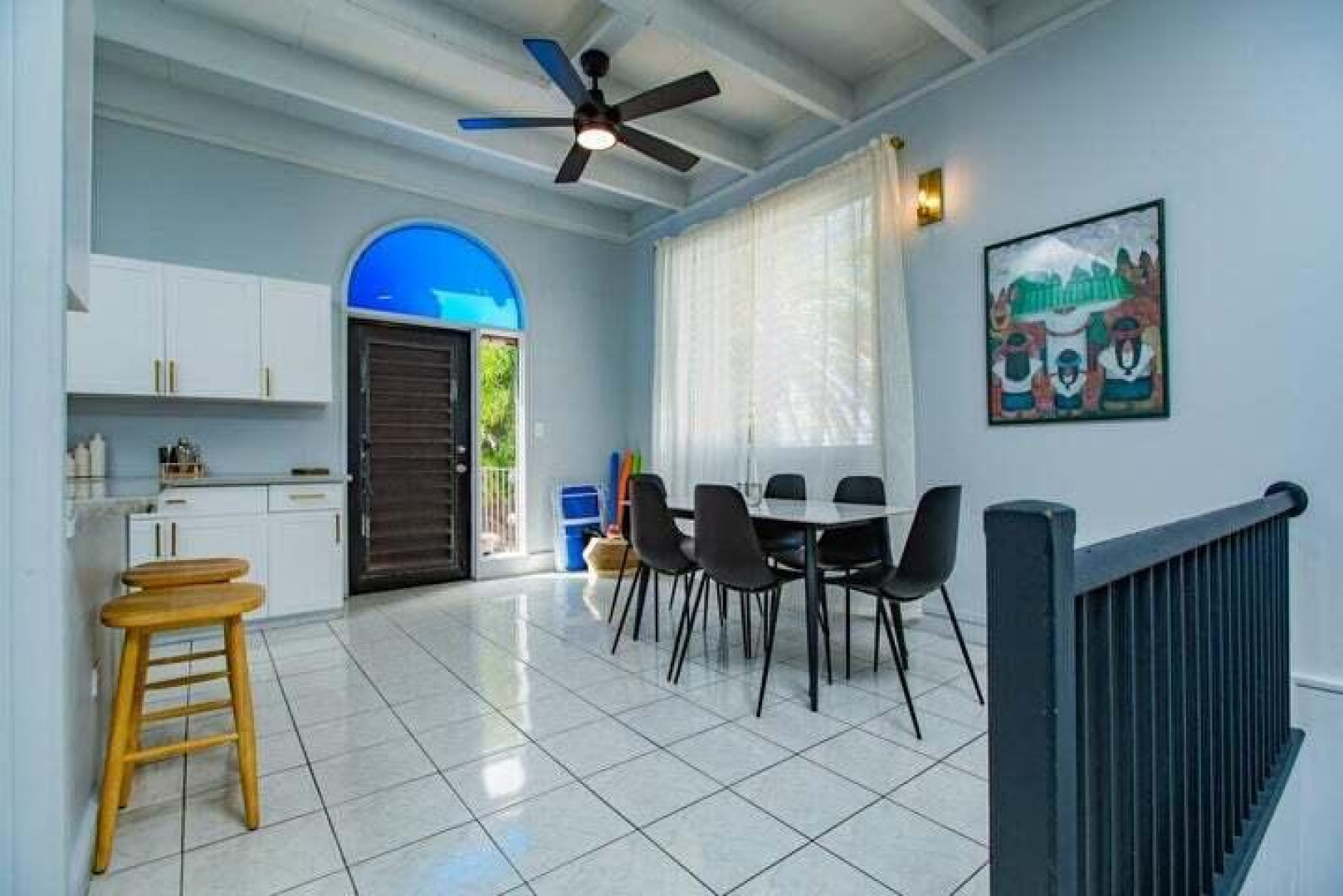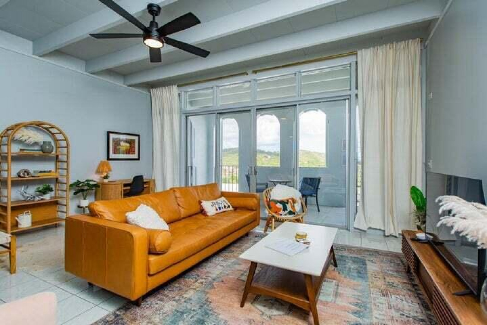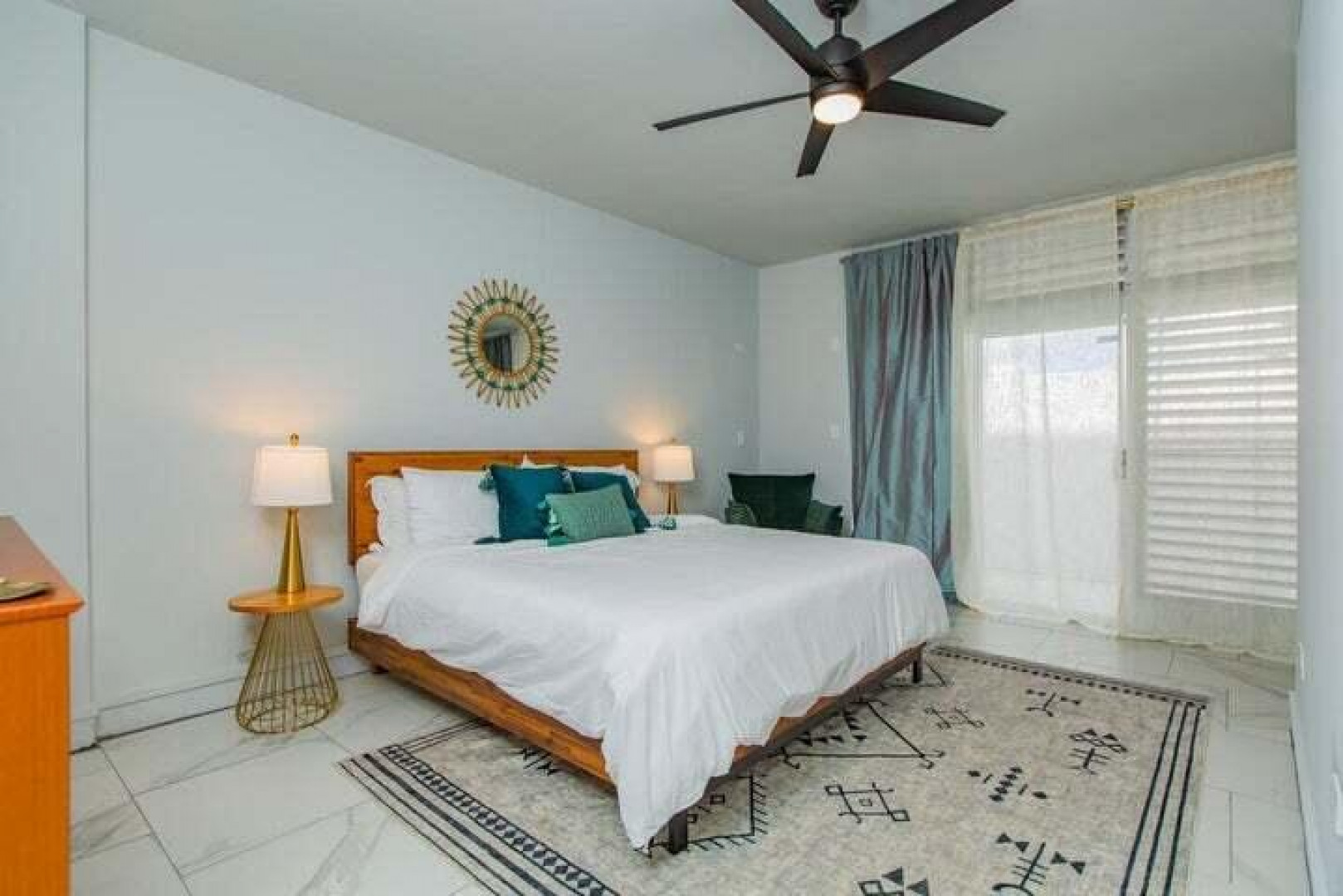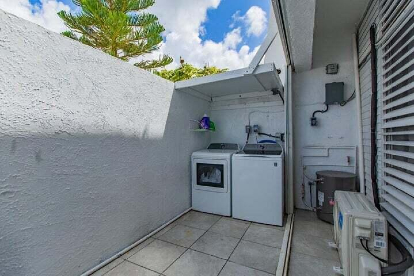 Gated, high-end, 3-bedroom, 2.5 bath sleekly furnished 2 story condo with sparkling blue pool, private washer/dryer, and peak-a-boo sea view. Wifi, pest control, smart TV, trash pick up included. A/C, cozy living room perfect to unwind or relax on the patio and enjoy the breeze. Additional coin operated laundry on site, breezy common area, lounge area & umbrellas on pool terrace perfect for lounging with family/guests. No pets due to condo rules.