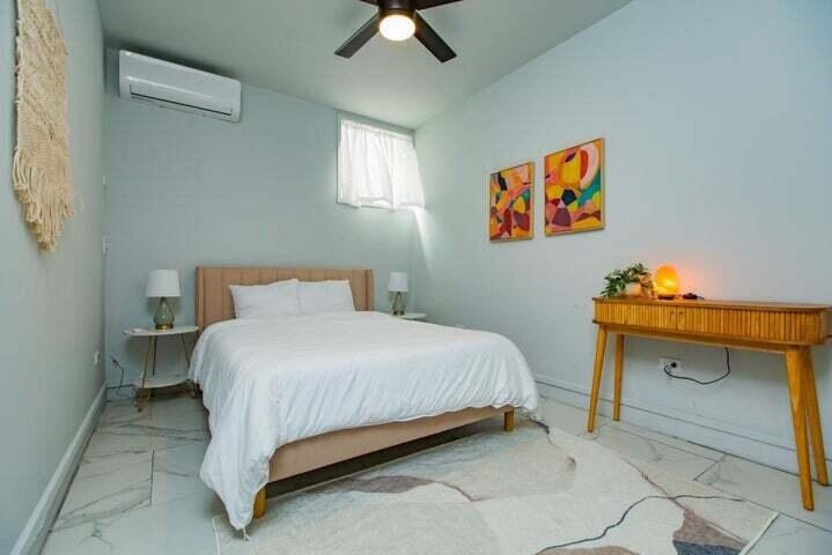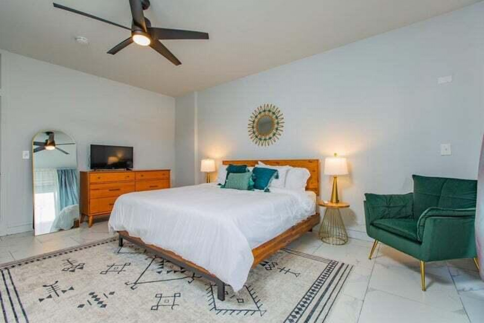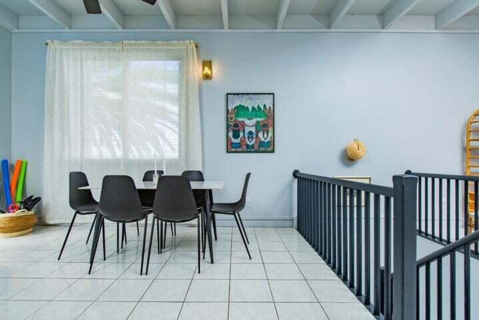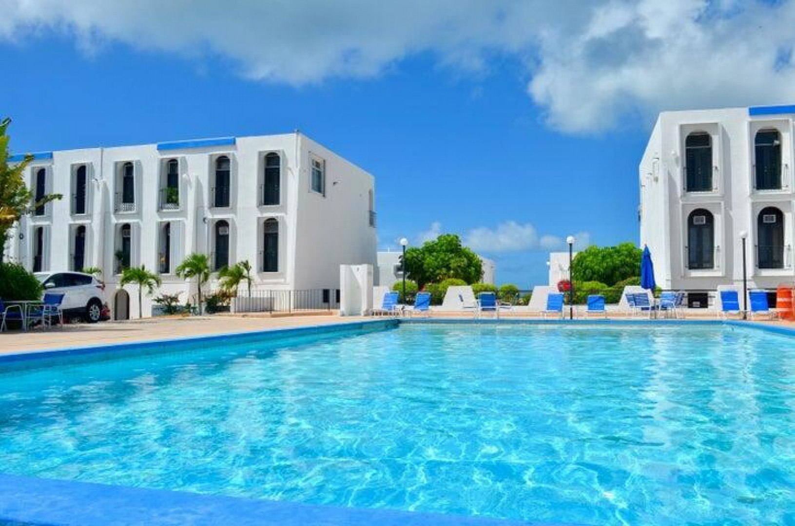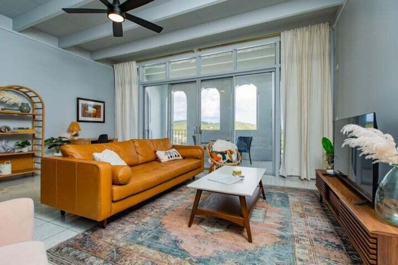 Gated, high-end, 3-bedroom, 2.5 bath sleekly furnished 2 story condo with sparkling blue pool, private washer/dryer, and peak-a-boo sea view. Wifi, pest control, smart TV, trash pick up included. A/C, cozy living room perfect to unwind or relax on the patio and enjoy the breeze. Additional coin operated laundry on site, breezy common area, lounge area & umbrellas on pool terrace perfect for lounging with family/guests. No pets due to condo rules.