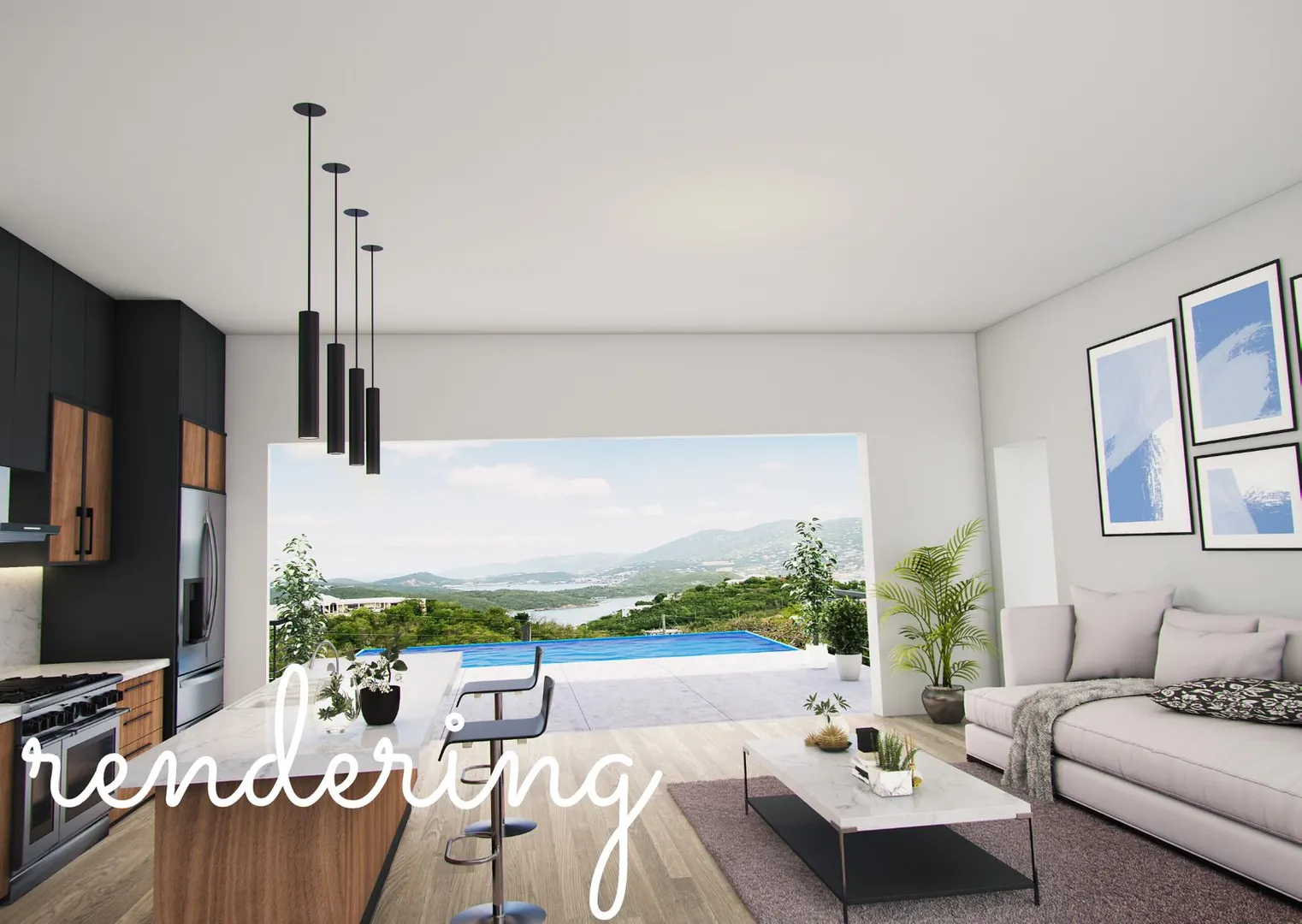The hard work has been done on this 4 BR 4 Bath home. Professionally designed with thoughtful attention to all spaces, this exceptional property is a must see. Amazing sunset views, a full circle driveway, two car garage, as well as multiple storage spaces set this property apart. The amount of concrete in this home is astounding, even the roof is concrete!!!