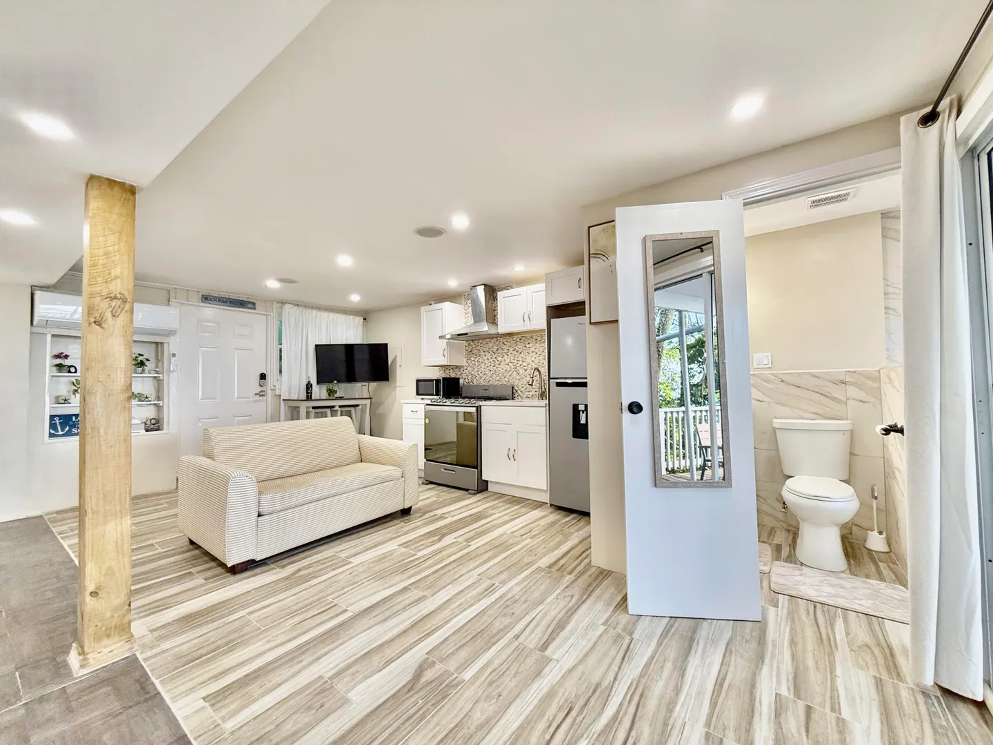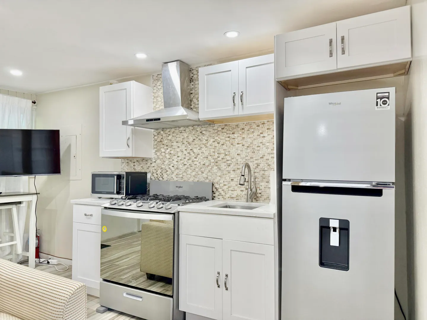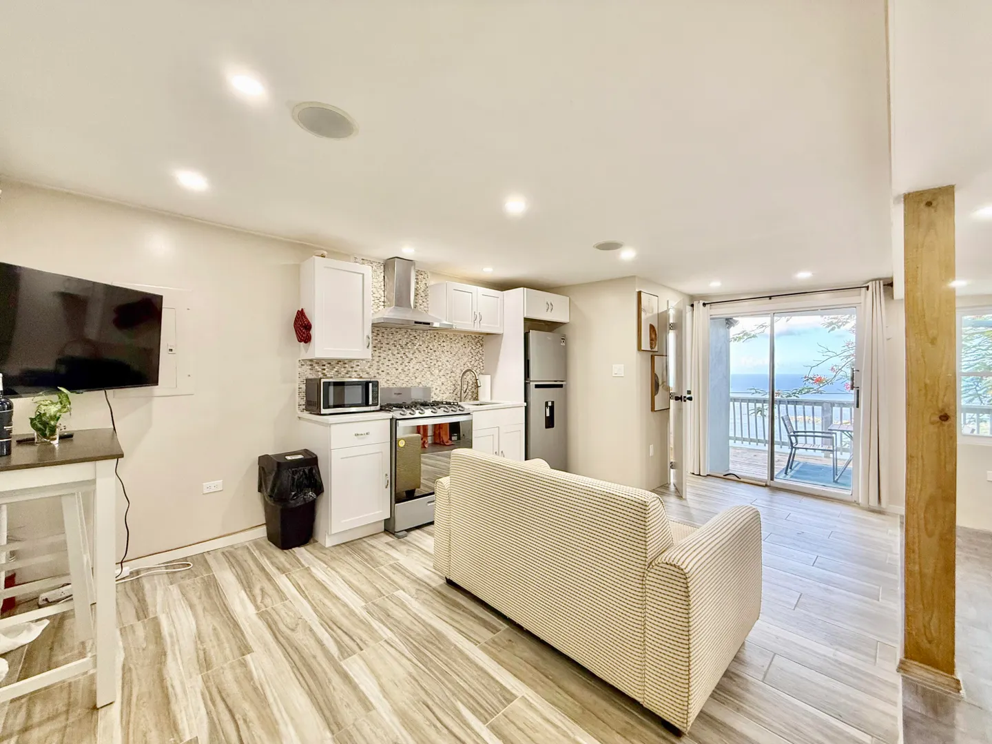 Nicely renovated Studio 1 Bath with modern appliances, A/C, Washer/Dryer. Patio with amazing Ocean views over Magens Bay. Located in the cool Northside, only 10min to town, 10min to Magens Bay Beach. WAPA included. First, Last and Security. No pets.