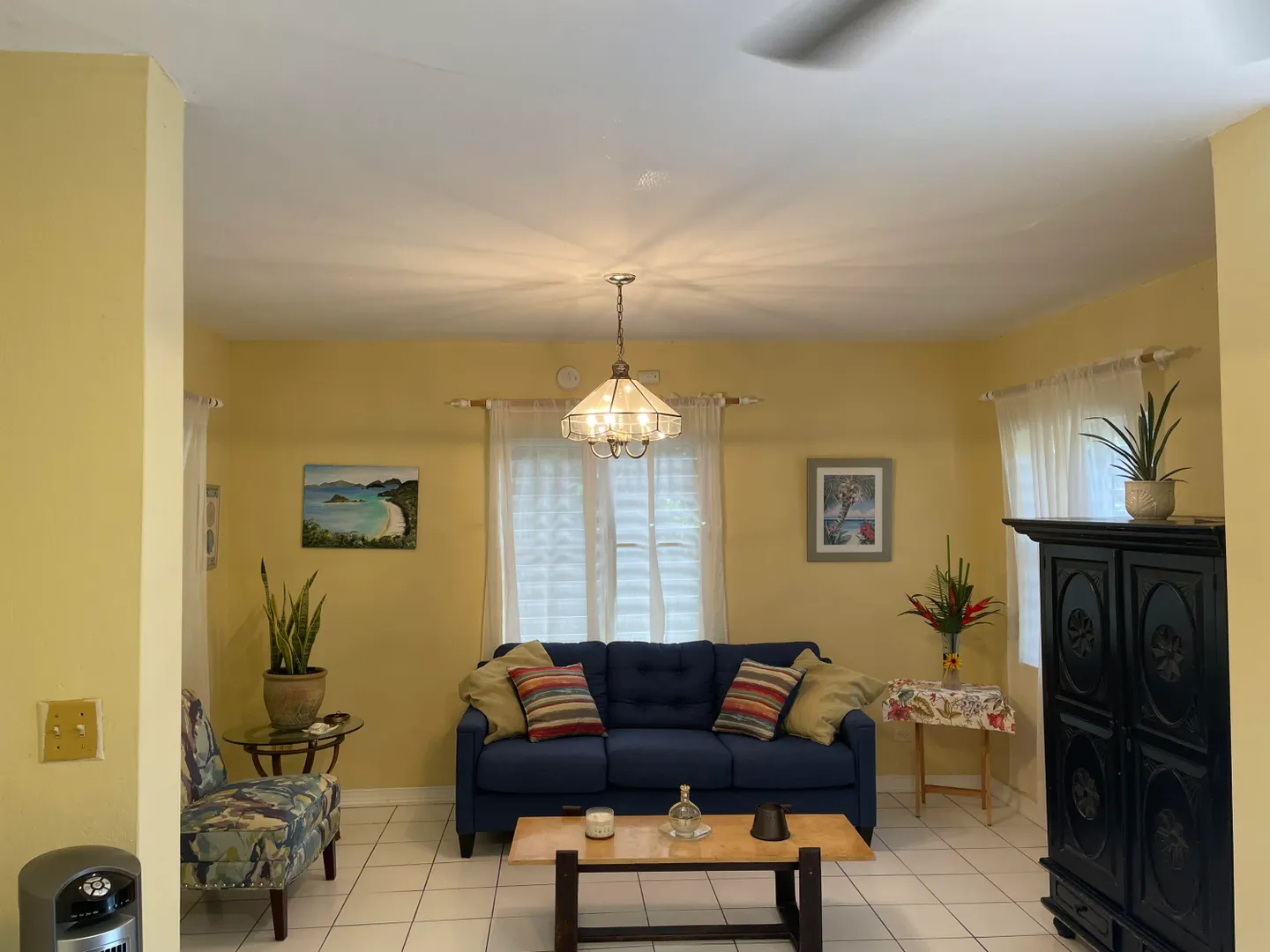 This fully furnished standalone turnkey rental is just waiting for you to bring your suitcase. The property is set back in a serene, private and tranquil location in Estate Contant. It is even wheel chair accessible! The yard also boasts tons of fruit trees that the tenant can partake in. Come home after a long day and relax on the deck. The rental is already outfitted with pots, pans, cutlery, etc and the unit has a washer and dryer. Internet is also included in this rental. A/C unit in the master bedroom only.