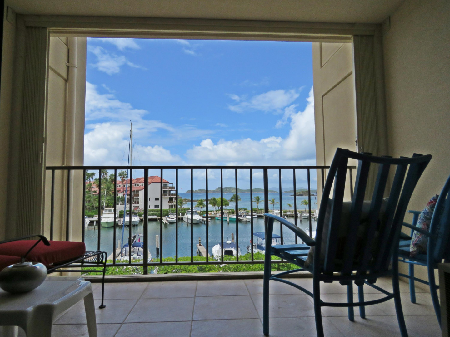 REDUCED! This gem has been beautifully renovated (June 2017) with new kitchen, bathroom and more. It survived the hurricanes with no damage. Tastefully decorated with charming accent pieces, it's fully equipped and ready to go for vacation rentals or your new island home. All new plumbing, ceiling fans with LED lights and remotes, crown moldings and base boards, storm shutters, washer/dryer hookups. 40'' HDTV, Blueray player. Walk in level with no stairs - overlooking the marina and beyond the ocean to St. John. Dominica is the building closest to the beach. Sapphire has two pools, a restaurant and laundry room. Adjacent to the marina and beach and minutes from Red Hook with its many restaurants and amenities and the St. John ferry.Not Hurricane damaged