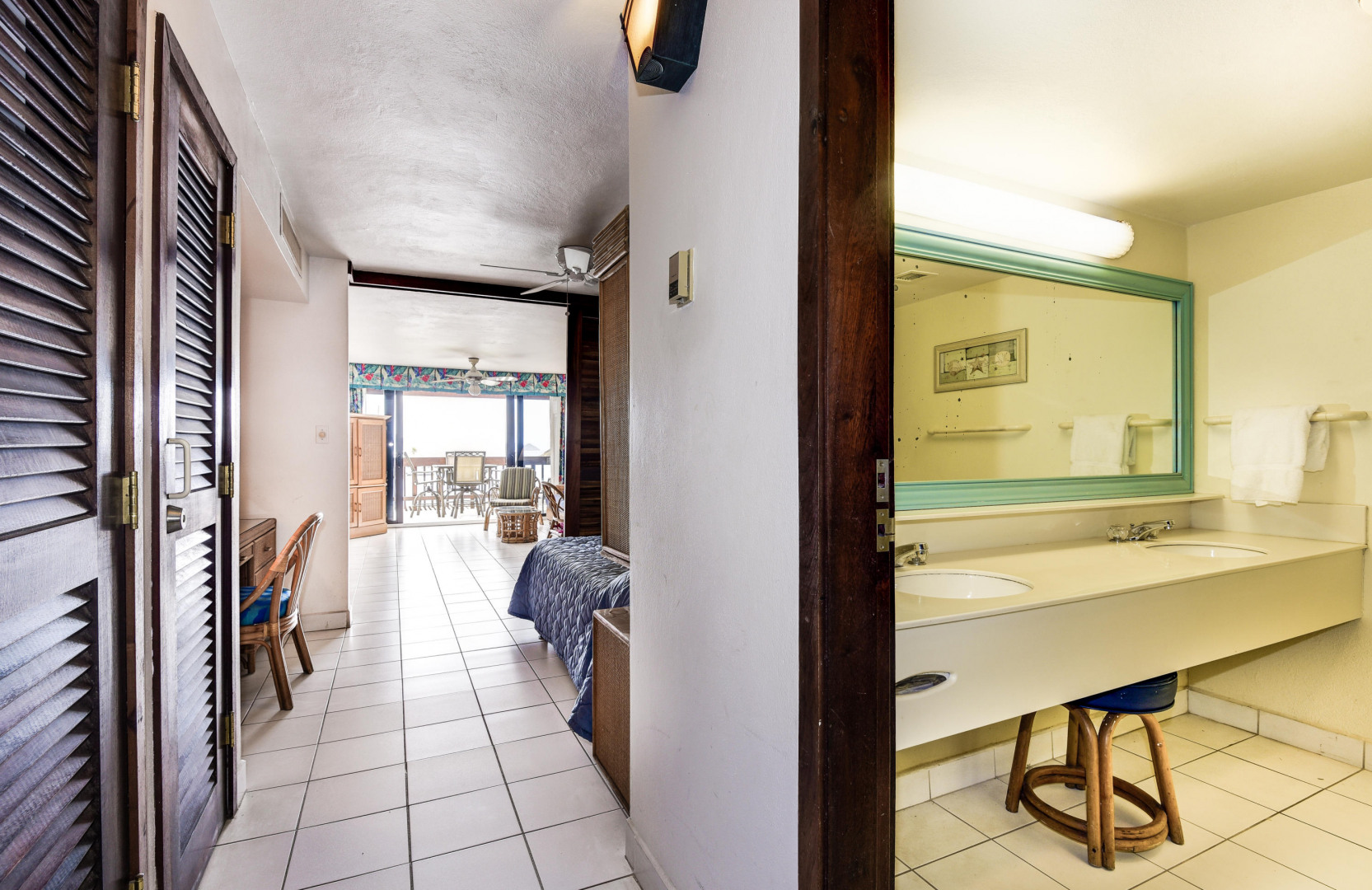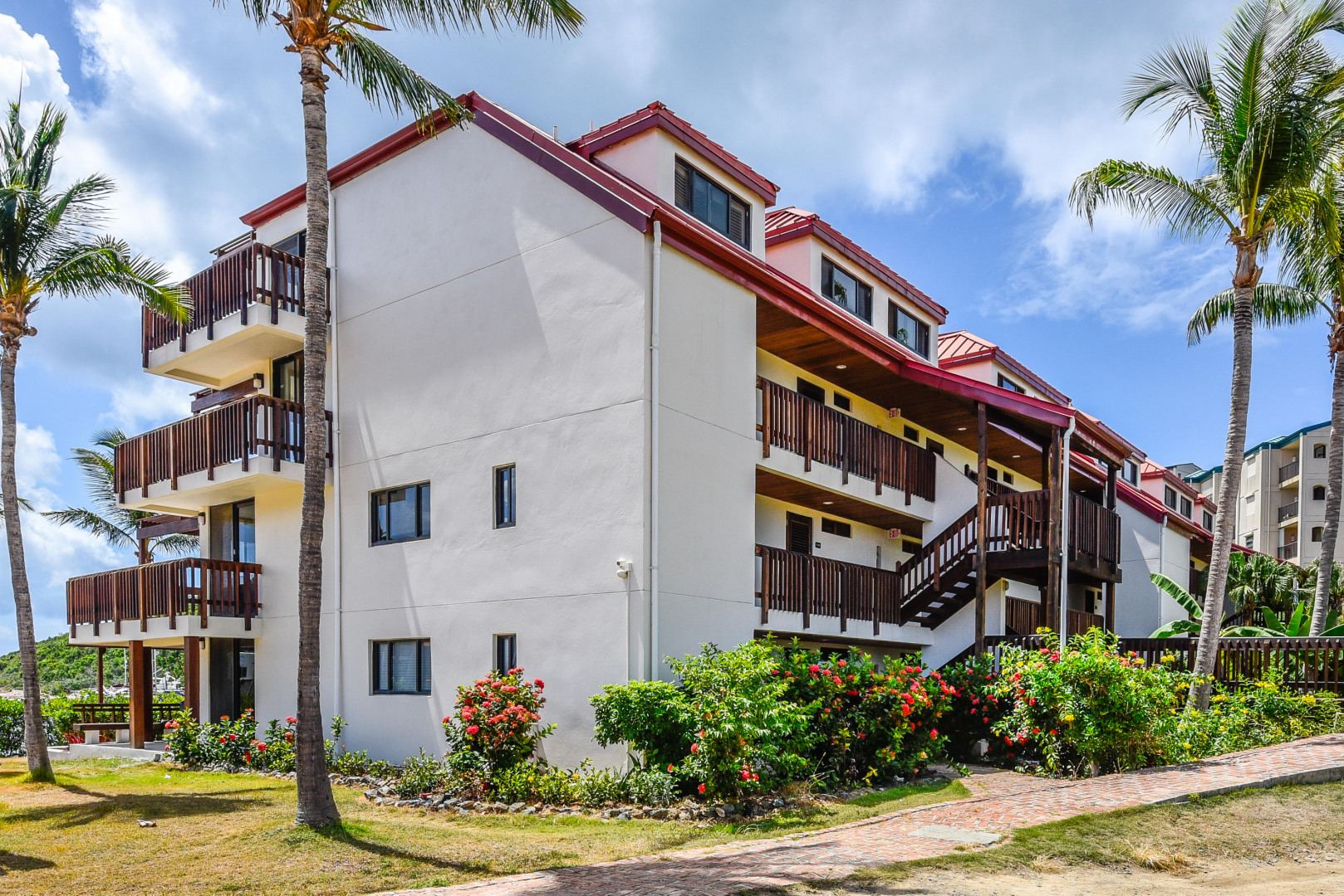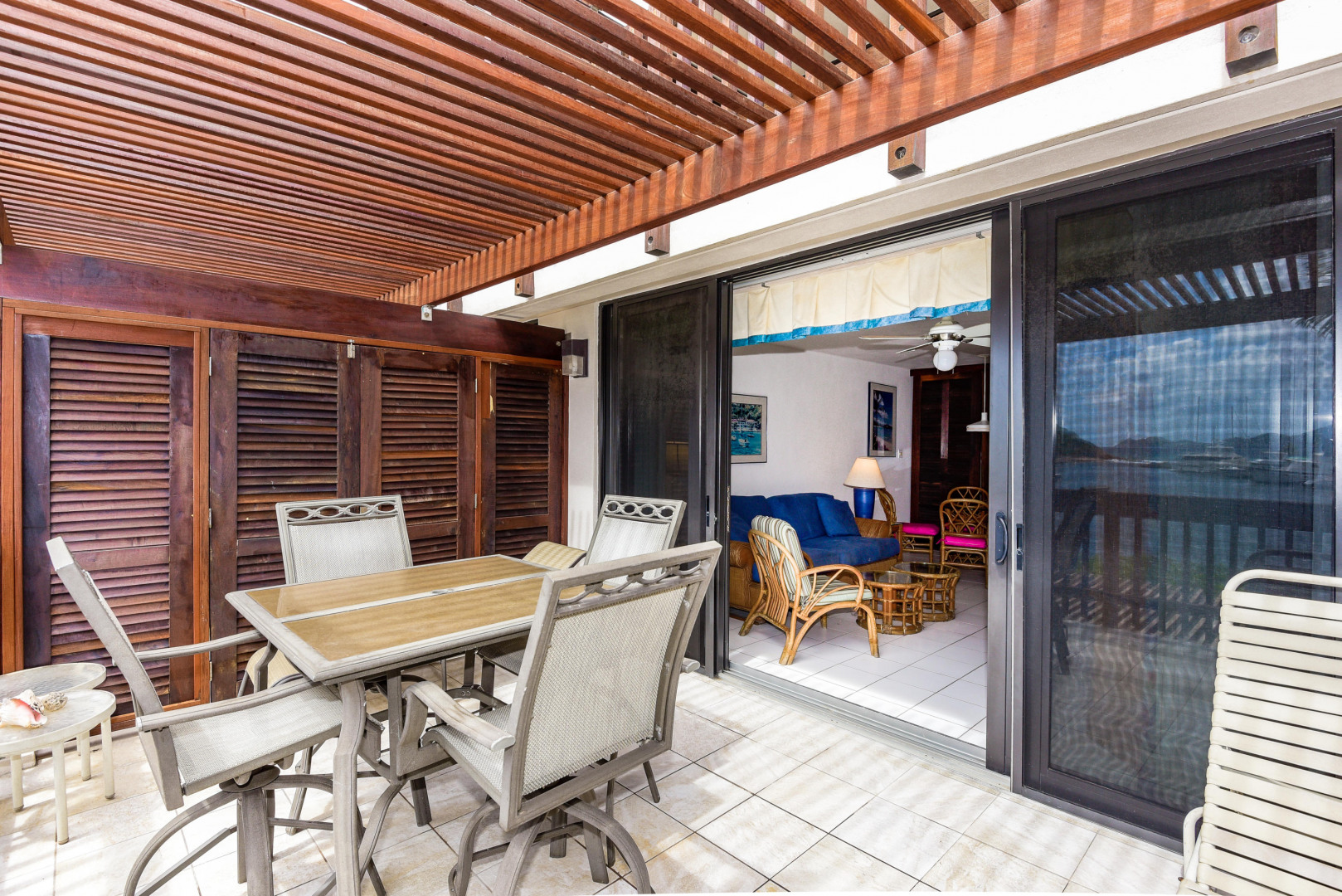 Located above the marina with down island views of St John & Pillsbury Sound. Enjoy a cocktail from your balcony and watch the yachts come in at the end of the day. Beautiful Sapphire's white sandy beach is literally 1 minute walk away. F Building has under gone a complete renovation of the outside of the entire building. New sliding glass doors (wind resistant) have been installed. Perfect for short term rental. 5 minutes from Red Hook, Restaurants, Bars and the Ferry.