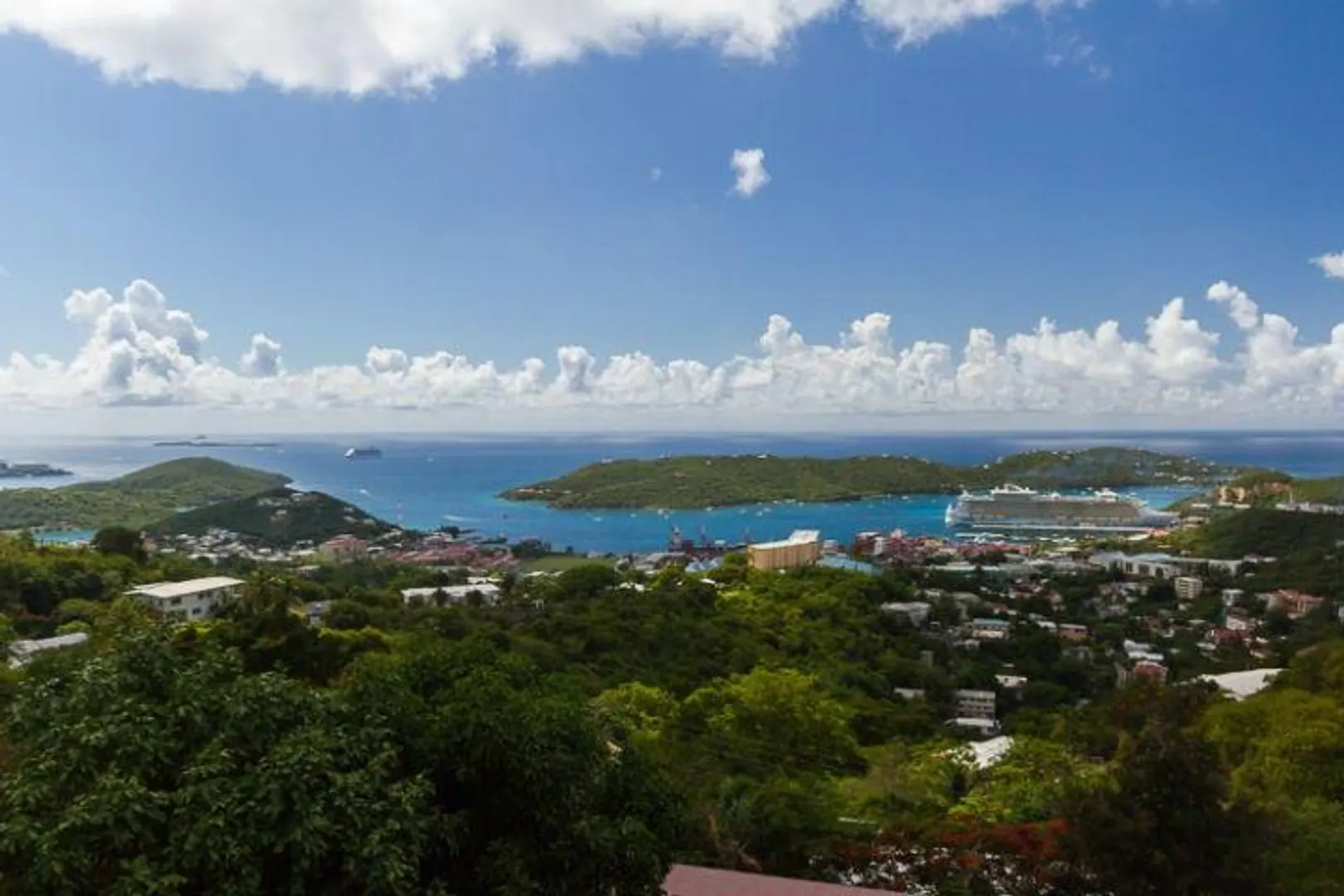 This incredible 4 bedroom, 2 bath is absolutely immense. Boasting a beautiful 180 degree view that spans from the cruise ship dock in Havensite over to the dock in Crown Bay. Enjoy your own hot tub on the private patio. You can't go wrong with this rental. Available September 1, 2013.