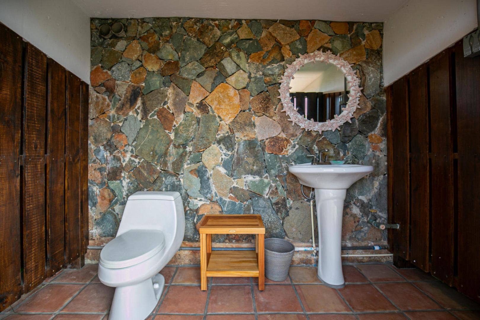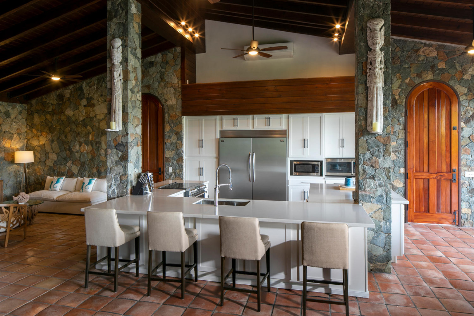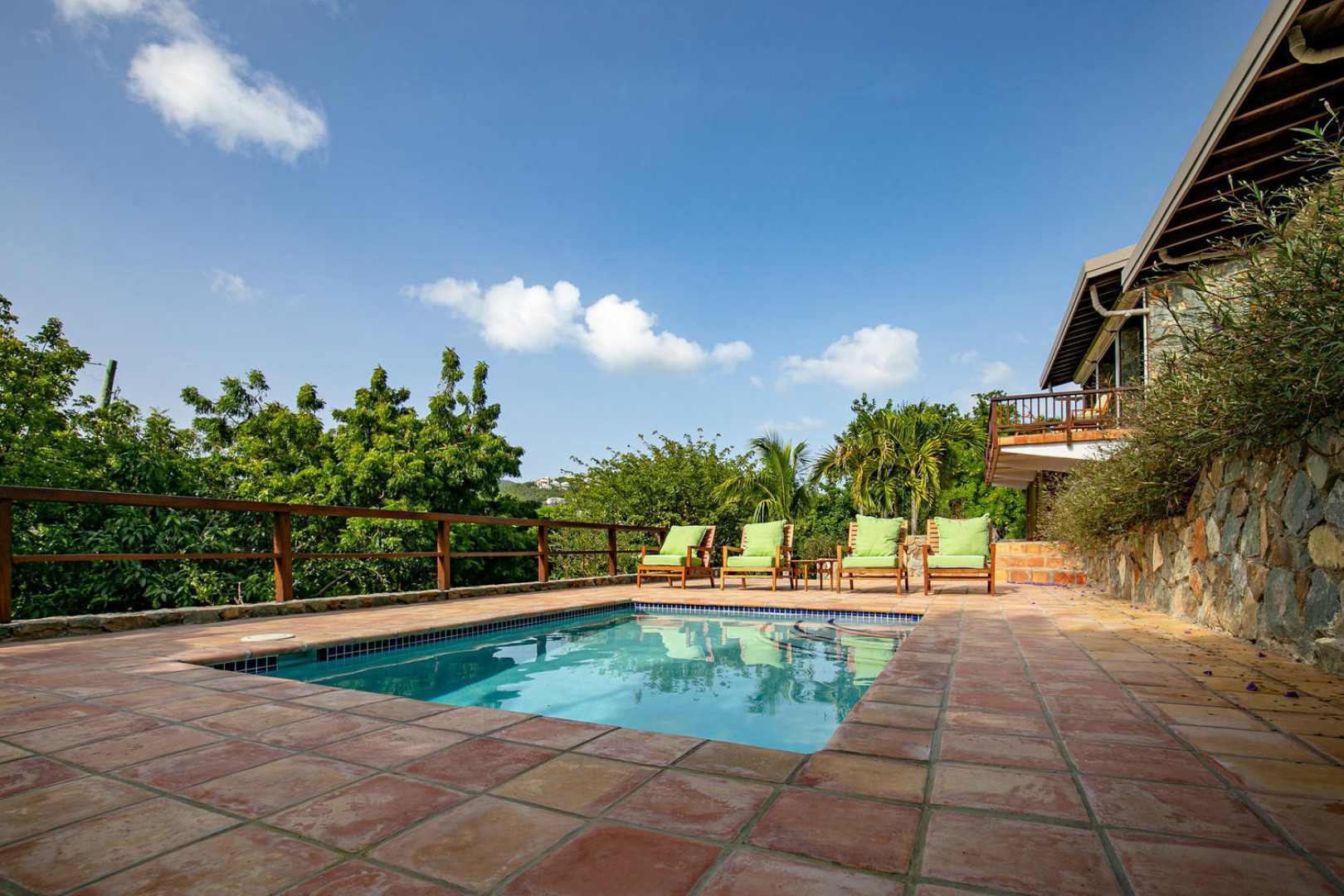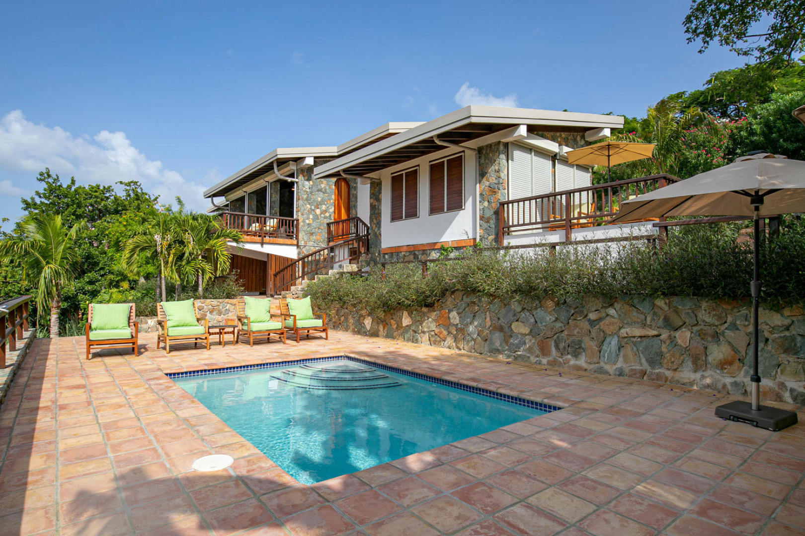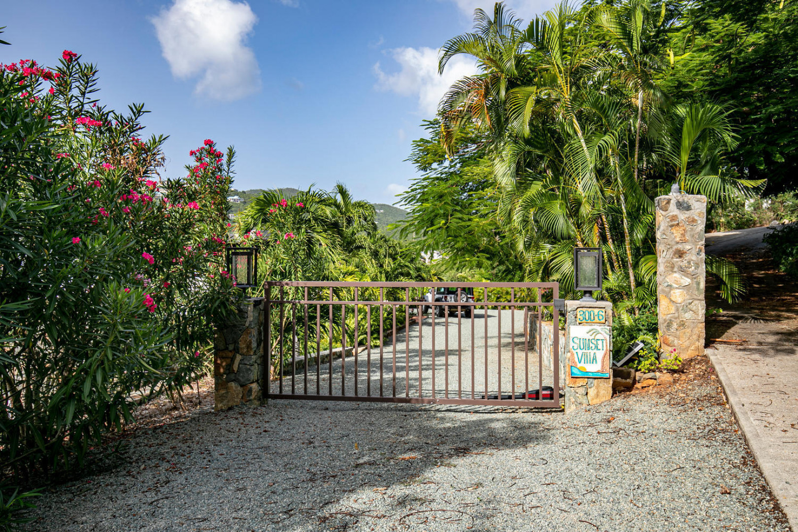 With mostly level land at the end of a gated drive, this property offers endless possibilities as a private retreat. Sunset Villa is sited on one lot and the adjacent lot offers room for expansion or as privacy. A traditional Caribbean style home constructed of local stone, modernized and updated. The great room functions beautifully with a huge, central cook's kitchen with pantry, bar and dining area, comfortable living and TV area and convenient full bath. Three fully air-conditioned bedrooms are situated on either side of the great room with a 4th located on the lower pool level. An inviting pool & expansive patio area are surrounded by stone walls, pathways and extensive landscaping.