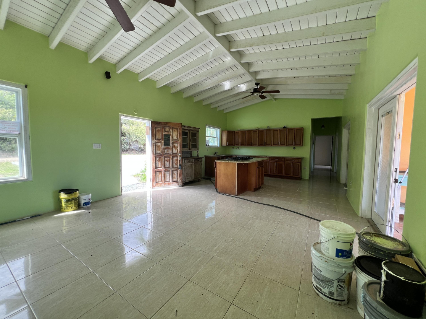 Contractor's Special! 2-story East End home overlooking the Reef Golf Course to the Caribbean Sea features 1 bedroom, 1 baths upstairs, 2/2 apartment downstairs. **Owner will consider providing short-term financing to a well qualified buyer with significant down payment.** amenities: granite countertops in upper level kitchen, new exterior paint, upper level living area also freshly painted. Large MBA, extra storage throughout plus a big walk-in closet of MBR. Quiet cul-de-sac location, concrete parking area, great yard for kids/pets. Plenty of potential!