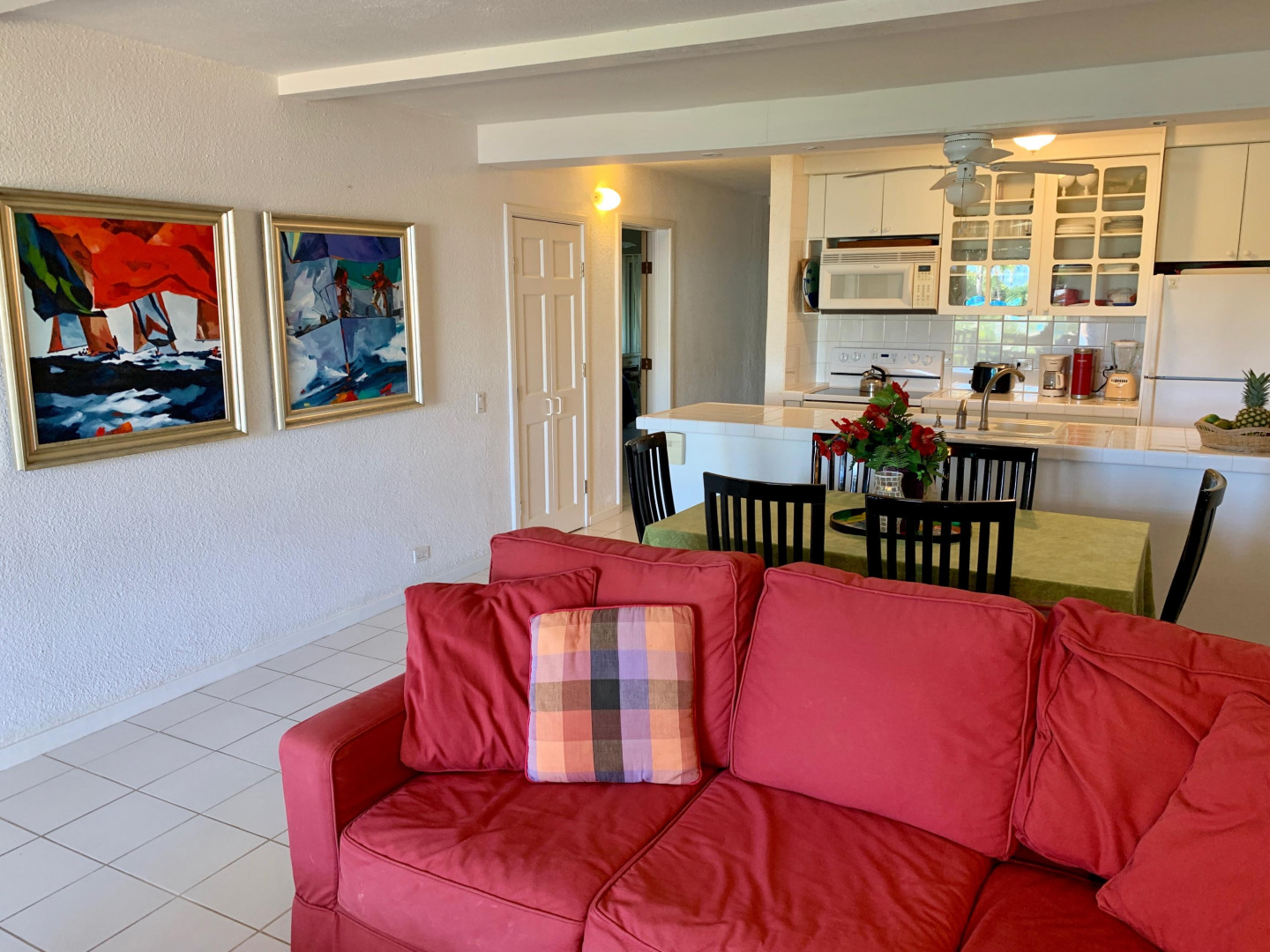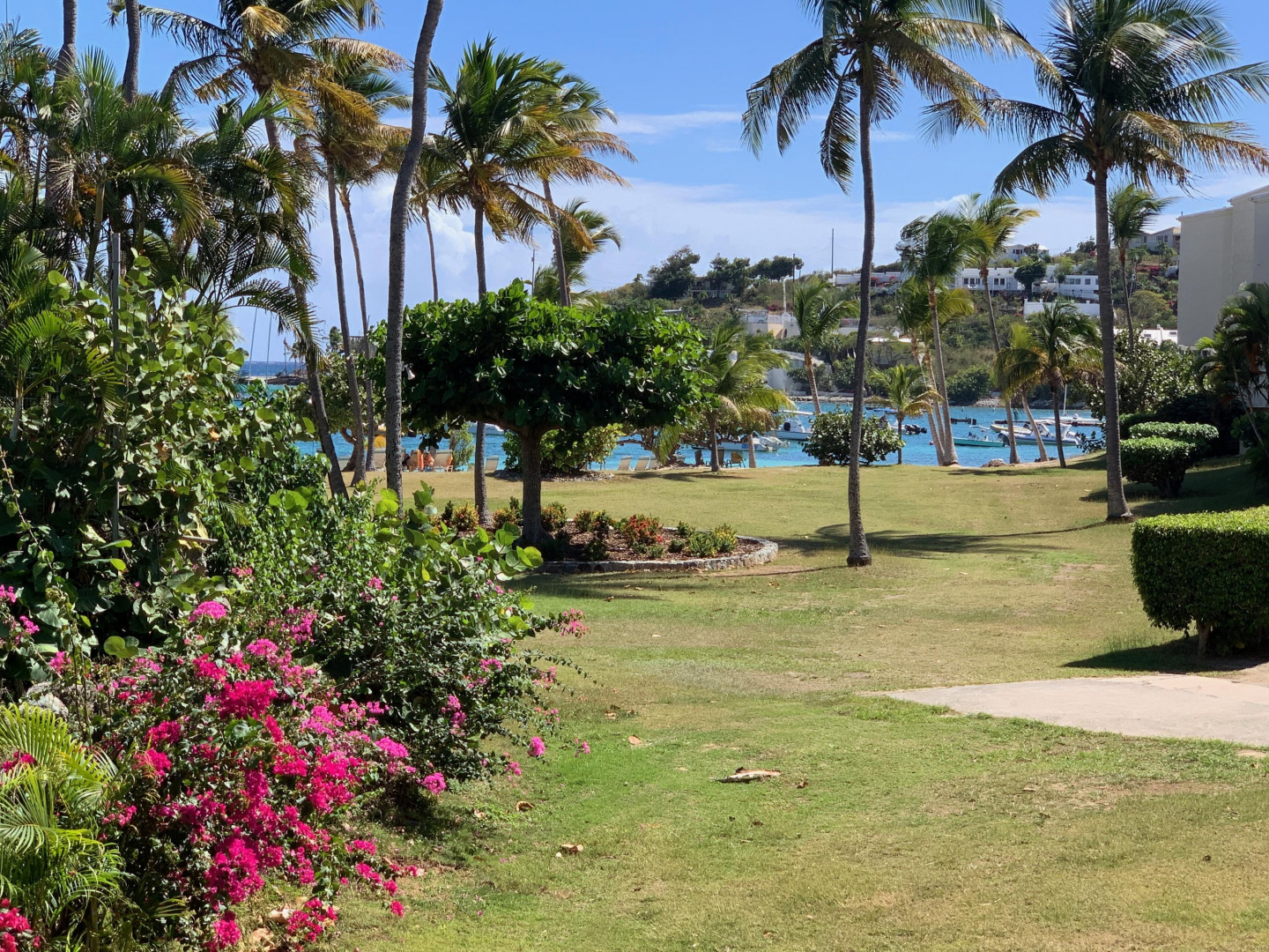 Beachy & Fresh. No better way to describe this delightful 2/2 waterfront condo with a Caribbean resort view - palms, umbrellas and the ocean in the distance. Located on the Windward tier of CBWest, you are just steps from the beach. The interior is done in a white, beachy decor, featuring a modernized kitchen and master bath. Split ACs to keep you cool when the breeze isn't calling you to the shore beyond. Minutes from restaurants, the Ritz, a ferry to St John, and the many other amenities of Red Hook. Gated community. Generator powers the complex when necessary. Hurricane shutters in place.