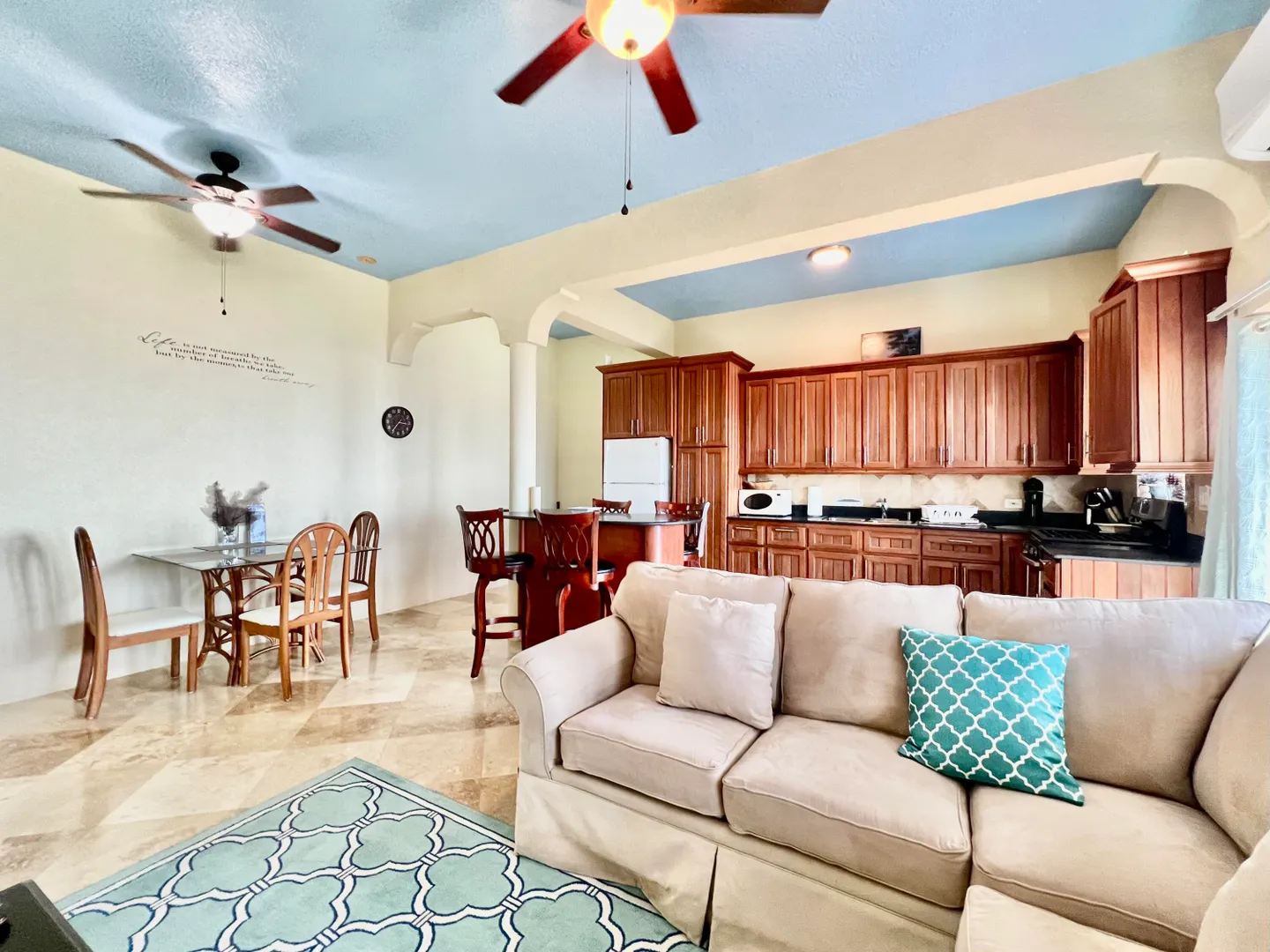 Nice and spacious 2 bedroom 1 bath with amazing ocean view and in a beautiful gated community. Fully furnished, A/C, Washer/Dryer, porch and Generator. Internet, Water and Electricity Included!