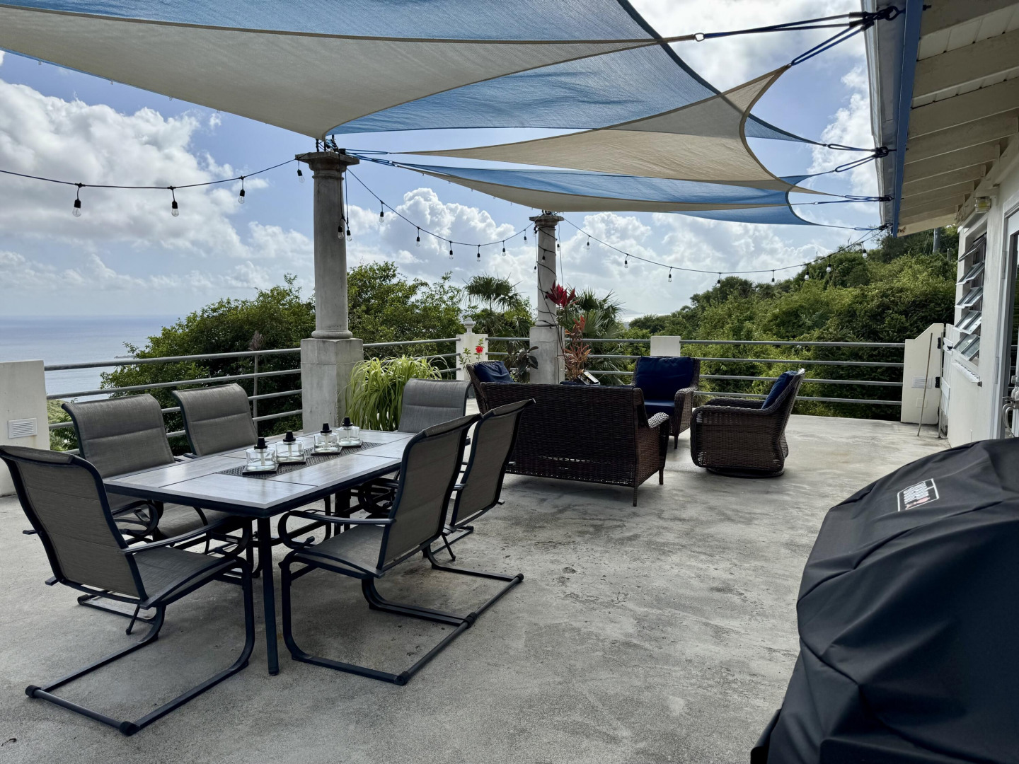 Rare opportunity to rent this entire free-standing home!!! Northside living at its best with ocean views from both the upper and lower balcony patios. Completely furnished in move-in condition, just unpack and start catching the Hull Bay breezes!!! Charming Hull Bay Beach with it's beach bars/restaurants just 2 minutes away...Magens Bay only 10 minutes further!!! NOTE: Upper 3 bdrm/2 bath apartment can be rented separately (see MLS# 25-1403 ) OR Lower 1 bdrm/1 bath may be rented separately (see MLS # 25-1402).