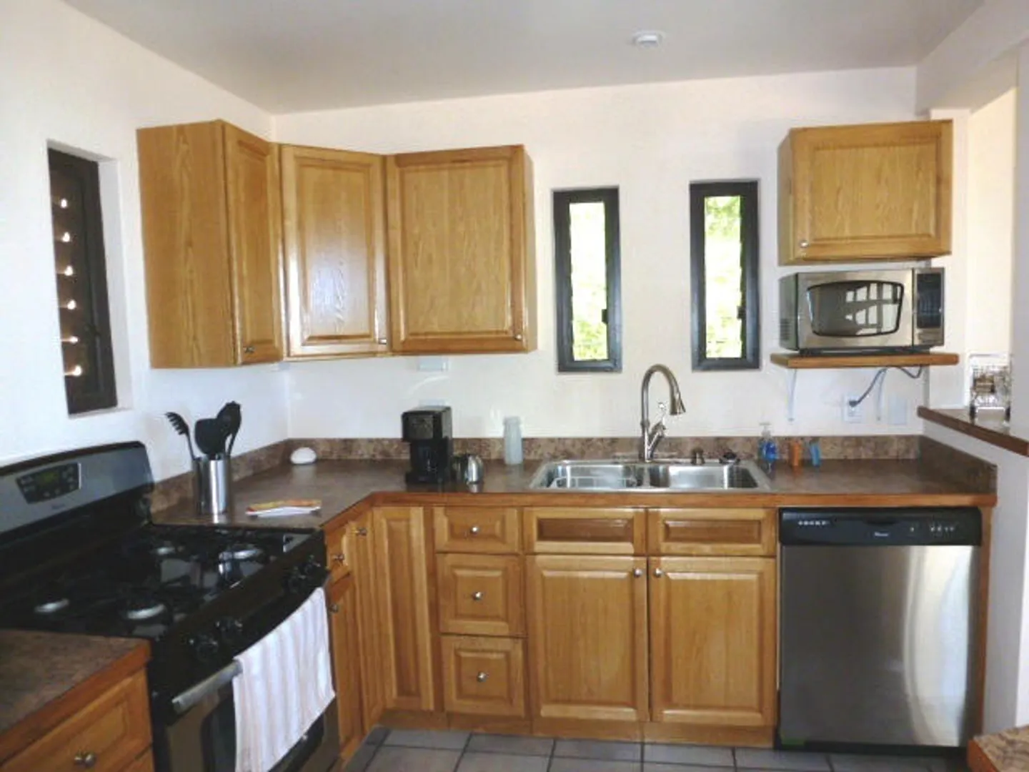 PANORAMIC MAGENS BAY AND DOWN ISLAND VIEWS. Charming 3 bedroom, 2 bath remodeled concrete home with stunning views of Magens Bay and beyond. The main living pavillion has vaulted ceilings and a large and open kitchen with solid oak cabinets and stainless steel apppliances. This home shows beautifully. No smokers or pets, please!