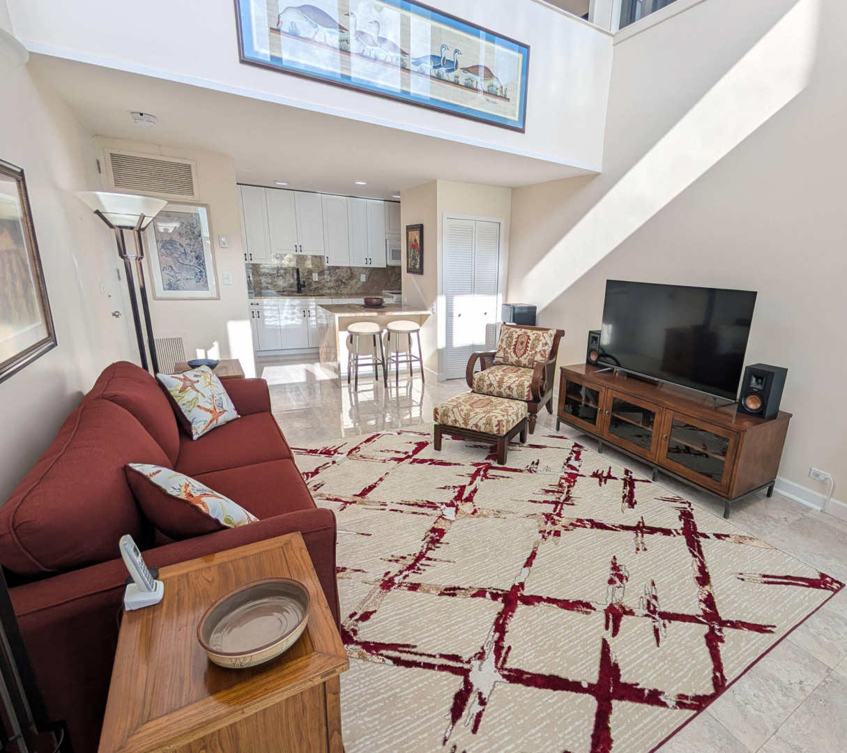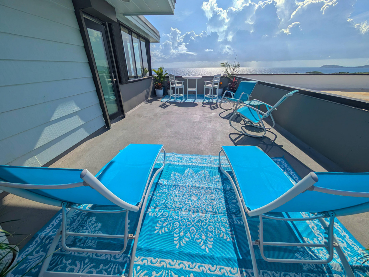 Beautiful 2 story corner loft condo in gated Regatta Point. Take in the water view of the Caribbean Sea from your bed, the living room, the kitchen and either of 2 decks. The thoughtful remodel and vaulted 2 story ceiling in the living room creates even more space. The expandable wall in the bedroom assists with privacy and light. On the lower deck is your own private gas grill. The upper rooftop deck is large and invites you to sit and relax with your coffee or a glass of wine. Dual central a/c. Walking distance to a shell beach and a sand beach, Bolongo Resort is right next door with 2 restaurants. As an owner you have use of the club house, grill and weight room. All of your guests can make use of 3 pools and tennis courts.The property even has a generator for those pesky power outages