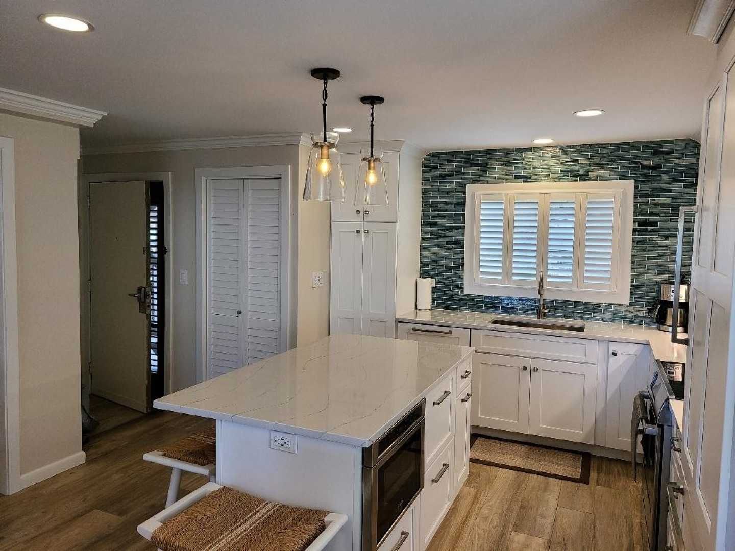 Completed in March 2020, Bay Breeze at 23 America building, Anchorage Condominiums is the perfect beach condo. The renovation included gutting the entire condo down to the studs, all new electrical and plumbing, new walls, installed 3 Split a/c systems for efficiency and cost effectiveness, all new cabinetry, ceramic wood plank look floors, lighting, bathrooms, tile, fans and finally the furnishings. Brand new!