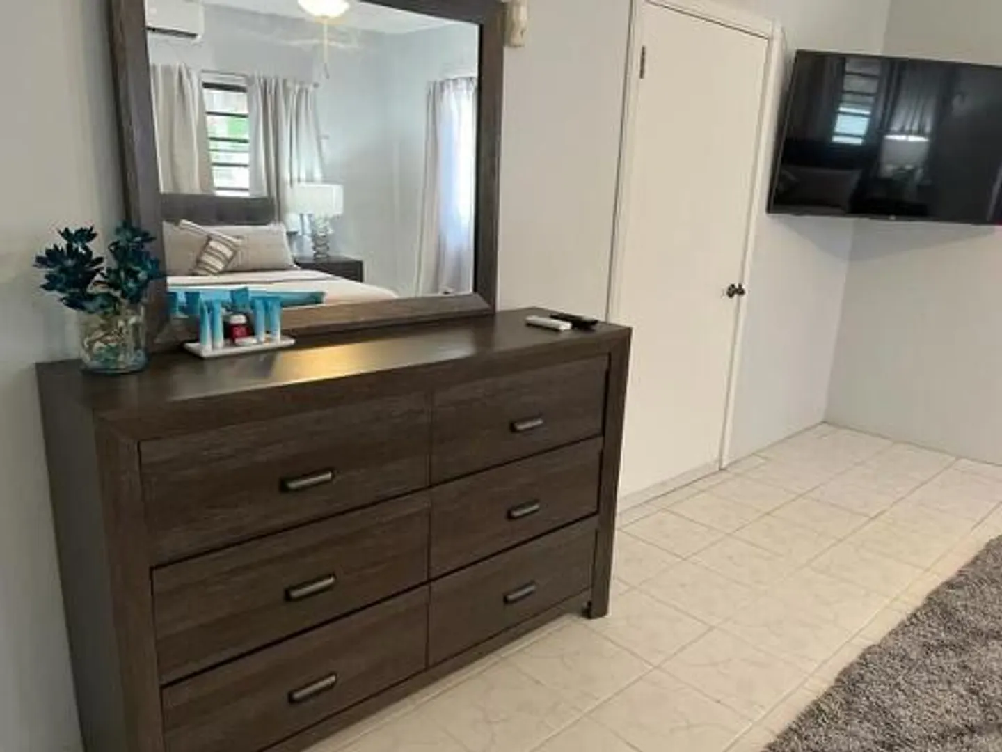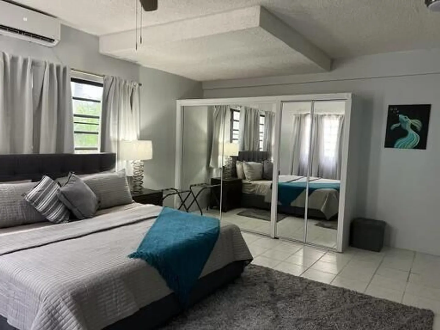 Remii Blue is a beautiful MOVE IN READY 2 bed/2 bath unit located in quiet neighborhood private porches with ocean views of Magens Bay lush fruit trees and healthy green foliage off street parking conveniently located 10 min from town, 15 min from Redhook Split ACs in bedrooms onsite Washer/Dryer Perfect for professionals or family Electric Included with $250 cap