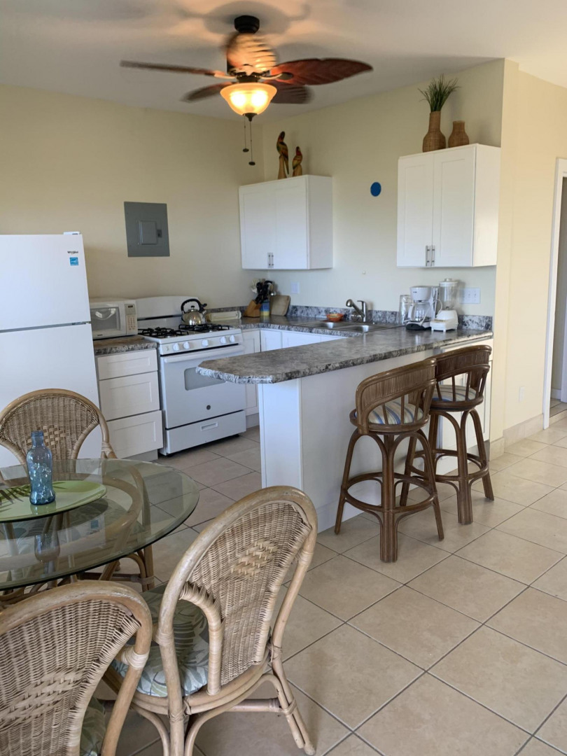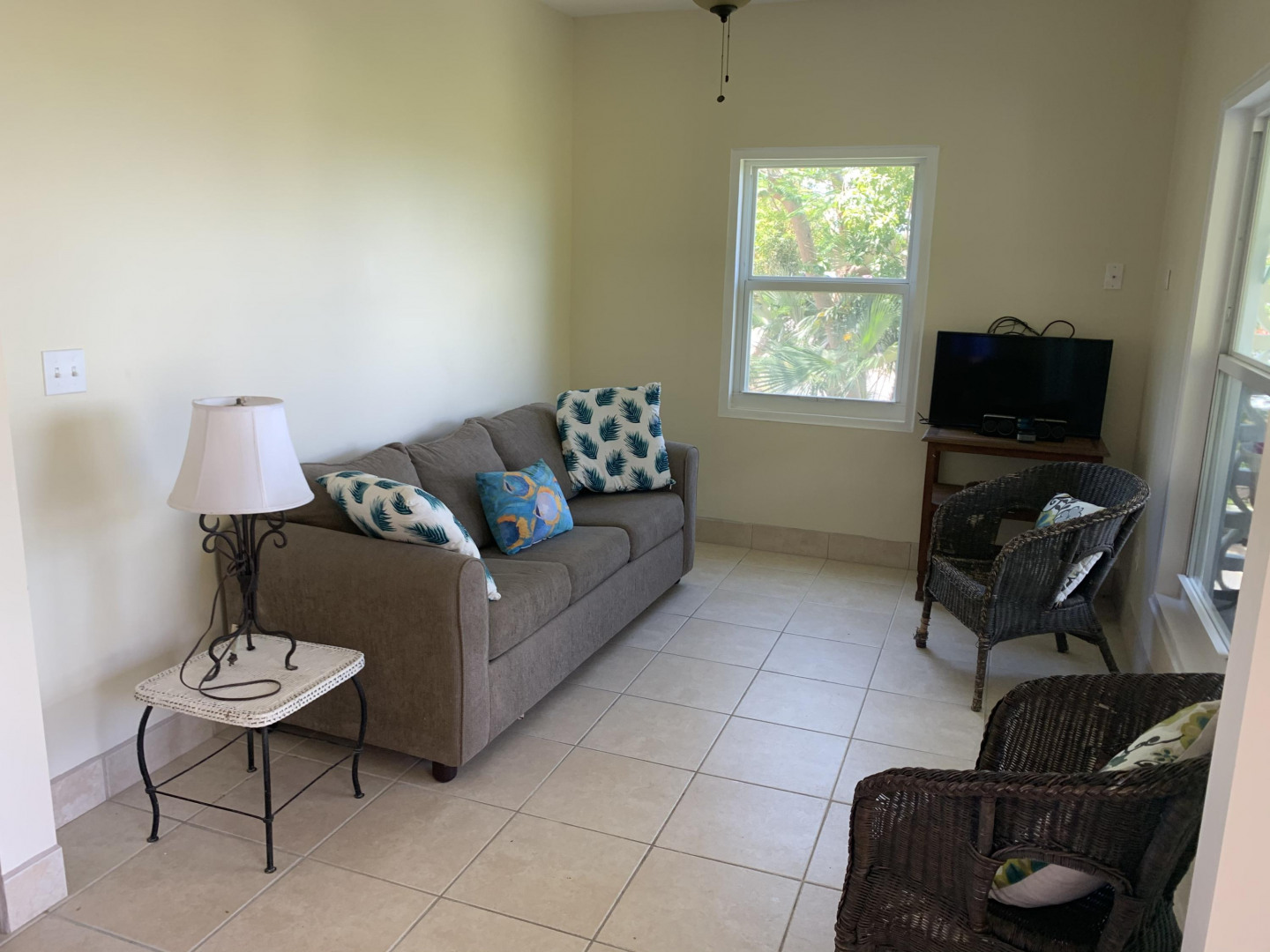 Bright, light and airy this one bedroom condo has excellent sunset views overlooking the water and is less than 5 minute drive to town. Storm repairs are just complete and include new doors, windows, new drywall, new electric, painting, new roof on complex. Unit is turn key and ready for new owner to put their own decor touches in the bedroom. Complex repairs are near complete and short term rental will resume soon. This first floor unit makes for the perfect short term rental or affordable island residence.