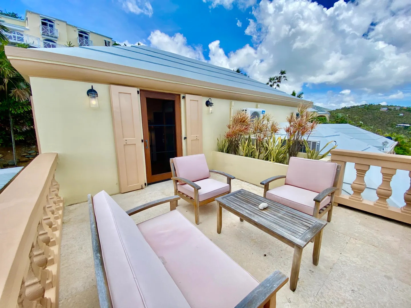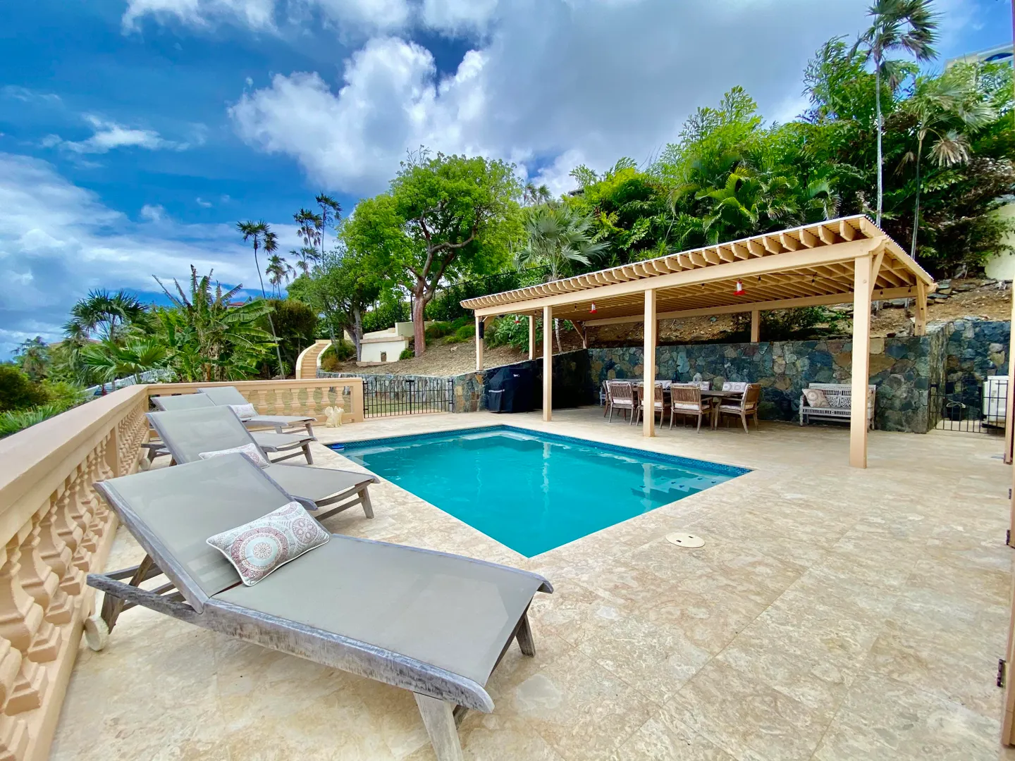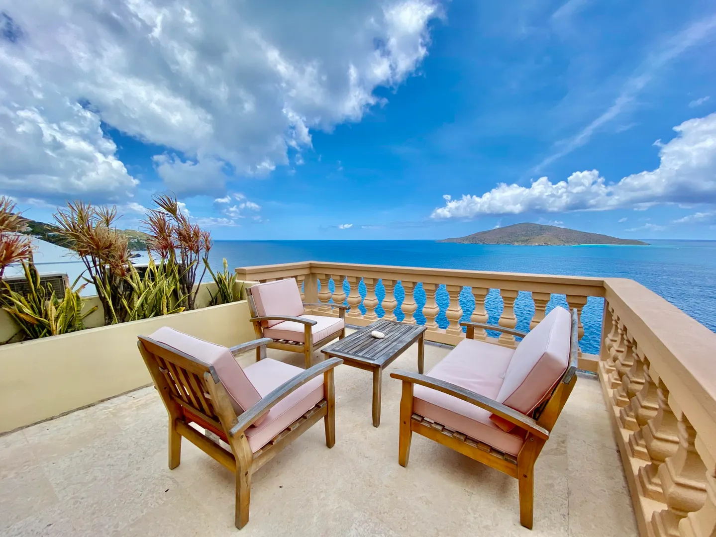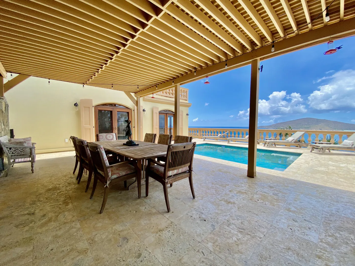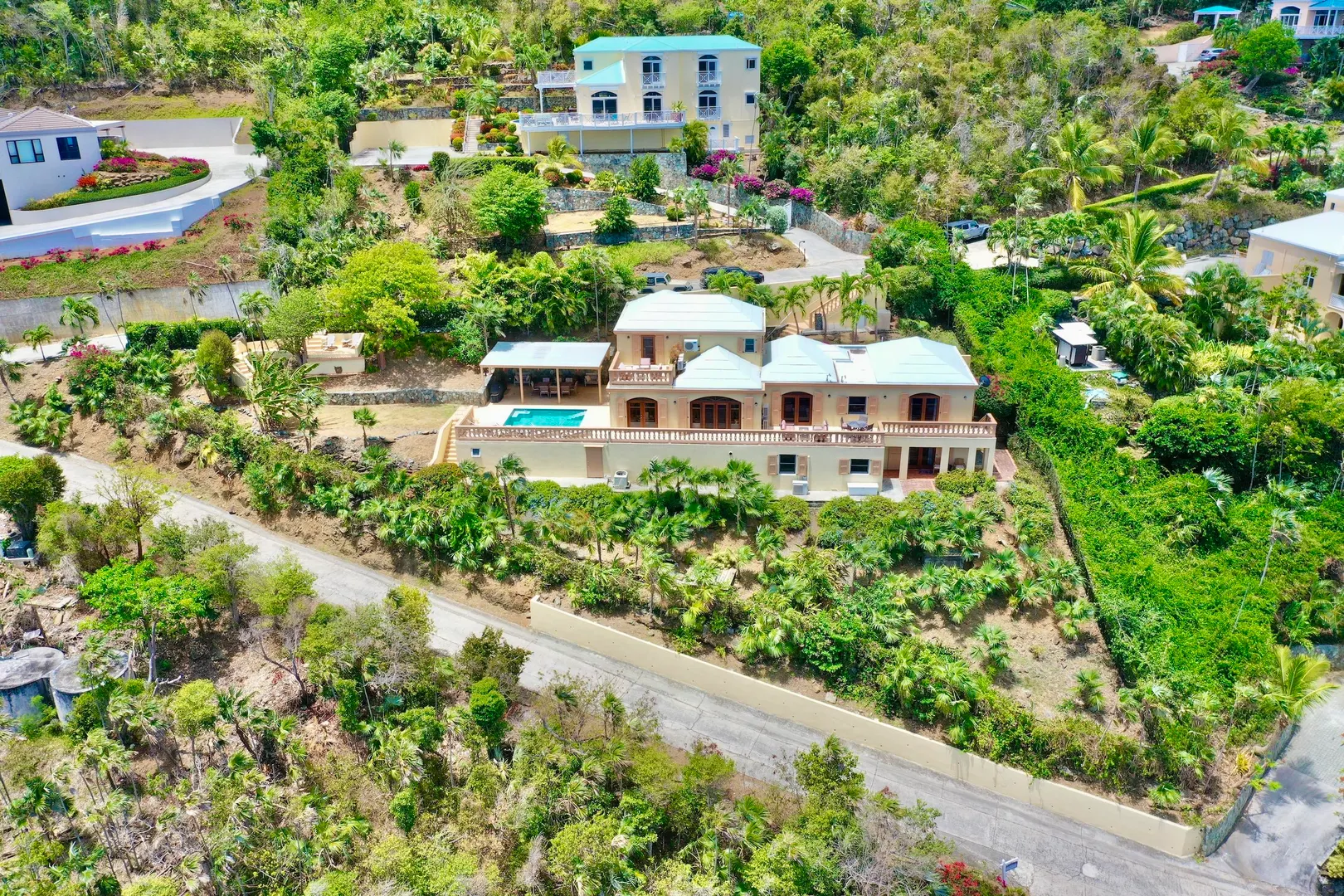 Villa Harmony is a 4 bedroom 3.5 bath villa with ocean and down island views from all rooms. Fabulous chefs kitchen with everything from granite countertops to warming drawers and wine coolers. Lots of room to entertain around the heated pool. Solid masonry home including the gutters. Full auto generator with 450 gallon diesel tank. This villa has been lovingly and meticulously cared for.