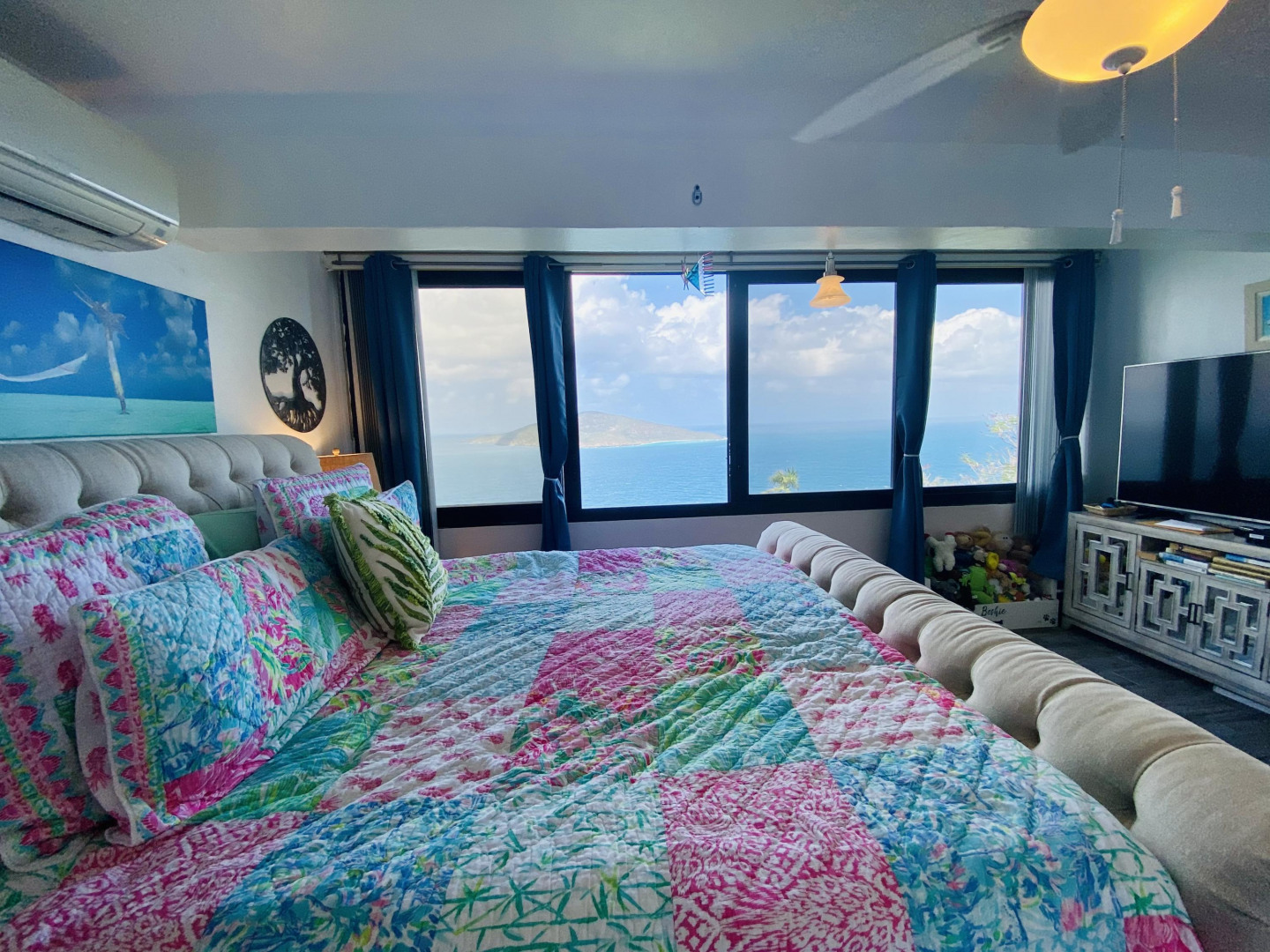 Furnished!Oversized unit in Mahogany Run! Amazing panoramic ocean view w/ 32ft screened patio, fire pit, auto switch generator, 5'X6' stained glass, quartz island, brand new appliances, new porcelain flooring, gigantic new shower, walk-in master closet and the list goes on and on.. 5min drive to World famous Magens Bay Beach!24/7 security! Offered at $349,900! A must see!See the link to 3D tour:https://my.matterport.com/show/?m=ez3ynkxWQgU&mls=1