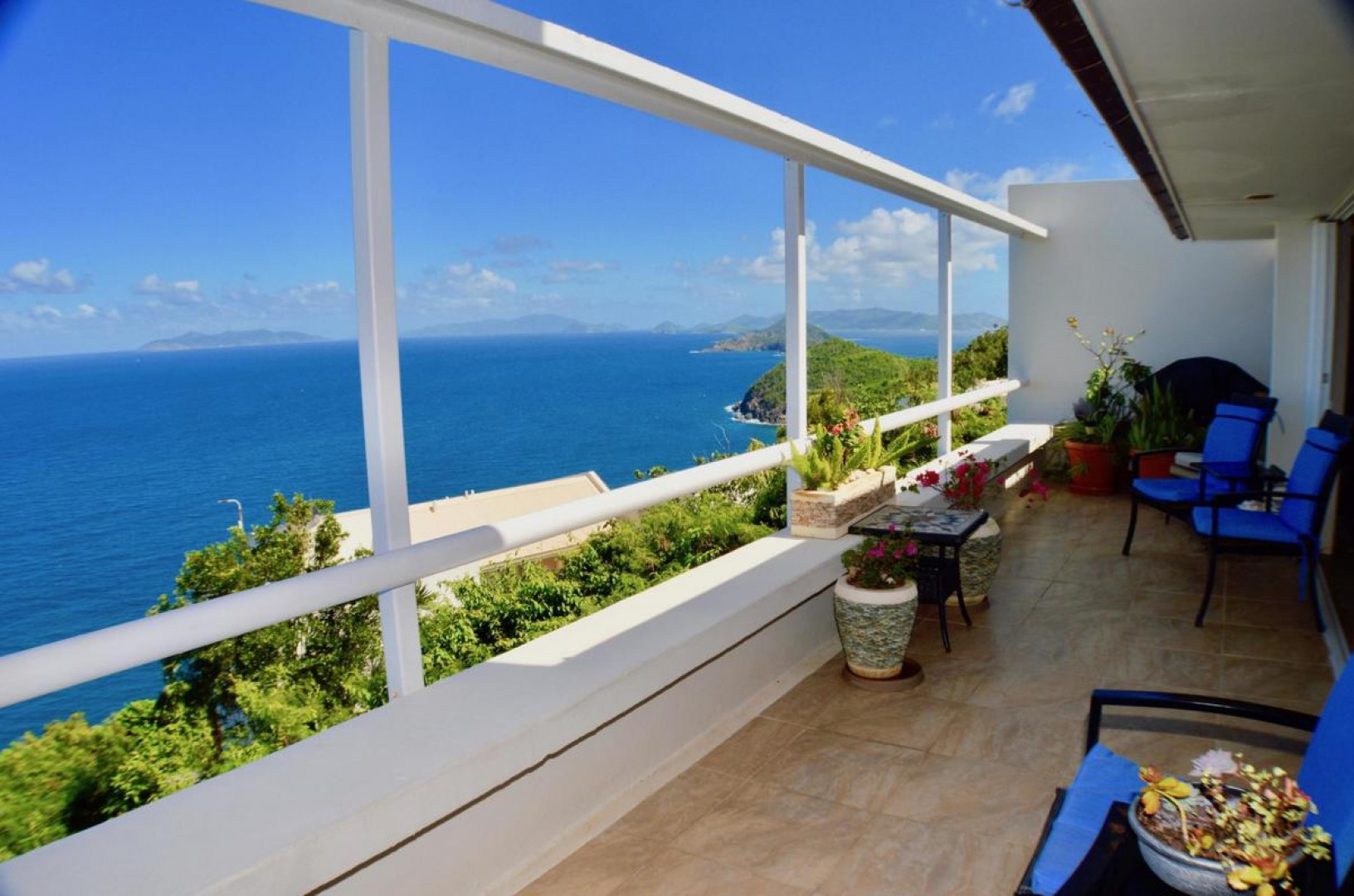 Have your breath be taken away by a remarkable down island view from this open floor plan two bedroom, two bath walk-in condominium. Enjoy the unobstructed views of the Hans Lollik, BVI to St.John and EVERYTHING in between, from your 30 ft.shaded deck!!!!! Elegantly decorated and spacious, this unit is one of a limited number of condos that has 2 meters and could legally have second bed/bath rented out. Hurricane shutters, ample storage, car-port, w/d, extended second bedroom, covered parking and much, much more....A MUST SEE!!!!!!