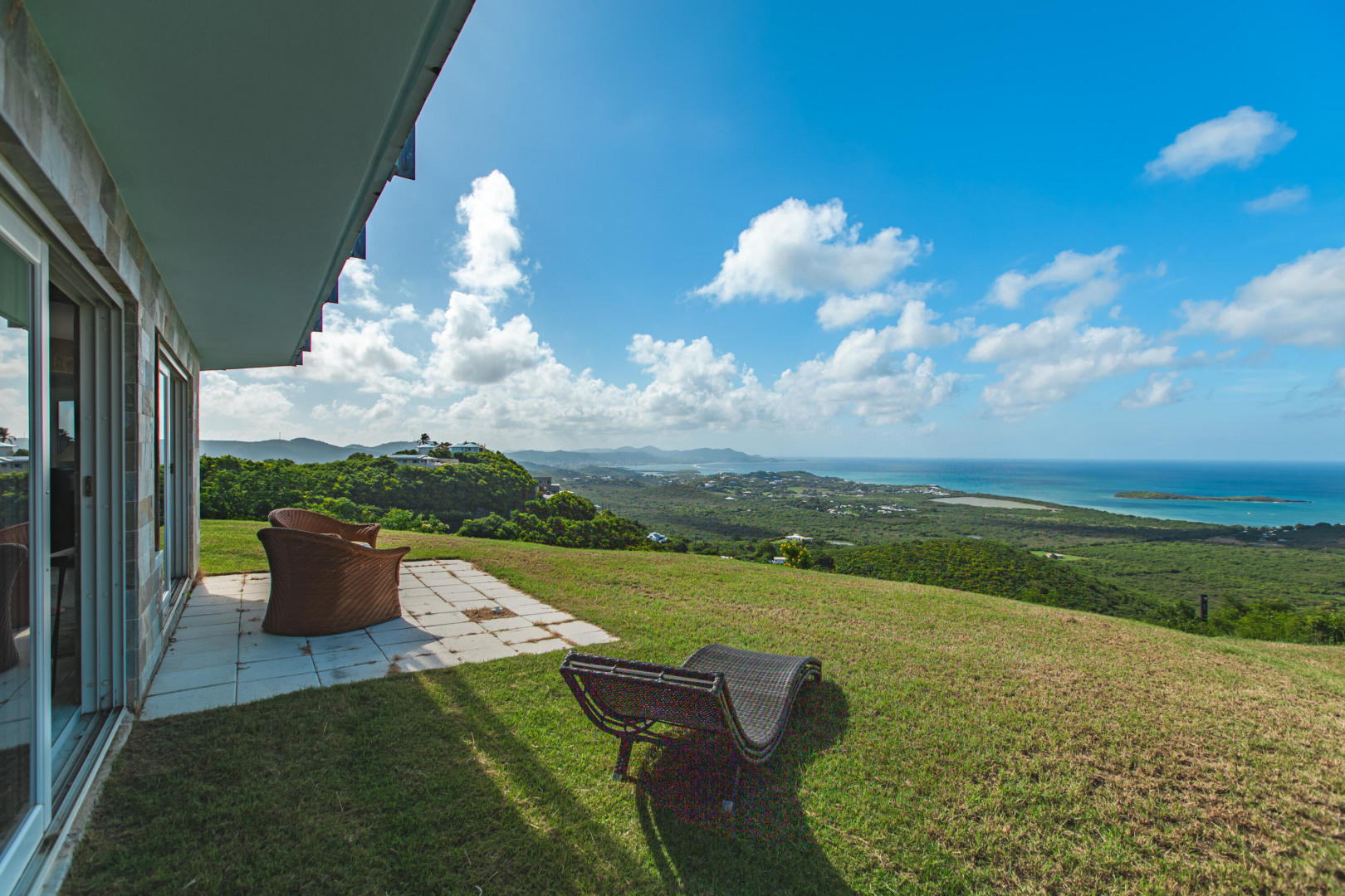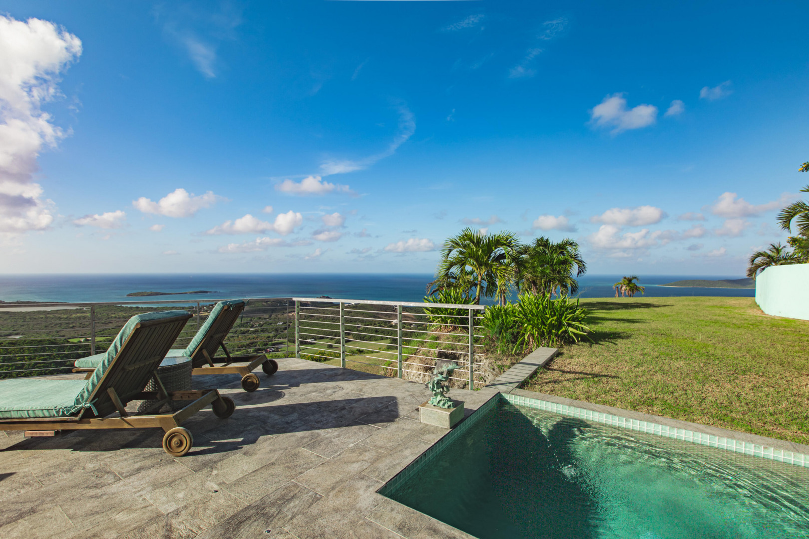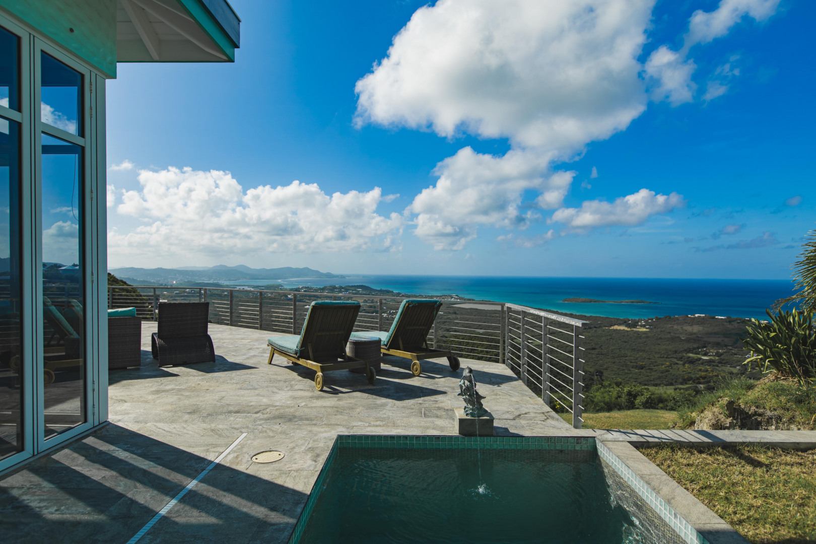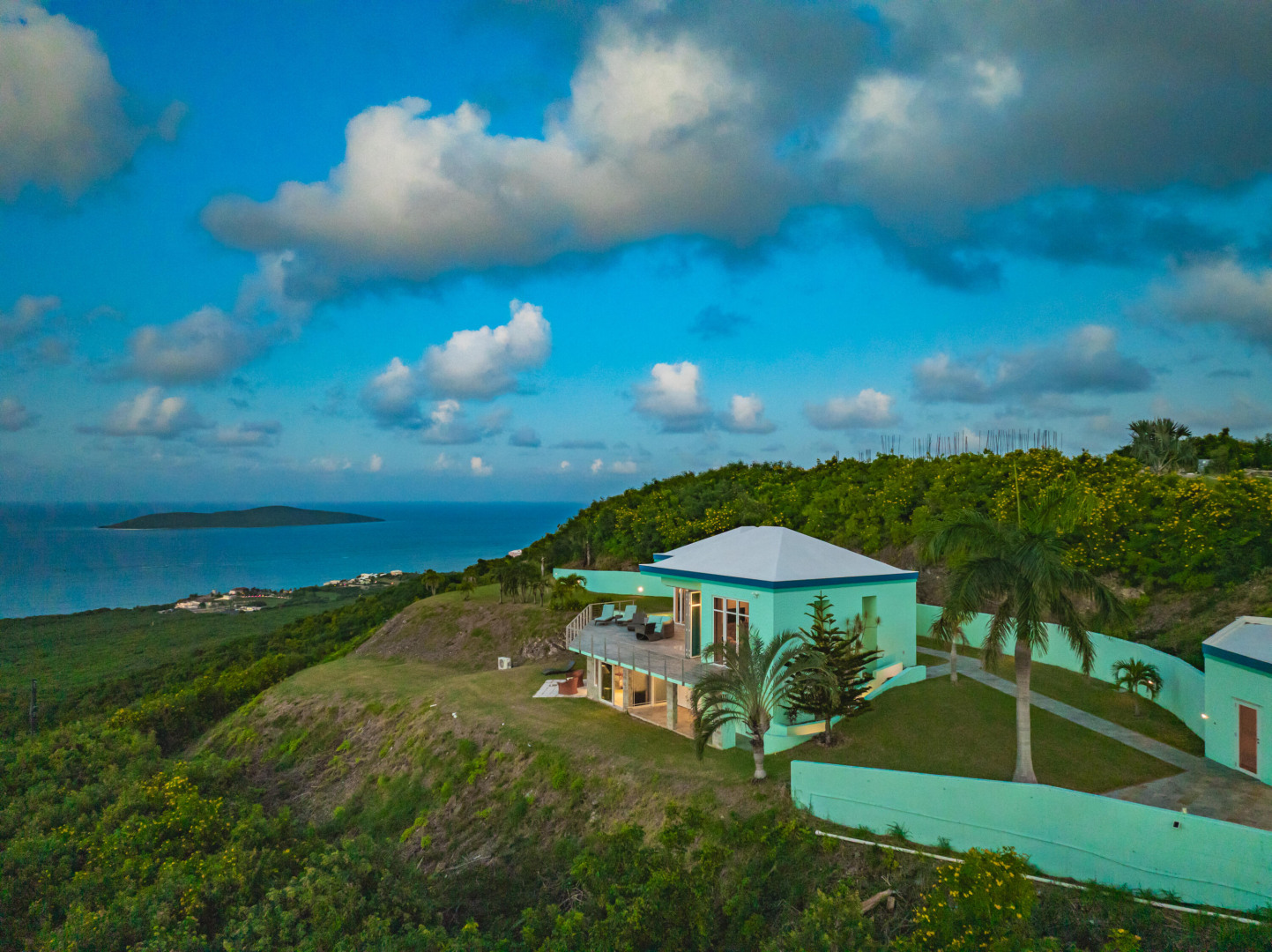 Experience elevated island living from this custom-built 3-bedroom, 3.5-bath, two-story home perched on nearly 2 acres in St. Croix's desirable East End. With sweeping views from Buck Island west to Christiansted harbor, this hilltop retreat offers privacy, style, and sophistication. Designed for comfort and entertaining, the home features an open layout with marble and granite floors, sleek Nanawall impact glass doors that bring the outdoors in, and pool surrounded by spacious patios and gallery space perfect for gatherings. Each bedroom offers its own en-suite bath, while the primary suite is a true sanctuary. Stand-alone 3rd bedroom suite perfect for an efficiency apt. Additional features include split A/C units, gated entry, and an automatic generator for peace of mind. This one-of-a-kind property captures the best of Caribbean luxury with unbeatable views and breezy East End living.