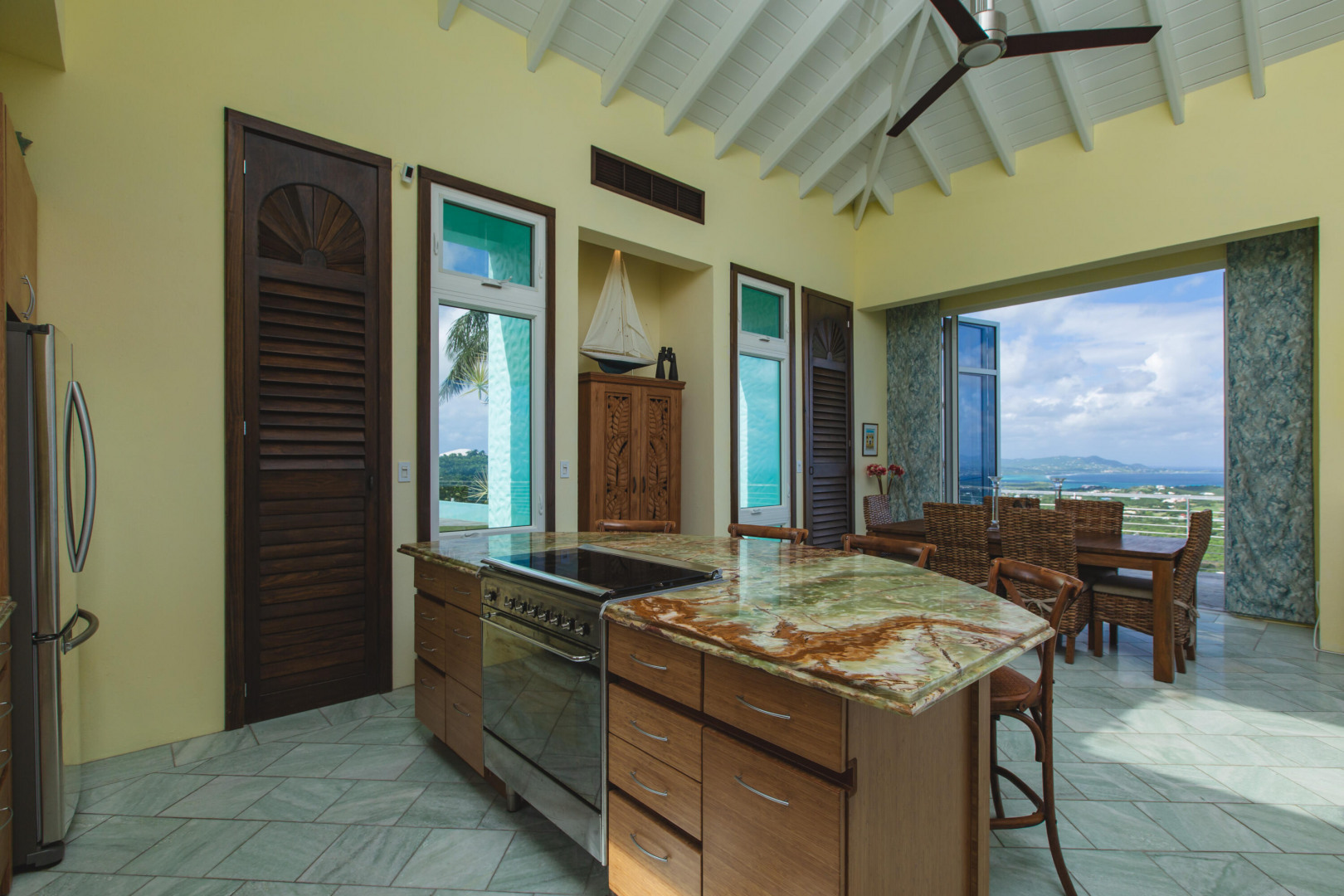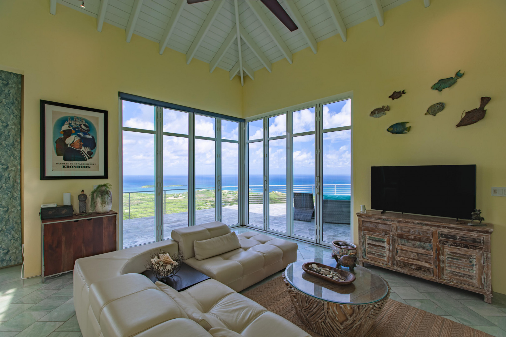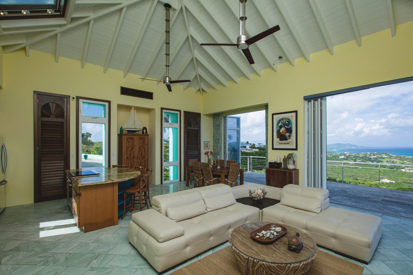 Experience elevated island living from this custom-built 3-bedroom, 3.5-bath, two-story home perched on nearly 2 acres in St. Croix's desirable East End. With sweeping views from Buck Island west to Christiansted harbor, this hilltop retreat offers privacy, style, and sophistication. Designed for comfort and entertaining, the home features an open layout with marble and granite floors, sleek Nanawall impact glass doors that bring the outdoors in, and pool surrounded by spacious patios and gallery space perfect for gatherings. Each bedroom offers its own en-suite bath, while the primary suite is a true sanctuary. Stand-alone 3rd bedroom suite perfect for an efficiency apt. Additional features include split A/C units, gated entry, and an automatic generator for peace of mind. This one-of-a-kind property captures the best of Caribbean luxury with unbeatable views and breezy East End living.