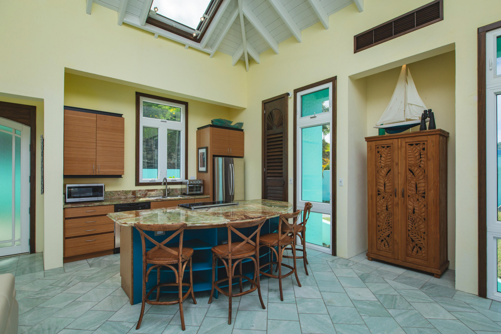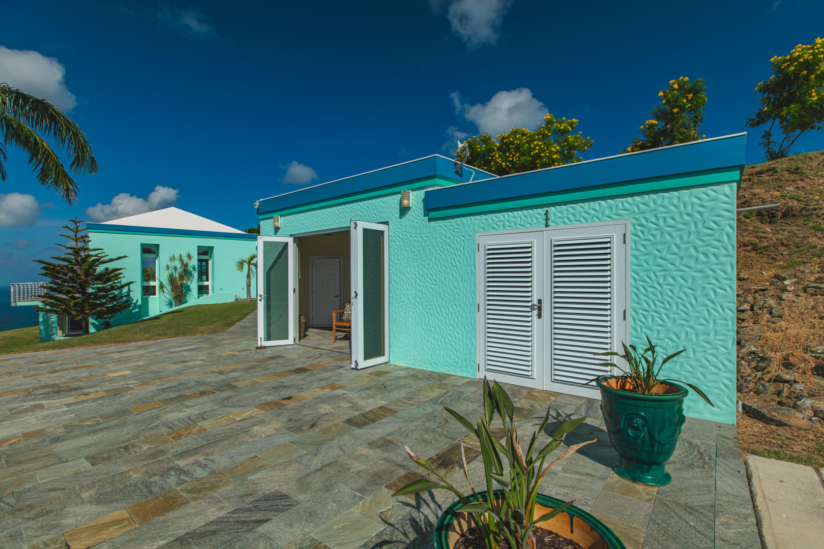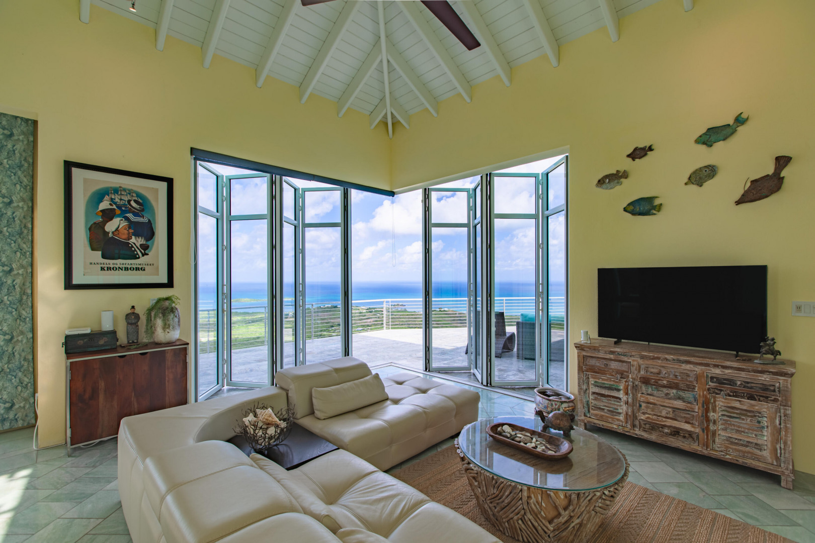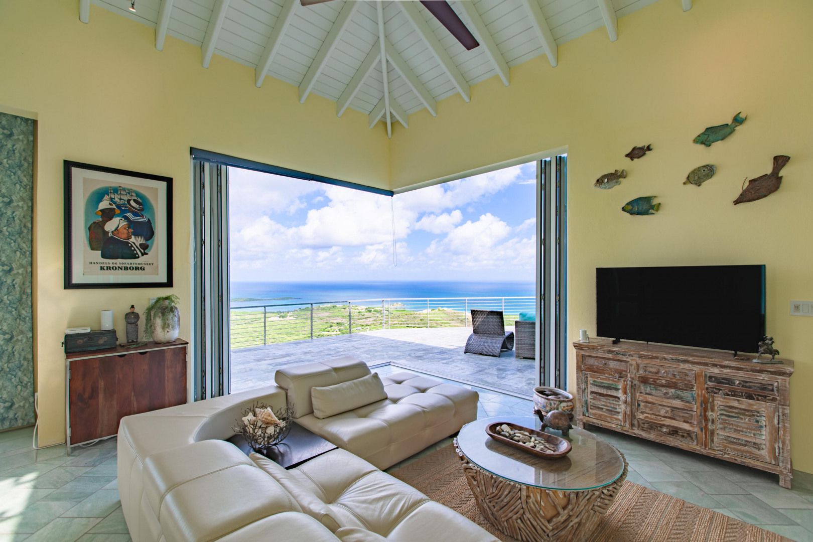 Experience elevated island living from this custom-built 3-bedroom, 3.5-bath, two-story home perched on nearly 2 acres in St. Croix's desirable East End. With sweeping views from Buck Island west to Christiansted harbor, this hilltop retreat offers privacy, style, and sophistication. Designed for comfort and entertaining, the home features an open layout with marble and granite floors, sleek Nanawall impact glass doors that bring the outdoors in, and pool surrounded by spacious patios and gallery space perfect for gatherings. Each bedroom offers its own en-suite bath, while the primary suite is a true sanctuary. Stand-alone 3rd bedroom suite perfect for an efficiency apt. Additional features include split A/C units, gated entry, and an automatic generator for peace of mind. This one-of-a-kind property captures the best of Caribbean luxury with unbeatable views and breezy East End living.