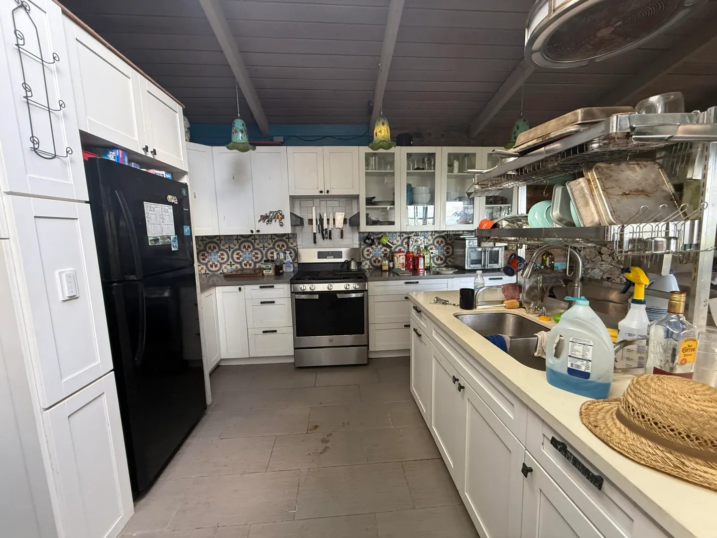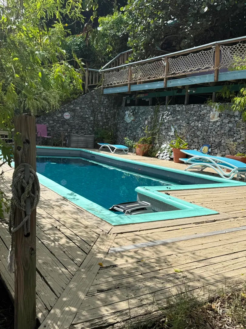 Your chance to own a truly unique East End property with sweeping turquoise ocean views and a stunning pool. This exceptional home features a striking exterior mural and a charming gallery entrance that opens into the main living space. Inside you will find a spacious kitchen accented with decorative wall tiles, a welcomingdining area, and 2 bedrooms/2 baths on the main level.