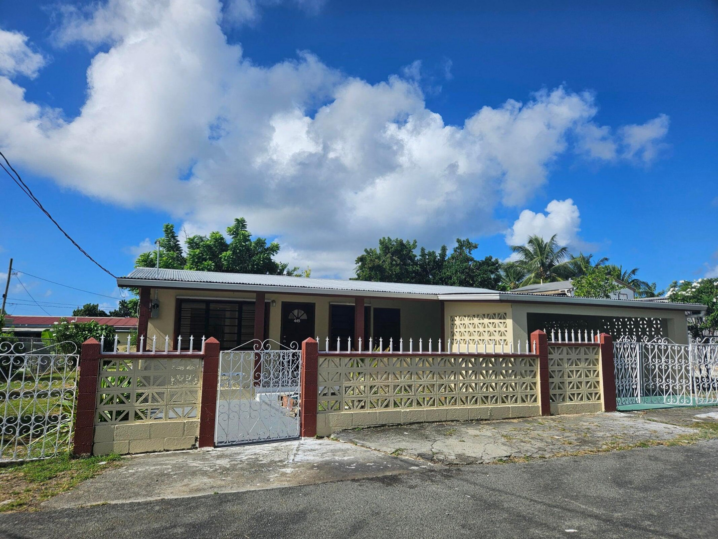 Step into this well-maintained 4-bedroom, 2-bathroom single-family home with 1,500 sq. ft. of living space. It offers updated bathrooms, a laundry/utility room, a fully fenced backyard with fruit trees and a tool shed, a covered porch, and a carport. The cistern is cleaned and painted, public water is available, and the owner is willing to provide a refrigerator, stove, and microwave. Landscaping and pest control are included.Located in Estate Strawberry Hill, just 5-10 minutes from schools, shopping centers, hospitals, the amphitheatre, and everyday conveniences. Perfect for those seeking comfort, privacy, and convenience.