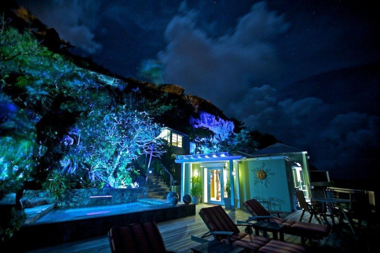 Spectacular and private 1.4 acre waterfront location. Architect inspired interior design, and furnishings. This is a must see waterfront home that will not last long. Operated as a short term rental, however perfect for family residential or multi-generational second home.If you enjoy the perfect ambience to entertain in barefoot elegance, and the privacy of your own (end of the road) cove, within one of St Thomas premier gated neighborhoods. Please take the time to see ''Cliffhanger'' villa !