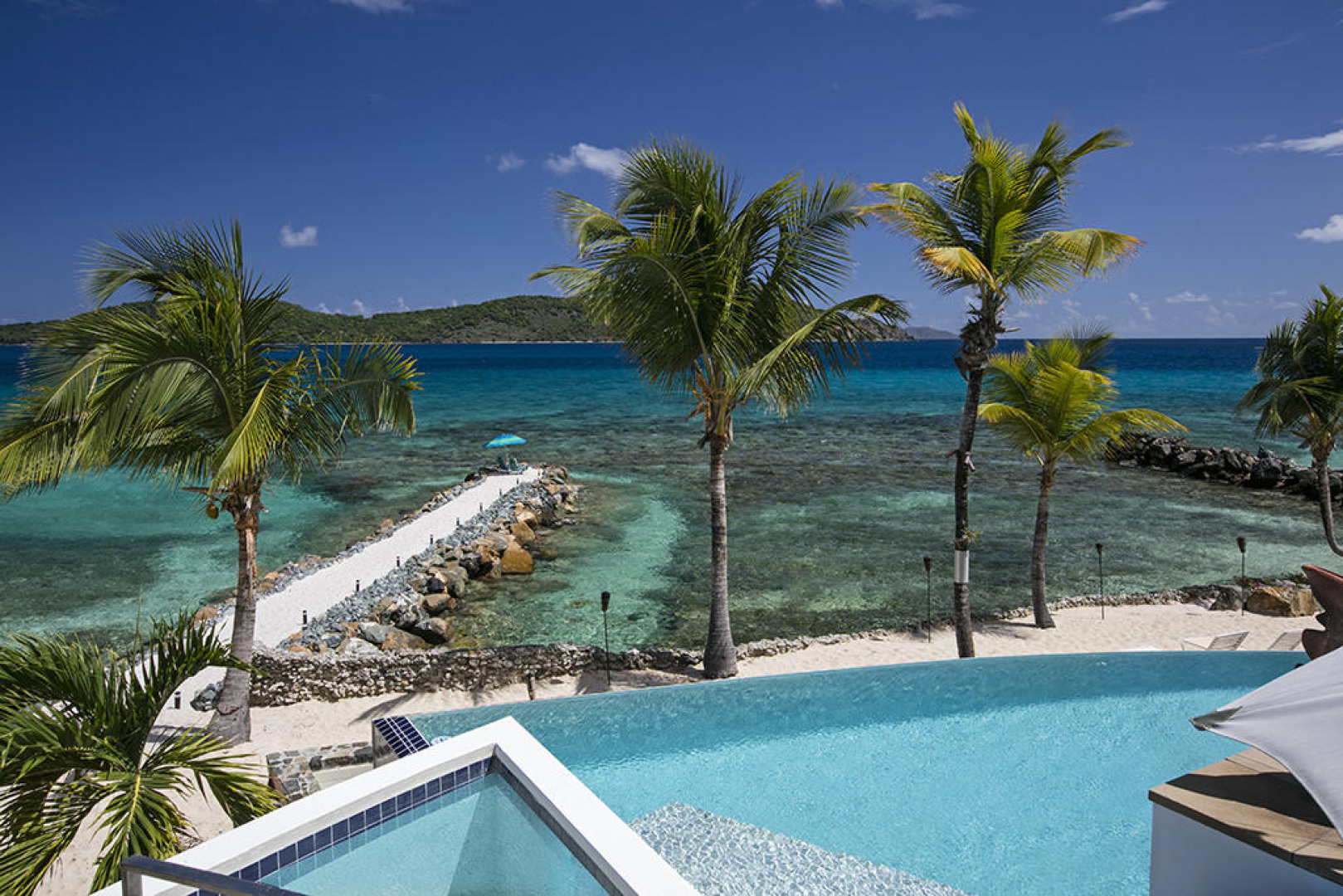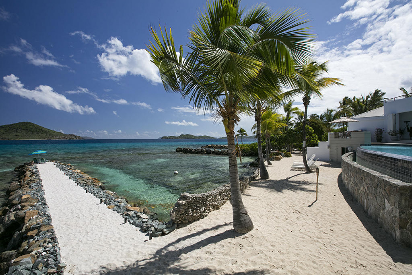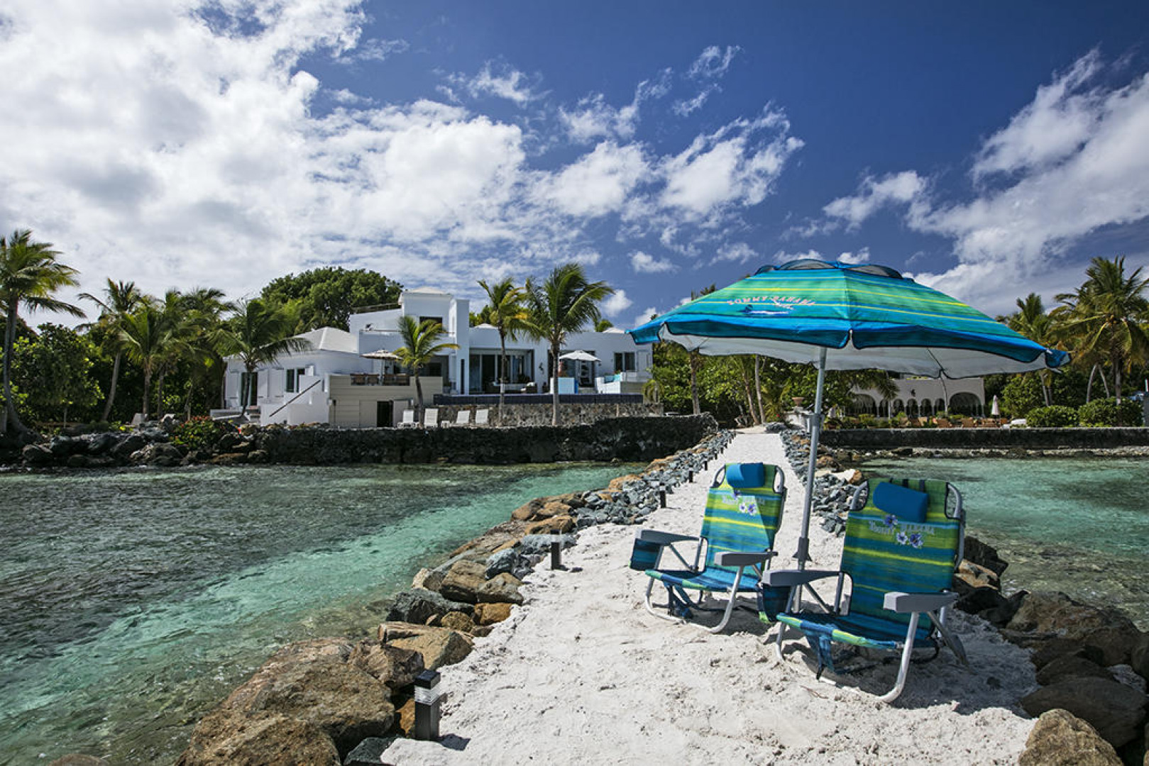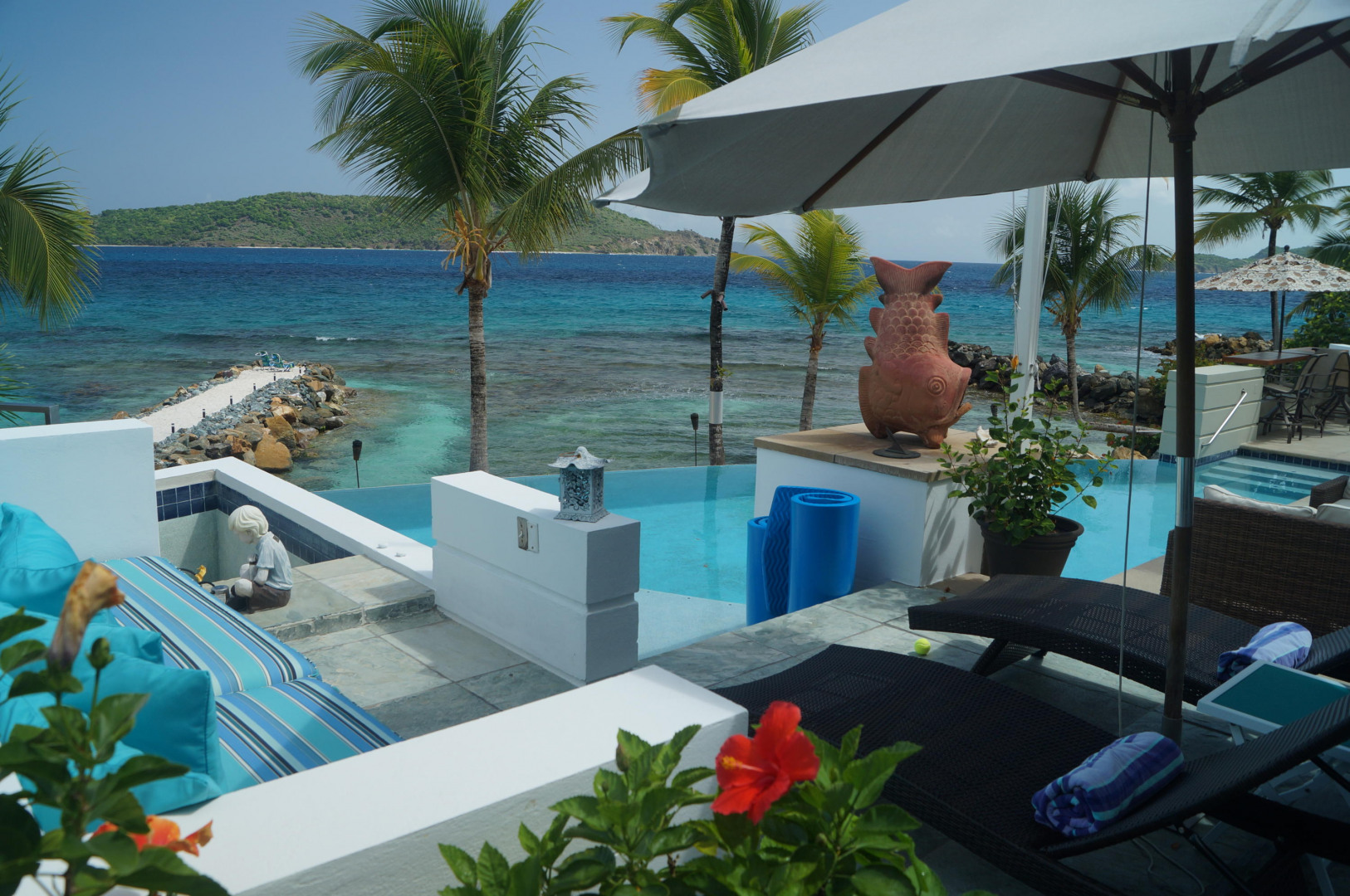 Very unique opportunity to own a magnificent CARIBBEAN BEACHFRONT PROPERTY! Recently updated with stunning improvements, this well built four bedroom home, has all of the amenities one could ask for: Waterfront, Infinity pool, hot tub, sandy beach w/ water access,huge studio apartment, garage, parking and views beyond description. This one of a kind property is nestled on a private & secluded bay! Listen to the waves rolling into the bay from the many decks and swimming pool. Hidden away with its very private beach, waterfront living doesn't get any better. The azure blue water as far as you can gaze surrounds you as you sit on the sand. CARIBBEAN LIVING at its very best!!