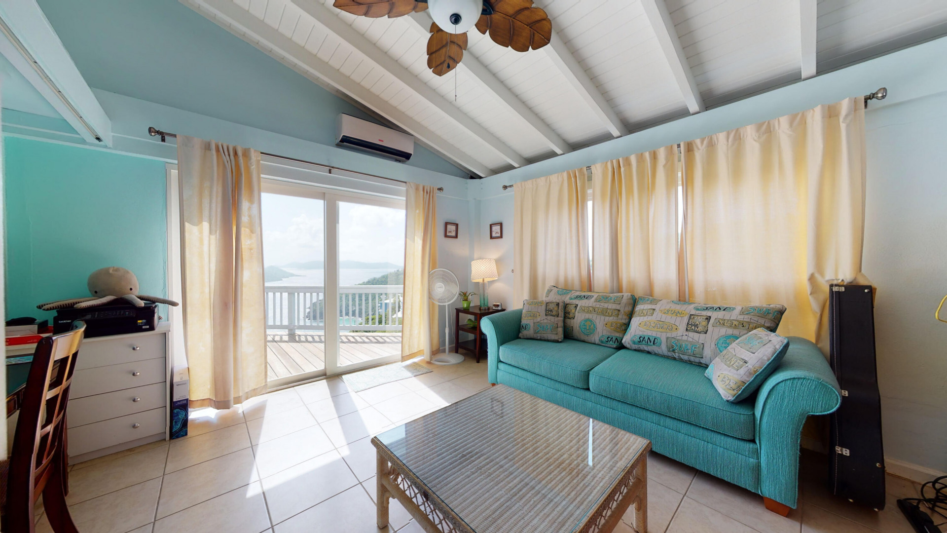 Perched 600 breath-taking feet above the Atlantic Ocean, this tri-level home offers panoramic views of the Ocean and surrounding islands. Cooled by trade winds, this 3BR/2BA villa, includes wrap around balconies, A/C, new granite throughout, newly remodeled bathrooms, a great swimming pool, plus a 1BR/1BA rental unit with a separate private entrance and plenty of off street parking. Solar panels with one Tesla battery and net metering!!! Generator for back up power usage!! Quiet Neighborhood! The down Island views are as good as it gets on STT!! Successful rental program makes the the perfect opportunity to own that Caribbean getaway that will help pay for itself.