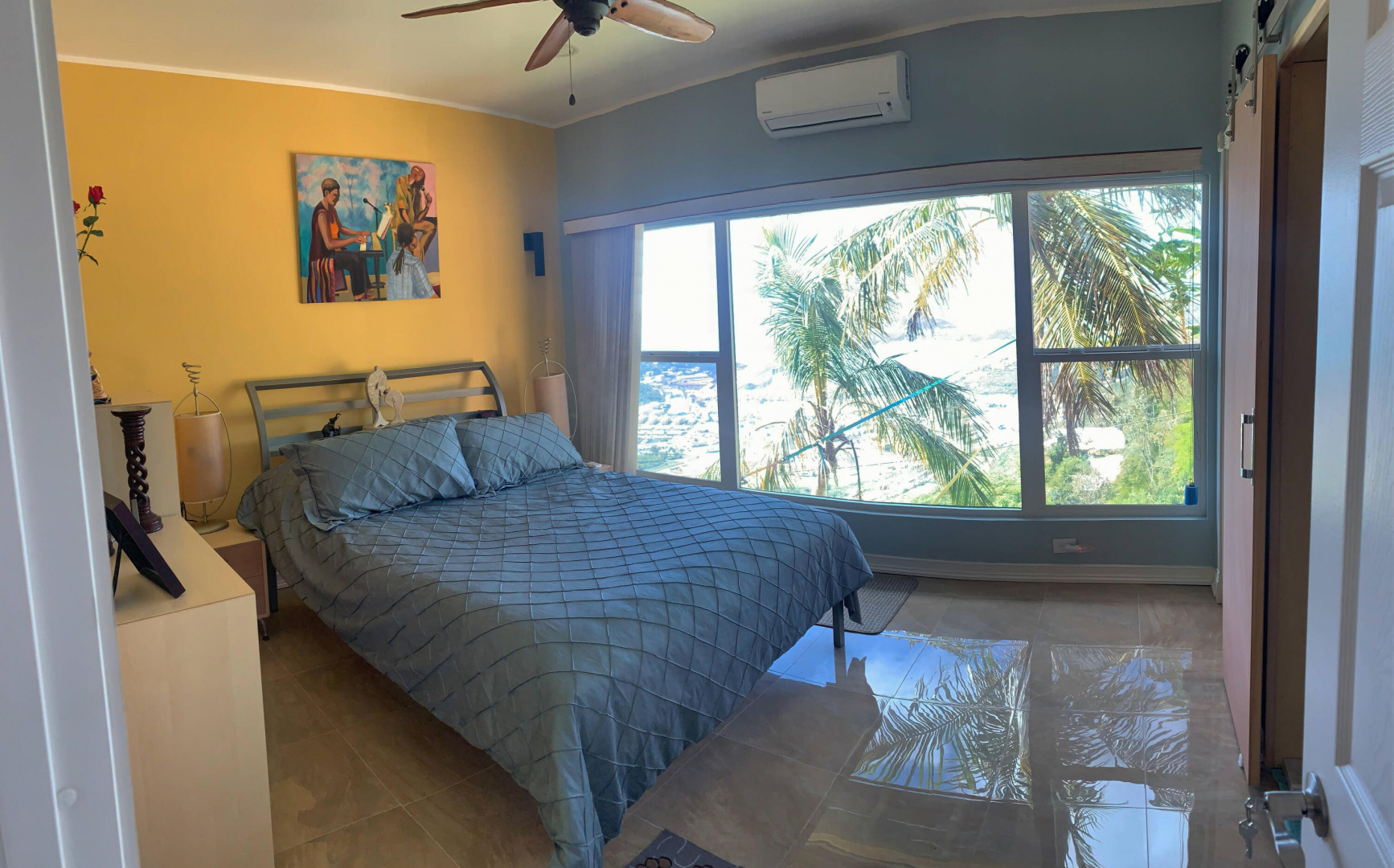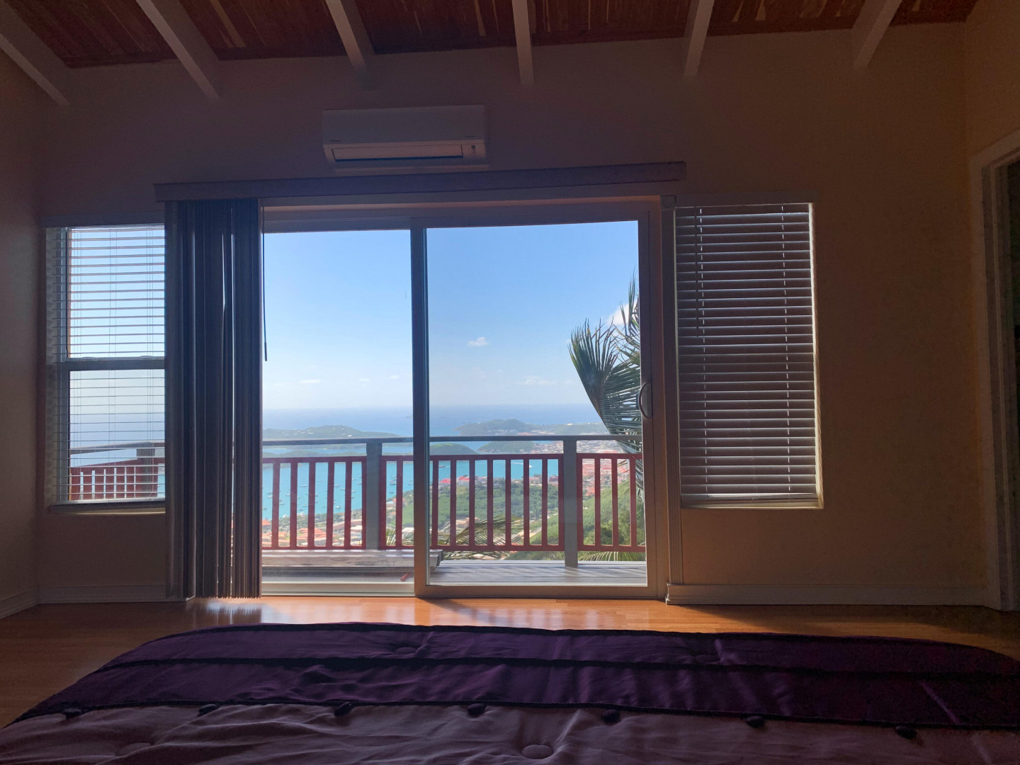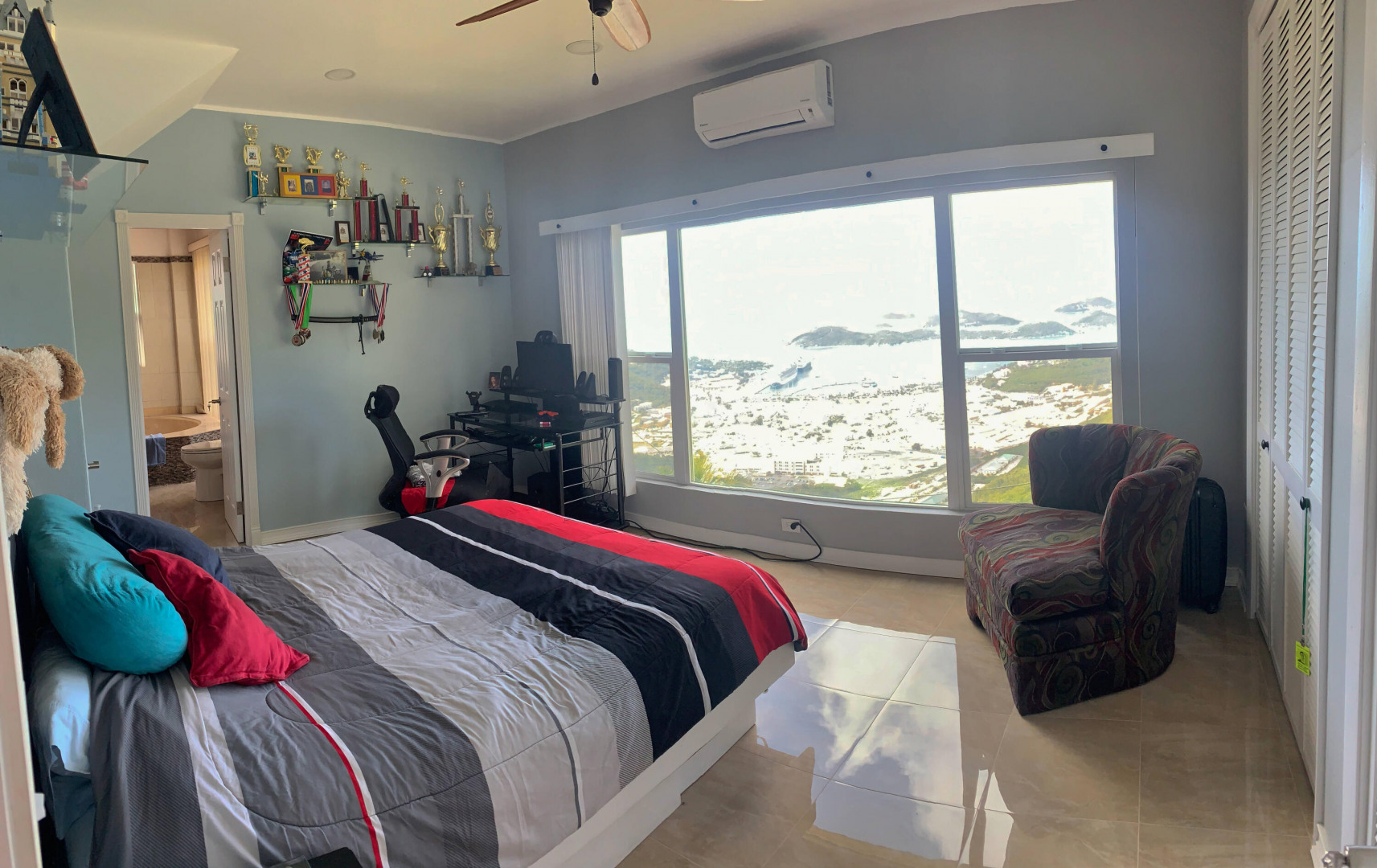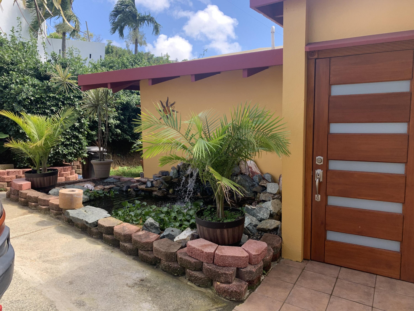This house has amazing views from St Croix to Vieques and into Charlotte Amalie Harbor, is a great central location close to shopping, historic downtown and the famous Magens Bay Beach. This is a low maintenance concrete home with a concrete fence and marine grade aluminum gate. The main house is walk in level with 3 bedrooms, 3 baths, a lovely Koi pond at the entrance and it has an income producing 1 bedroom apartment and LOTS of storage space. The house comes furnished and was renovated in 2019. Over $300,000 in updates and upgrades. New roofs, 18 double pane impact windows, new tile, new interior and exterior paint. The house also has a 11Kw hybrid propane or gasoline backup generator. All windows have hurricane panels and three new split a/c units.