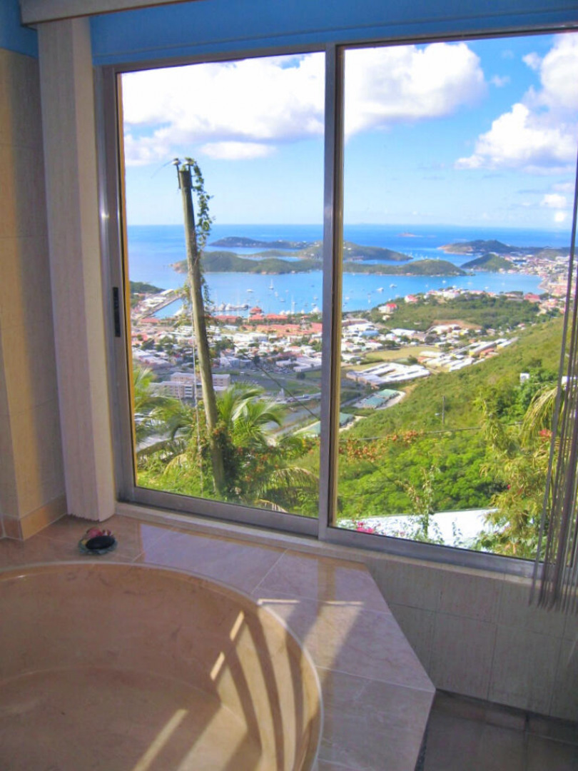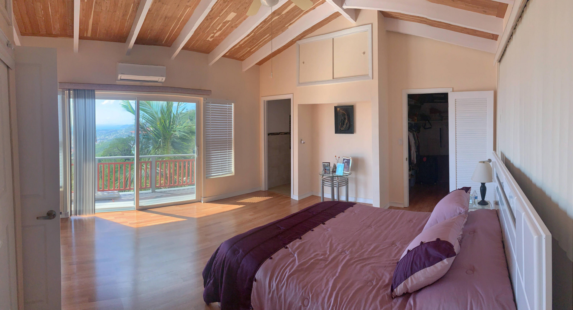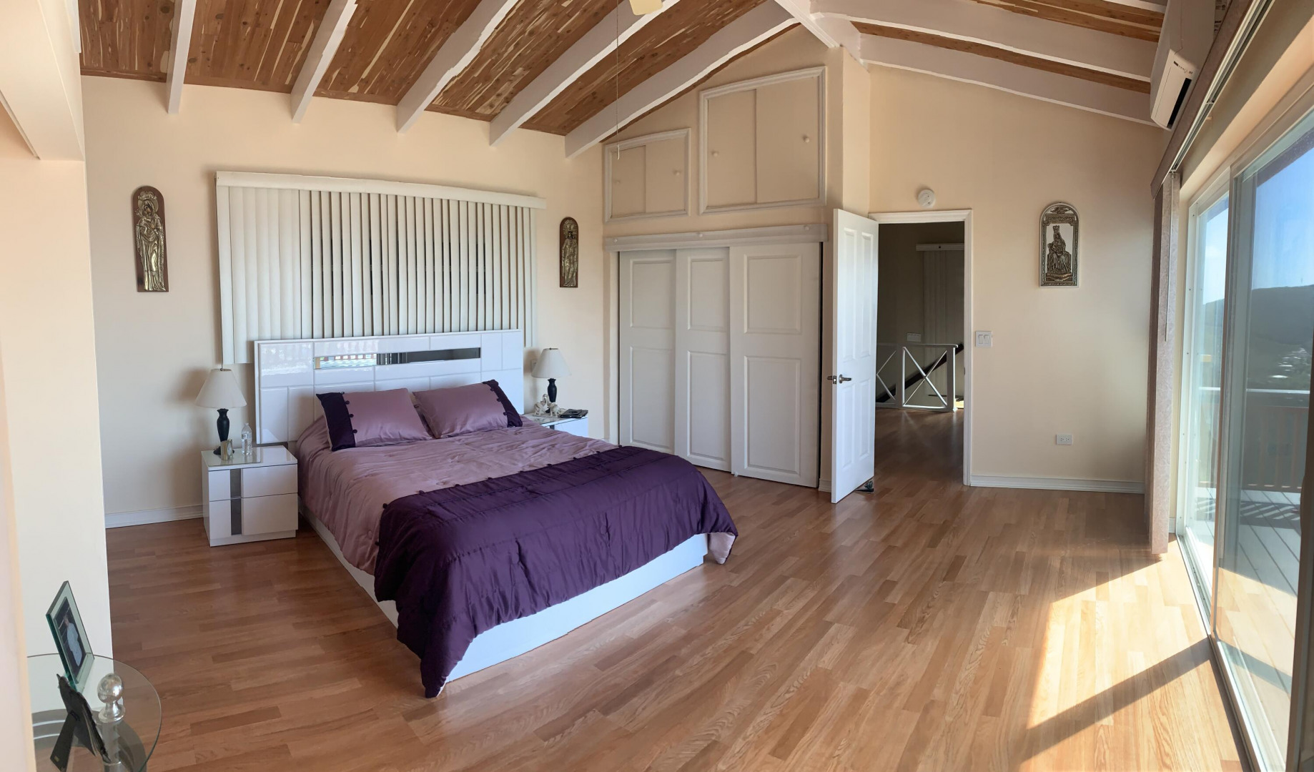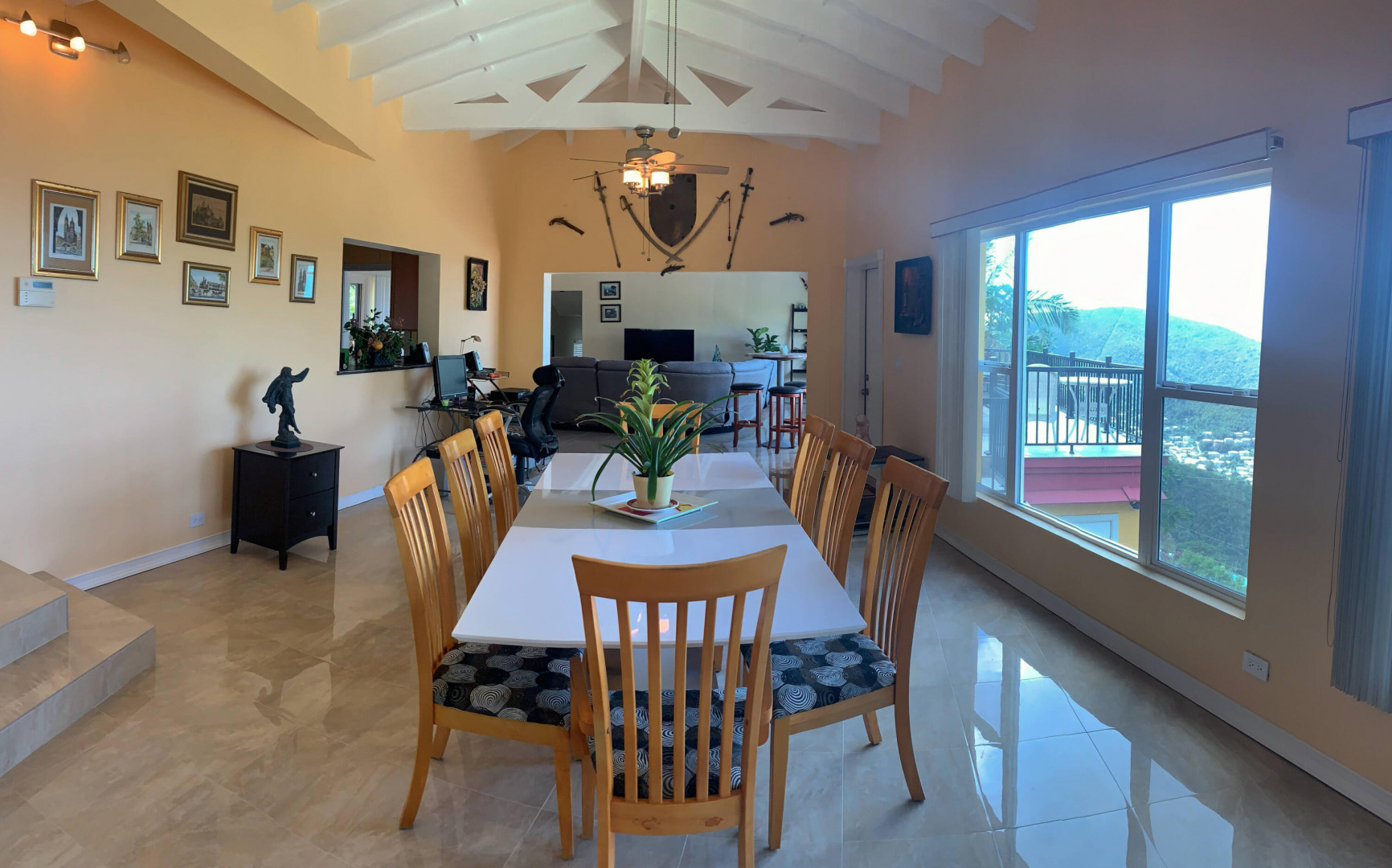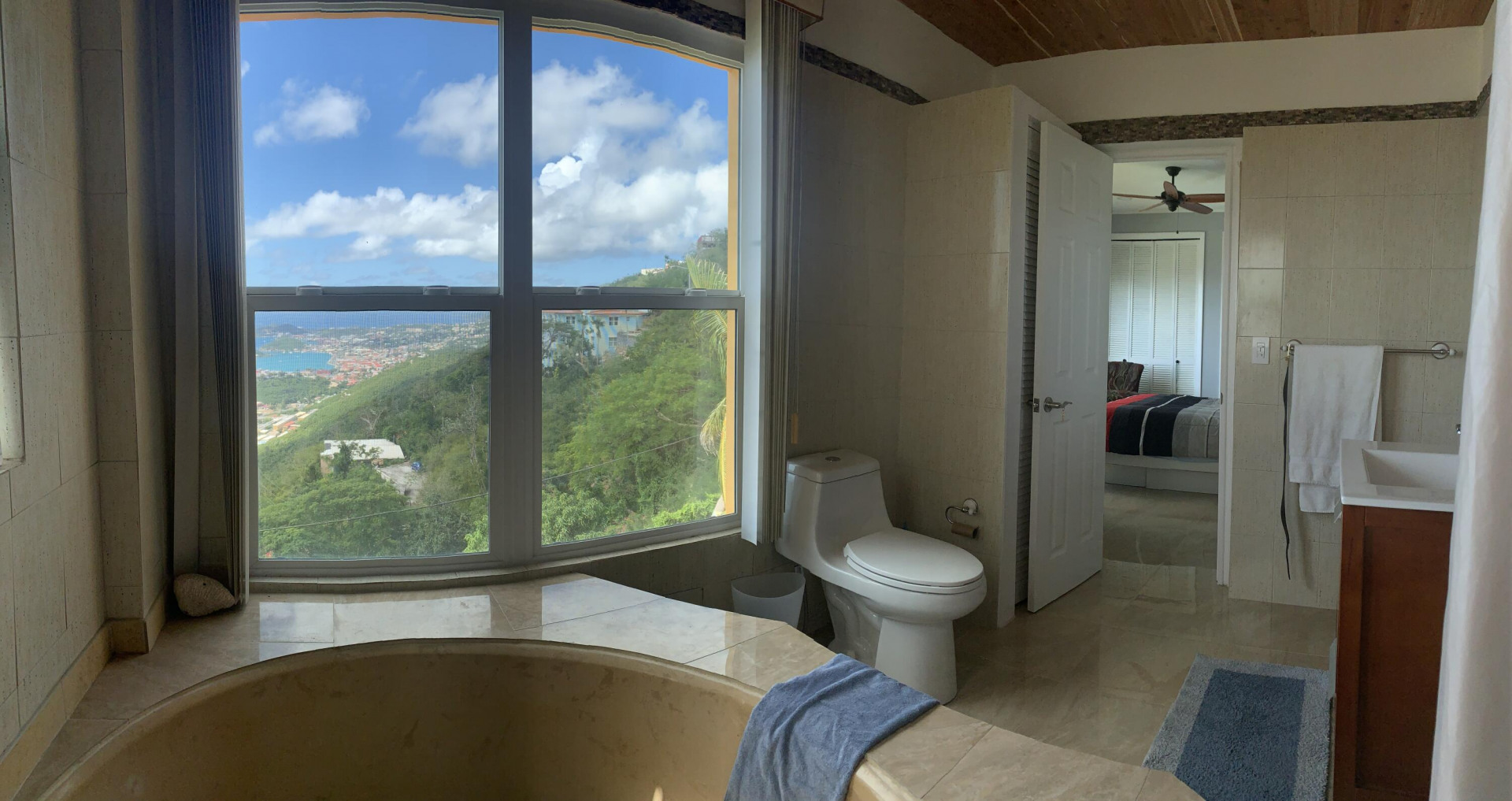 This house has amazing views from St Croix to Vieques and into Charlotte Amalie Harbor, is a great central location close to shopping, historic downtown and the famous Magens Bay Beach. This is a low maintenance concrete home with a concrete fence and marine grade aluminum gate. The main house is walk in level with 3 bedrooms, 3 baths, a lovely Koi pond at the entrance and it has an income producing 1 bedroom apartment and LOTS of storage space. The house comes furnished and was renovated in 2019. Over $300,000 in updates and upgrades. New roofs, 18 double pane impact windows, new tile, new interior and exterior paint. The house also has a 11Kw hybrid propane or gasoline backup generator. All windows have hurricane panels and three new split a/c units.