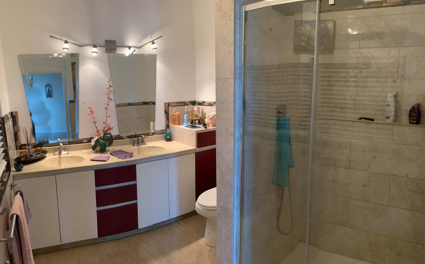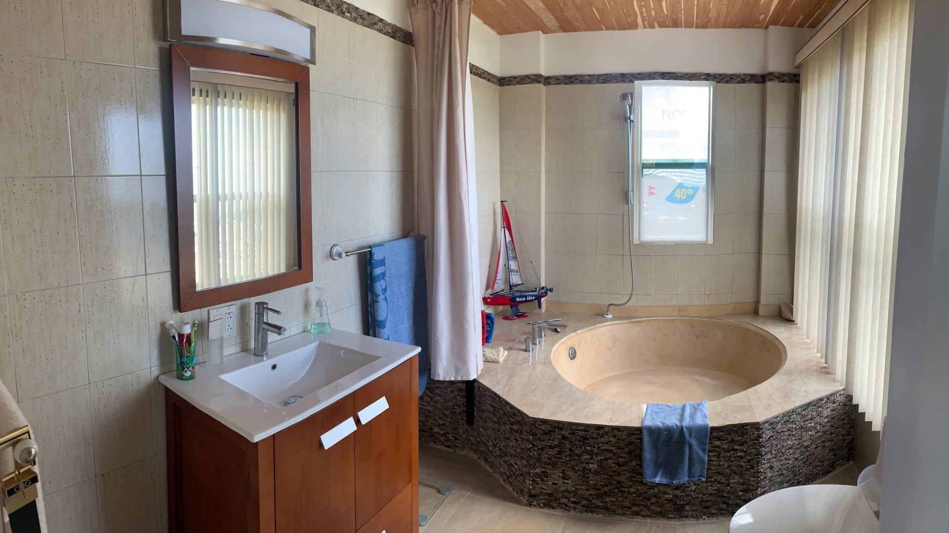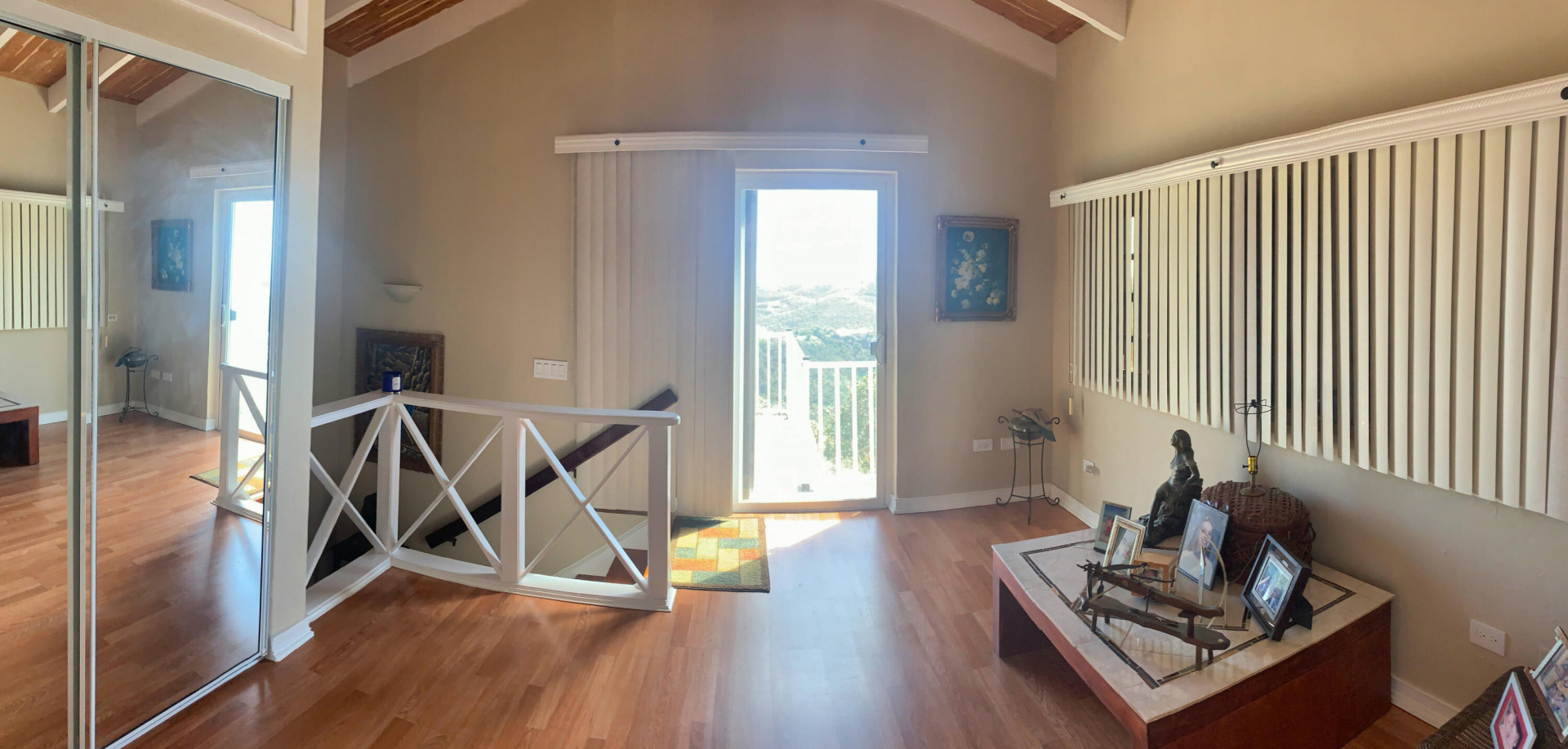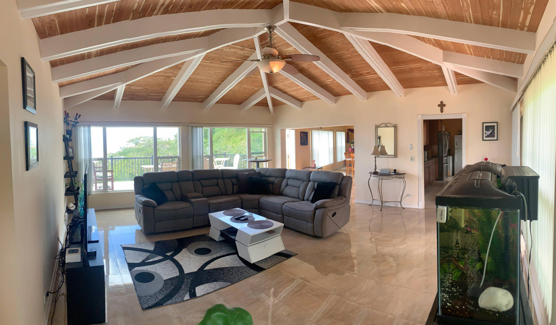 This house has amazing views from St Croix to Vieques and into Charlotte Amalie Harbor, is a great central location close to shopping, historic downtown and the famous Magens Bay Beach. This is a low maintenance concrete home with a concrete fence and marine grade aluminum gate. The main house is walk in level with 3 bedrooms, 3 baths, a lovely Koi pond at the entrance and it has an income producing 1 bedroom apartment and LOTS of storage space. The house comes furnished and was renovated in 2019. Over $300,000 in updates and upgrades. New roofs, 18 double pane impact windows, new tile, new interior and exterior paint. The house also has a 11Kw hybrid propane or gasoline backup generator. All windows have hurricane panels and three new split a/c units.