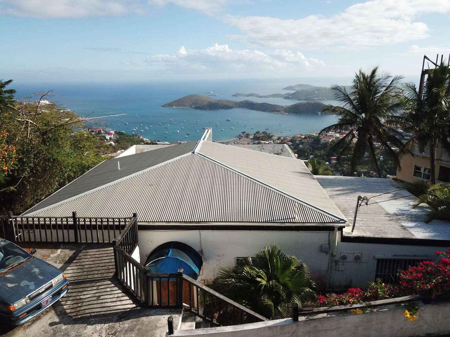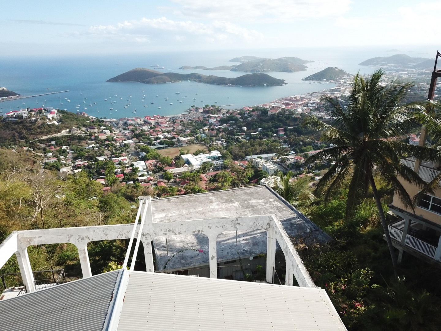Great property that is in need of TLC. This property on Skyline Dr. will pay for itself with potential revenue of $10,000+ per month. This house has 7 Units with 9 BR/ 8BA. All units on the property have an excellent view of the harbor and ocean.There is a 3 Bedroom/2 Bathroom + 1 BR/1BA and in the 2nd building - 5 cute studio apartments all with a great ocean and harbor view. 3 of the 4 were under going renovation and 1 has a tenant. There are 3 cisterns with approximately 55,000 gallons and 3 grey water cisterns. Architect plans are available to cover and close in the porch on the main house. There was a 5th unit on the property however owner has started renovation to combined the 4th and 5th units together into 1 larger unit.Plenty of off road parking for at least 8 cars. Sold As
