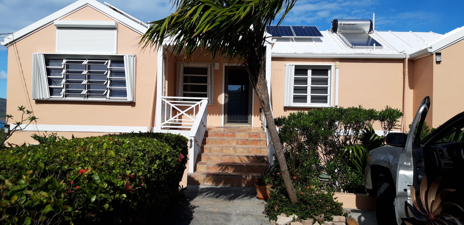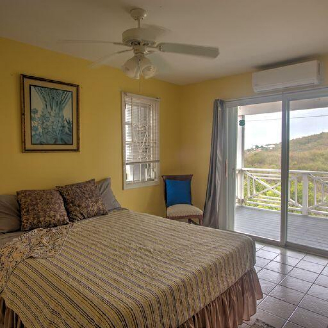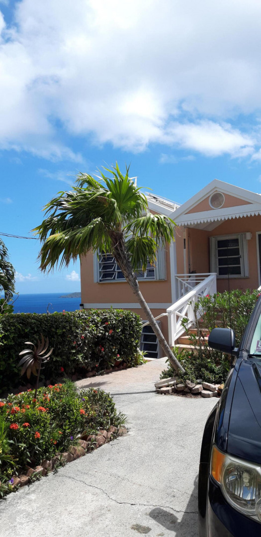 CERTAINLY A DELIGHTFUL FAMILY HOME, NESTLED ON A QUIET STREET WITH AWESOME VIEWS OF MAGENS BAY AND HANS LOLLIK. MANICURED HEDGES,FLOWERING GARDEN AND COCONUT TREE. WELCOMING ENTRYWAY, TO SPACIOUS LIVING ROOM AND DINING AREA LEADING OUT TO SPRAWLING DECK. THRU SLIDING GLASS DOORS. ON YOUR LEFT IS KITCHEN AND HALLWAY TO LARGE MASTER SUITE WITH WALK-IN CLOSET AND PRIVATE DECK . DESCEND STEPS TO TWO BEDROOMS, TWO BATHS AND LARGE DECK TO WATCH THE FULL MOON. THERE IS A STORAGE ROOM, WASHER/DRYER, AC, NEW GENERATOR AND .SOLAR PANELS. THE FULLY FURNISHED ONE BEDROOM APT WITH SCREENED IN PORCH IS ALWAYS RENTED. WALK TO MAGENS BEACH, ICE CREAM SHAKES, GREAT RESTAURANTS AND ELEMENTARY SCHOOL. JUST 10-15 MIN. DRIVE TO UNIVERSITY. DOWNTOWN AND MALL.