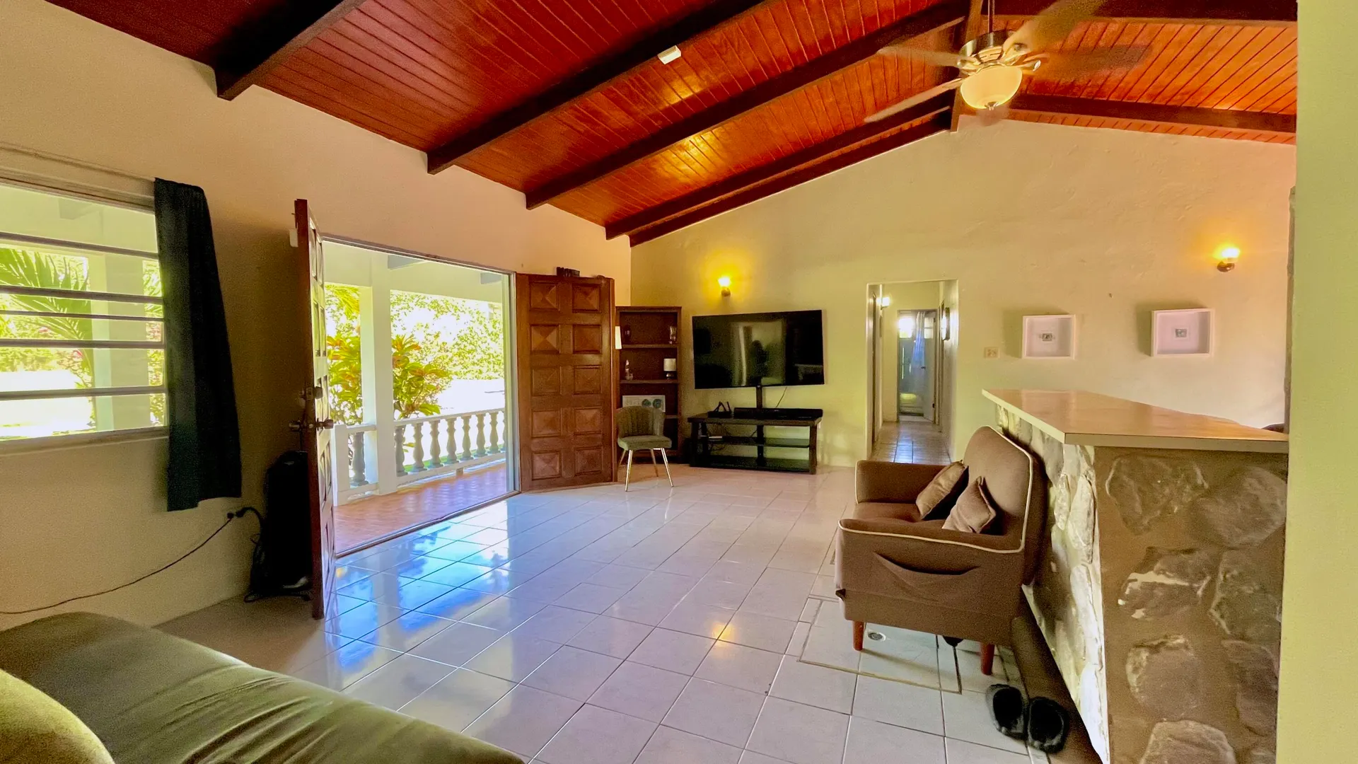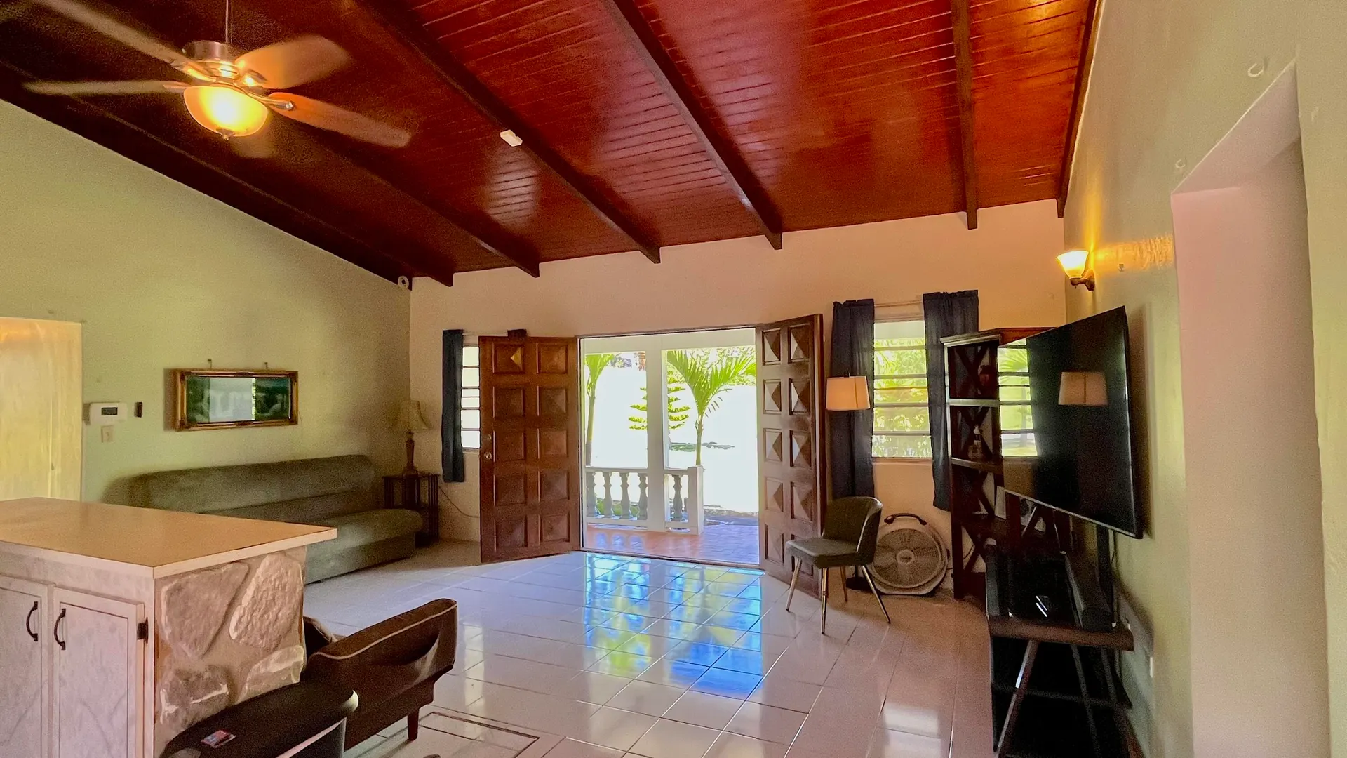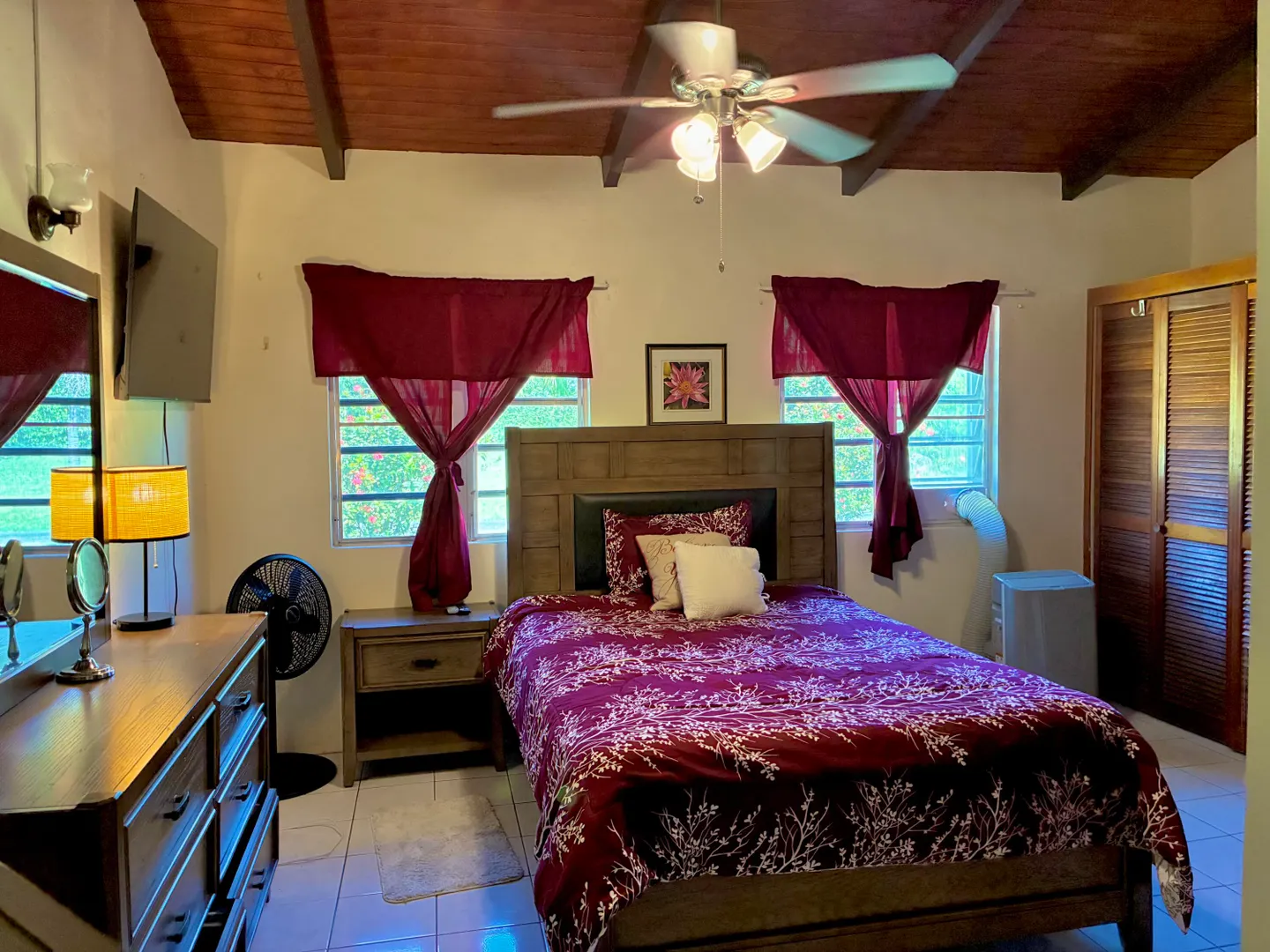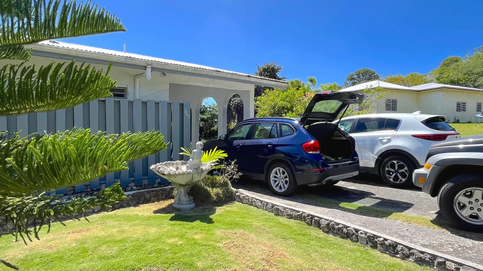 3-Bedroom, 2-bathroom rental nestled in the affluent, residential subdivision of Estate Queen's Quarters. Fully furnished unit includes 3 portable A/Cs, 1 window A/C, flat screen TVs, $100/MO WAPA credit, Washer/dryer & private laundry room, one room currently converted into an office/in-home work out area, trash pick up, ADT Security system, monthly lawn care, & complementary high speed Wi-Fi. Small pets considered with one time pet fee. 2 cisterns with water are filled and available for use by Tenant. 2 full gas cylinders are provided complementary to Tenant. Large, flat lawn with lush trees and plenty of room for family activities. Private driveway & carport.