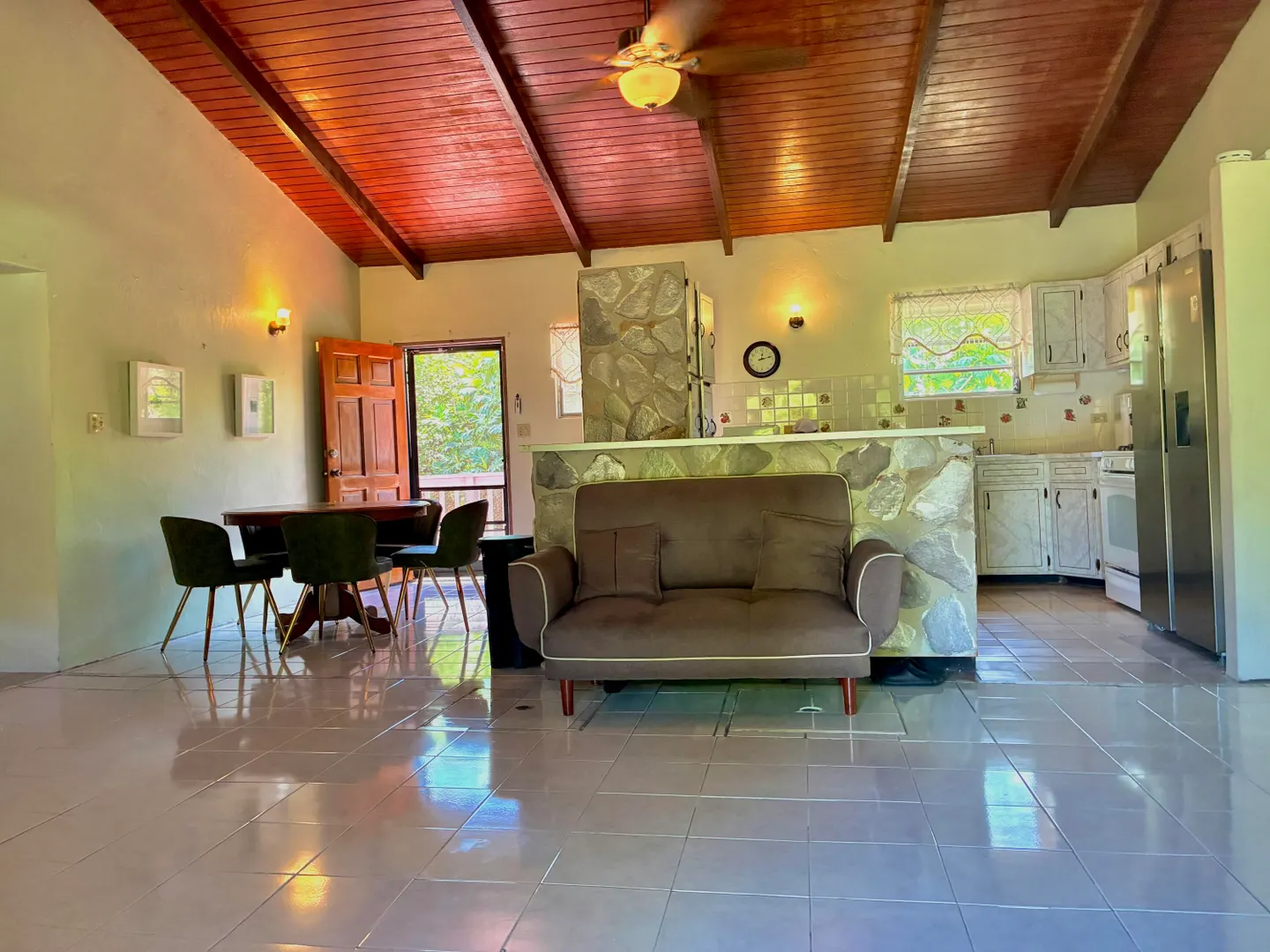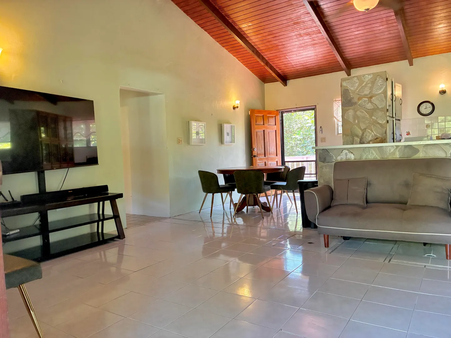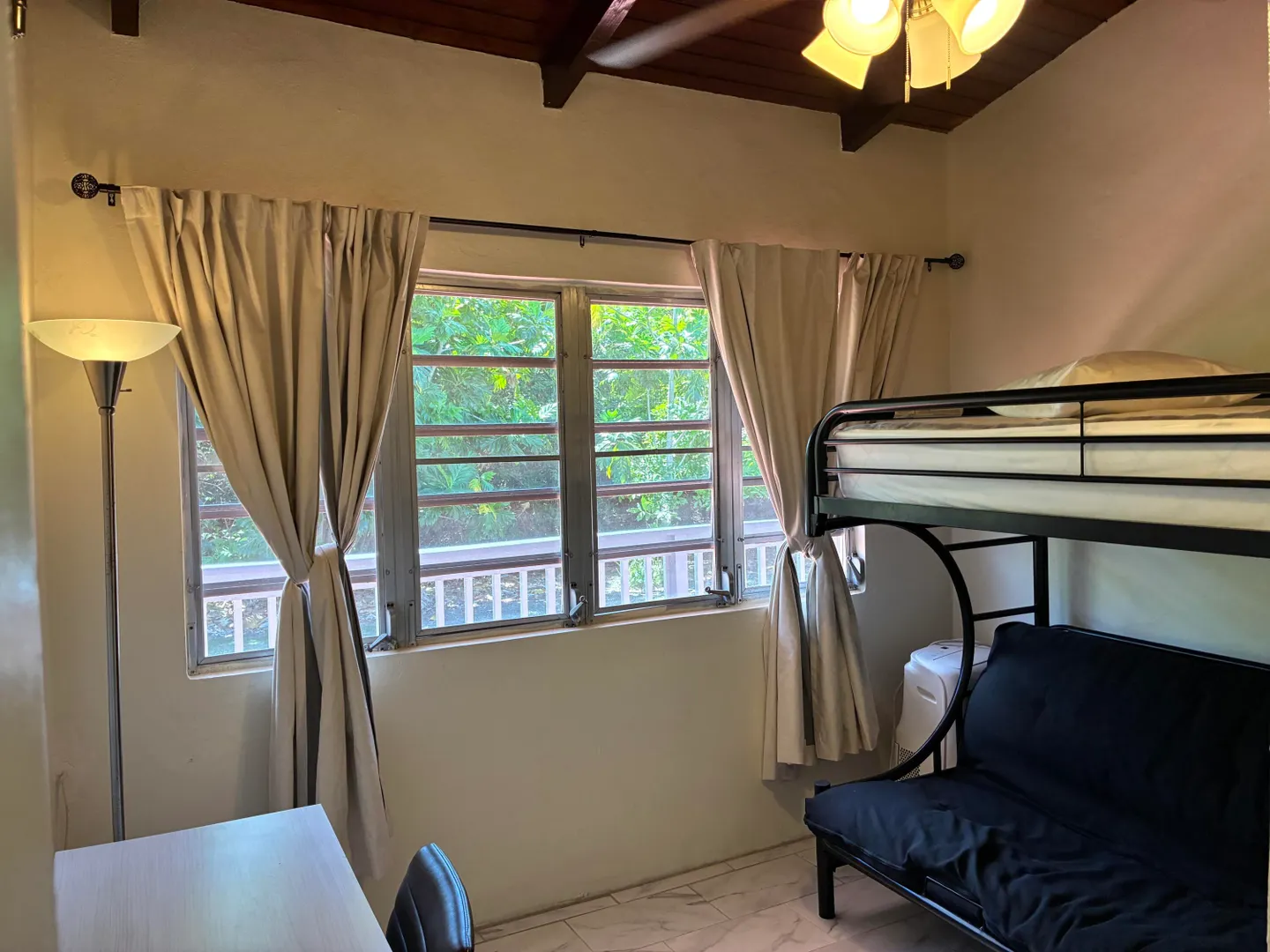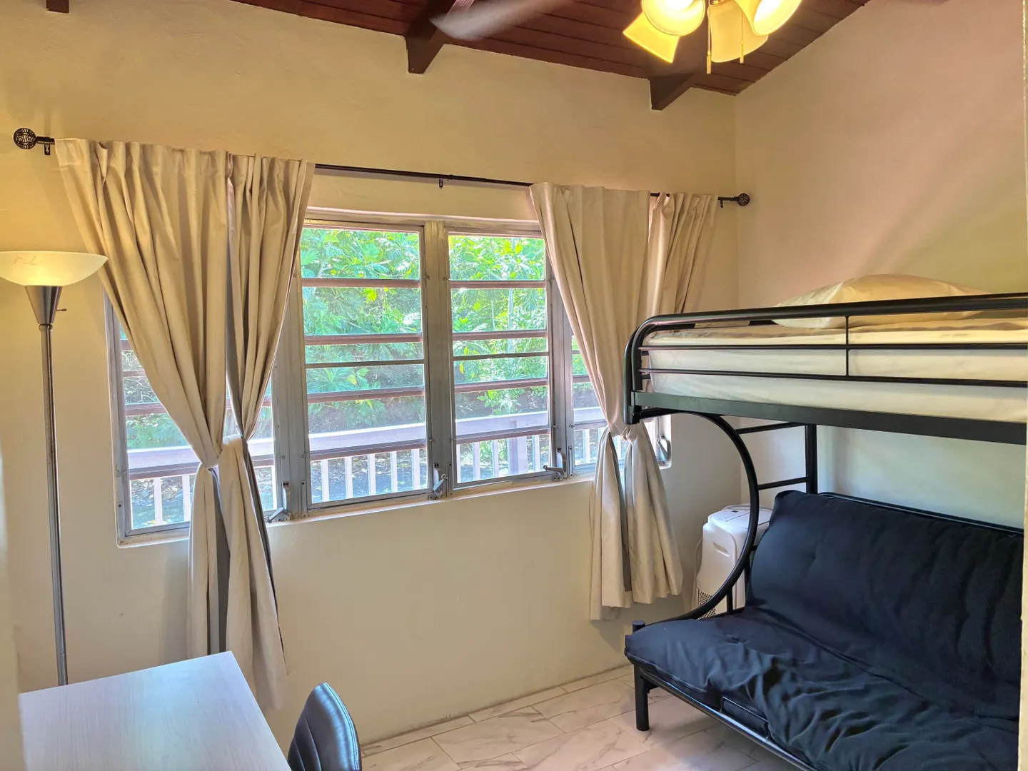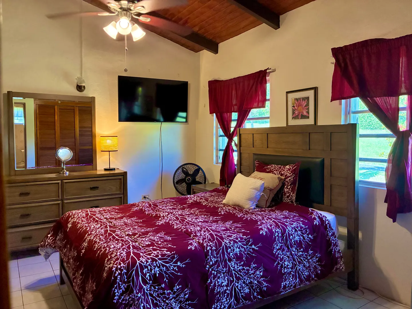 3-Bedroom, 2-bathroom rental nestled in the affluent, residential subdivision of Estate Queen's Quarters. Fully furnished unit includes 3 portable A/Cs, 1 window A/C, flat screen TVs, $100/MO WAPA credit, Washer/dryer & private laundry room, one room currently converted into an office/in-home work out area, trash pick up, ADT Security system, monthly lawn care, & complementary high speed Wi-Fi. Small pets considered with one time pet fee. 2 cisterns with water are filled and available for use by Tenant. 2 full gas cylinders are provided complementary to Tenant. Large, flat lawn with lush trees and plenty of room for family activities. Private driveway & carport.