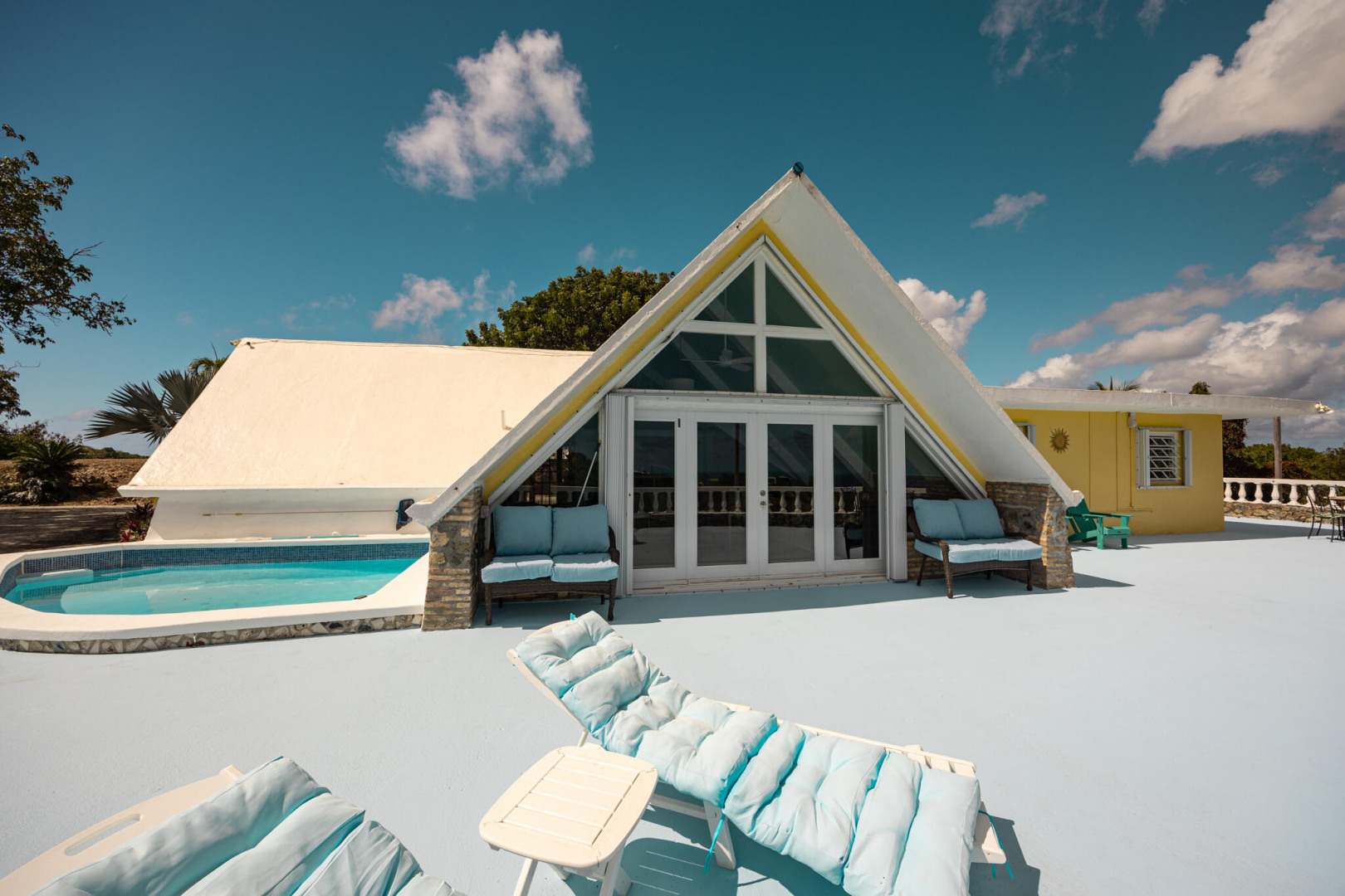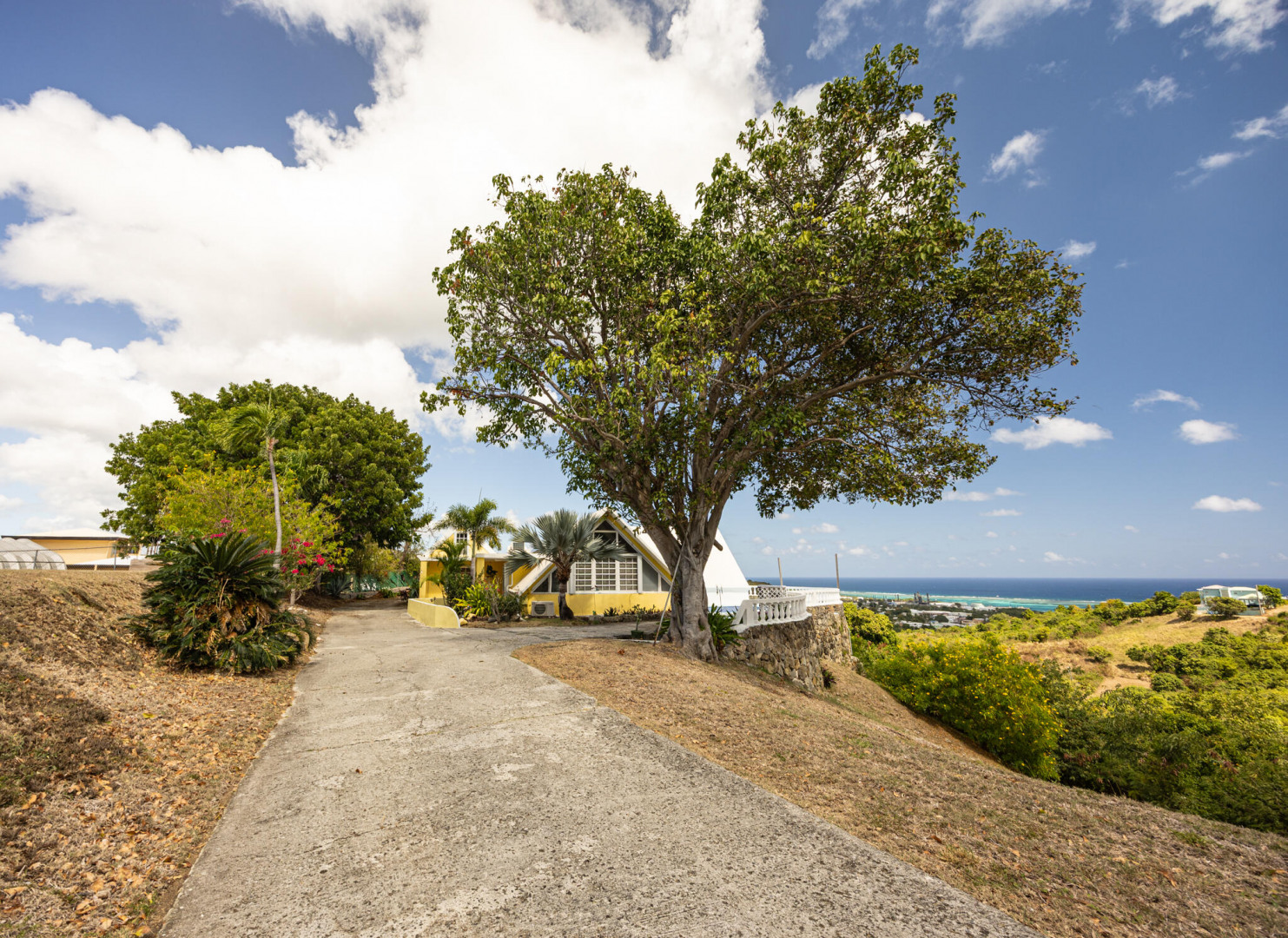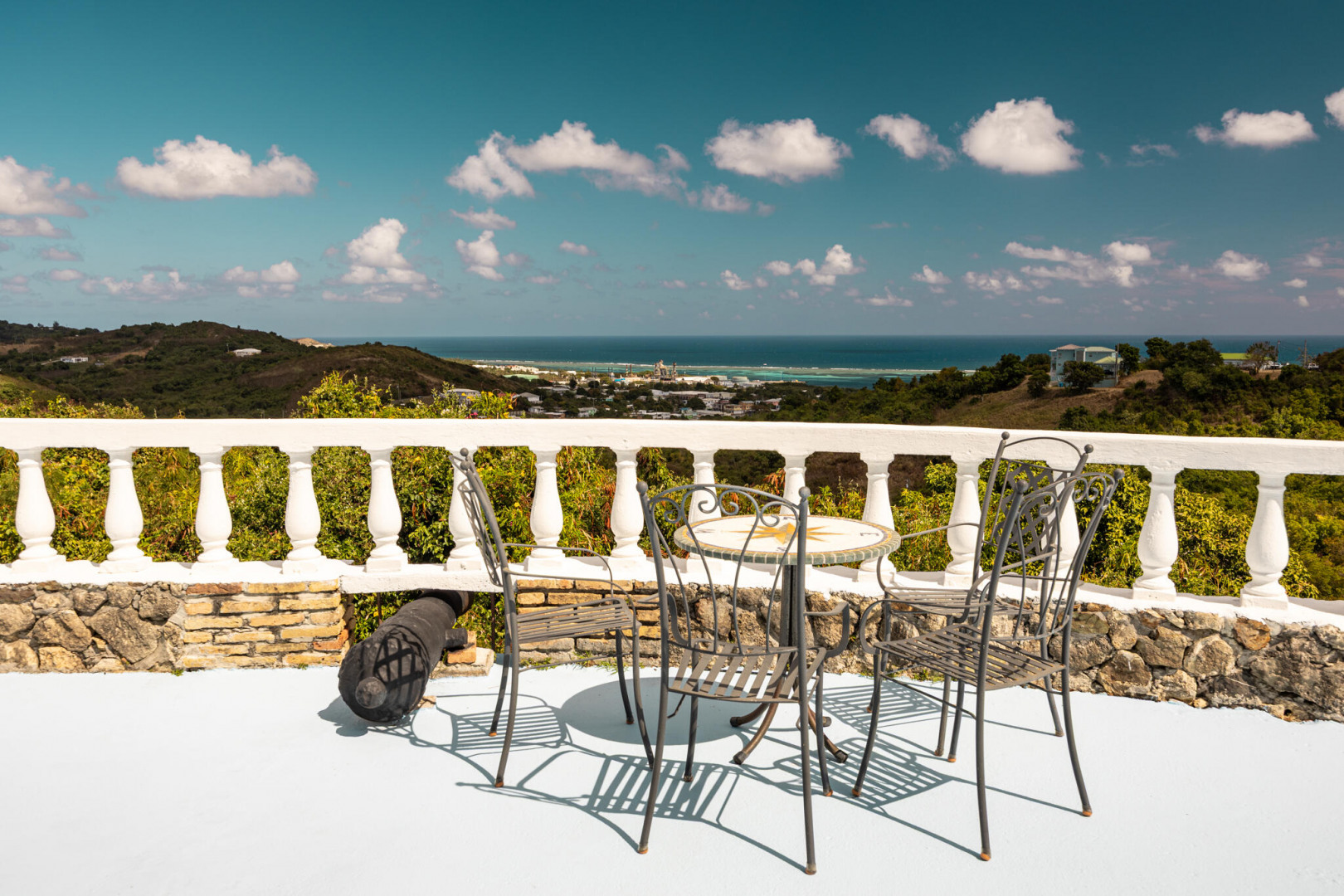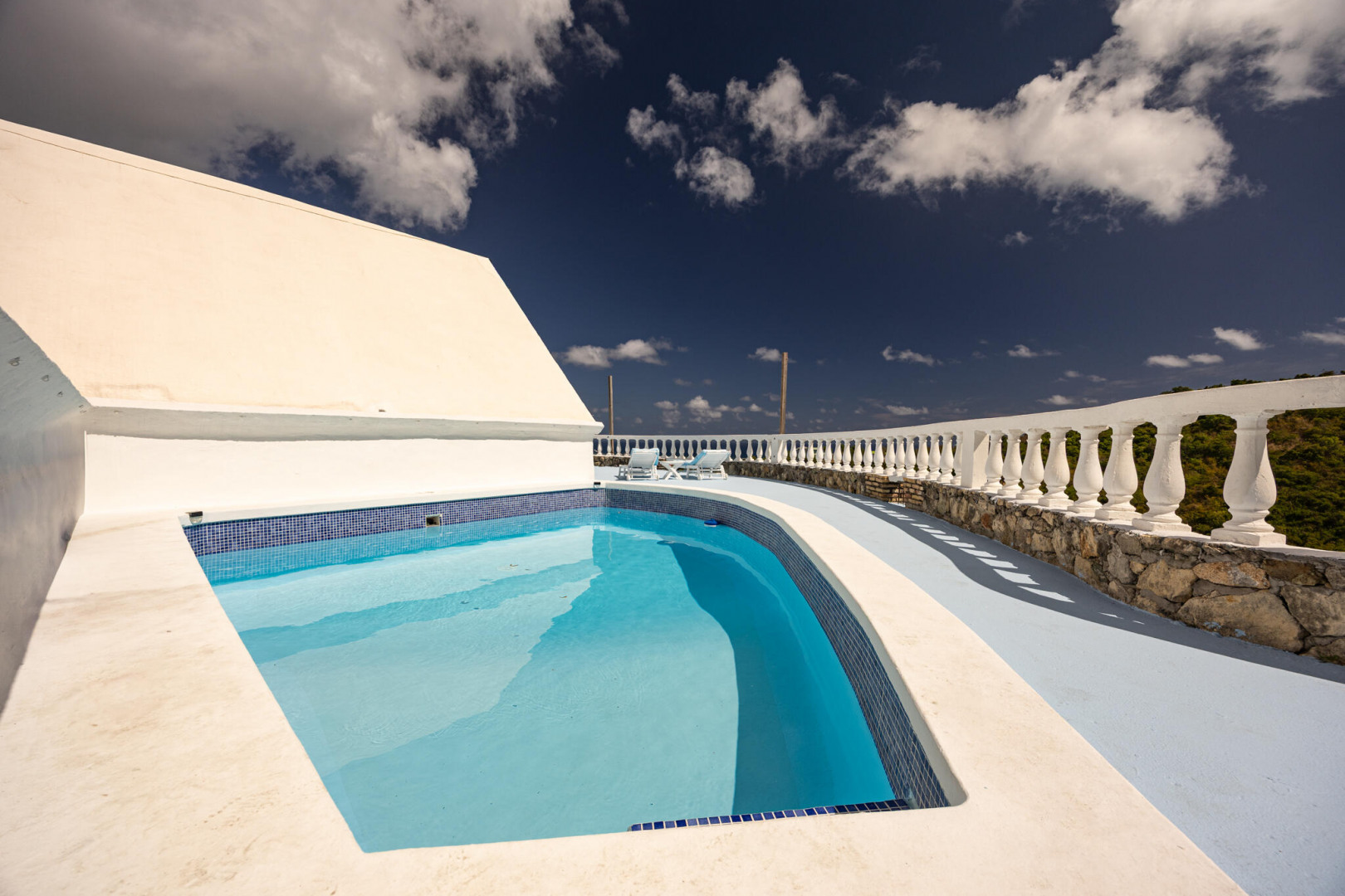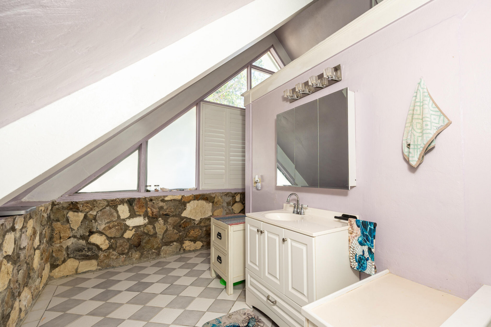 Stunning Custom A-Frame with Caribbean ViewsDesigned by Dick Speas, this 3-bedroom, 3-bathroom custom-built Chalet style A-frame home blends modern efficiency with island charm. Enjoy breathtaking north-facing views of the Caribbean Sea across a lush tropical landscape. Featuring Danish brick and coral accents throughout, this meticulously maintained property is a true island retreat.Sustainability meets comfort with 24 solar panels and triple Tesla batteries, and a 16kW Generac propane generator with an auto-transfer switch. Recent upgrades include all-new AC units in the bedrooms and kitchen, new ceiling fans, and updated appliances. A solar-powered gated entry ensures privacy and convenience. Relax on the spacious outdoor patio and take in the beauty of island living