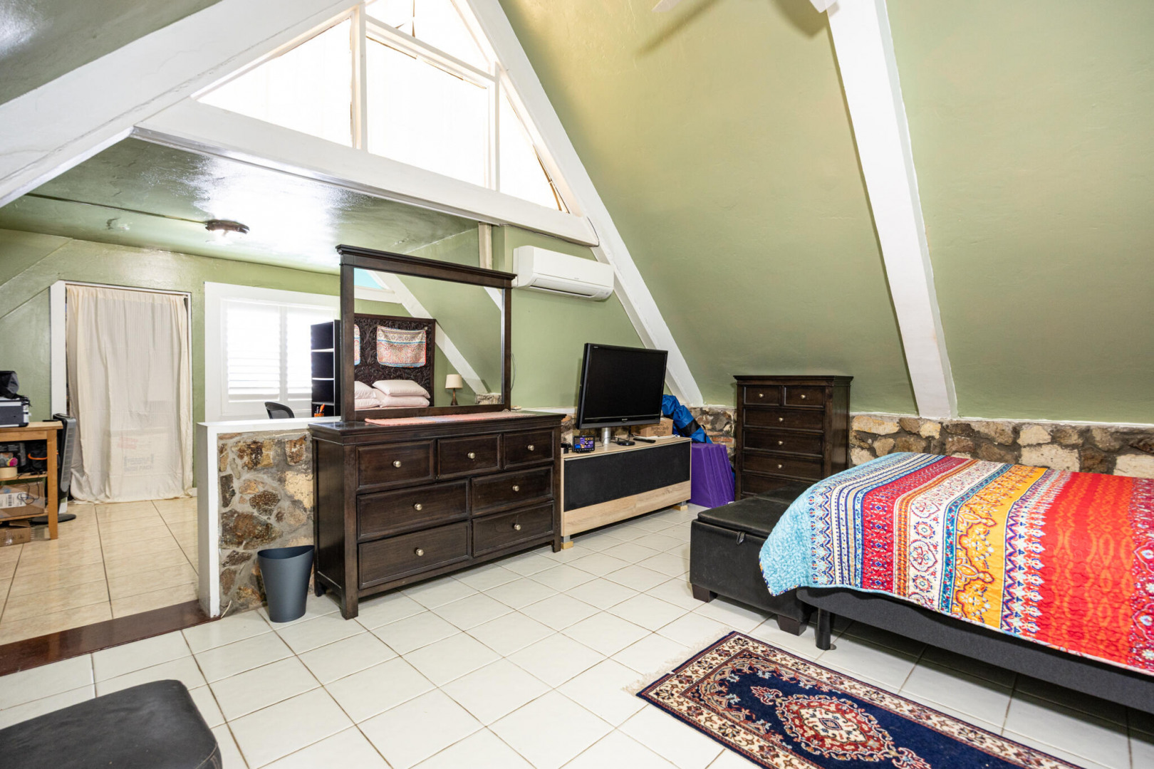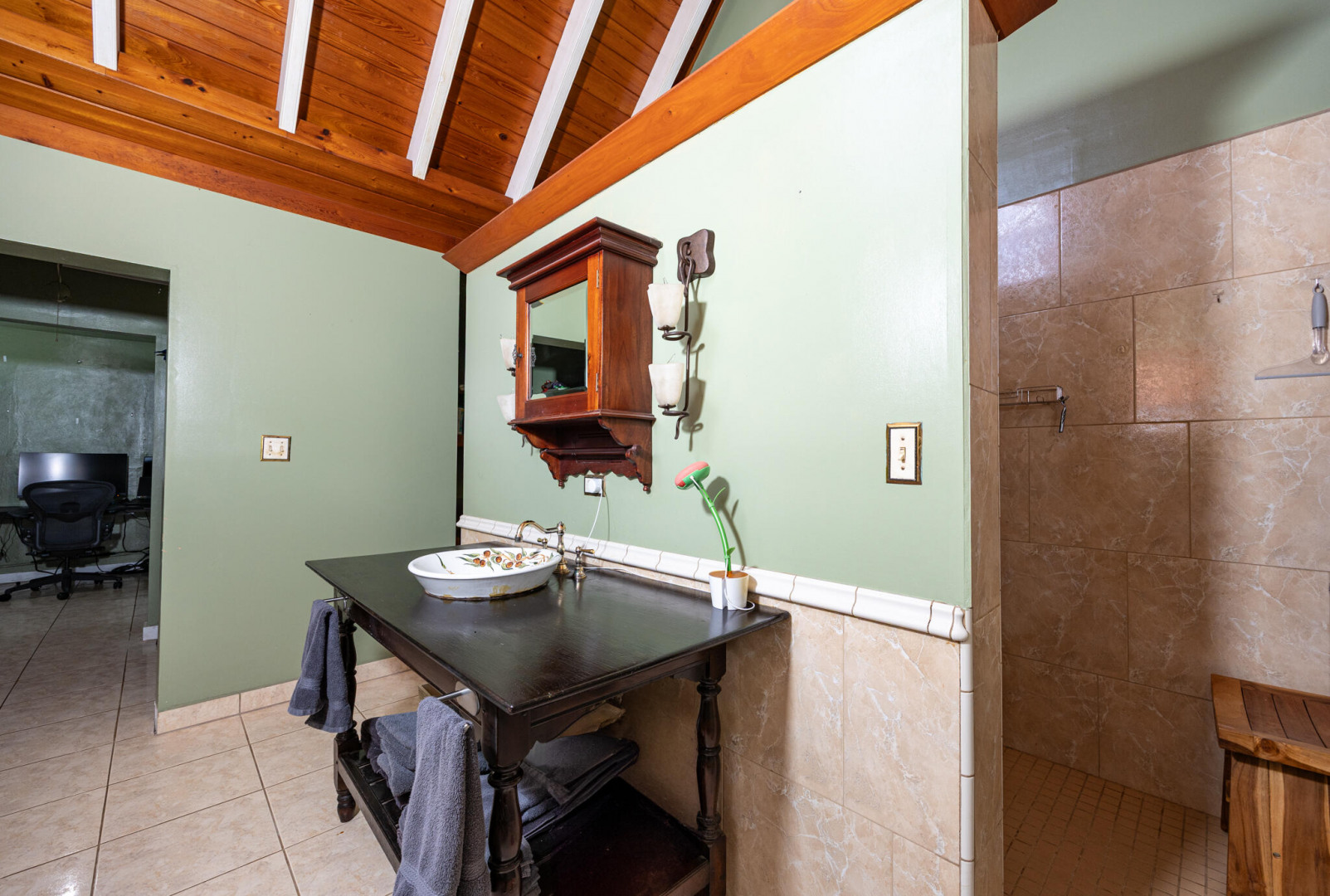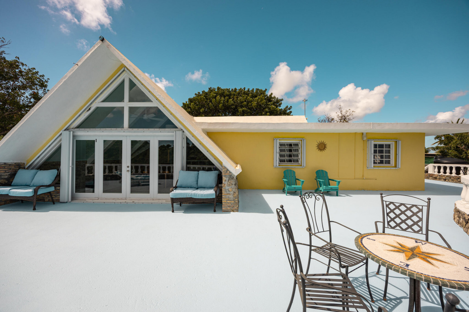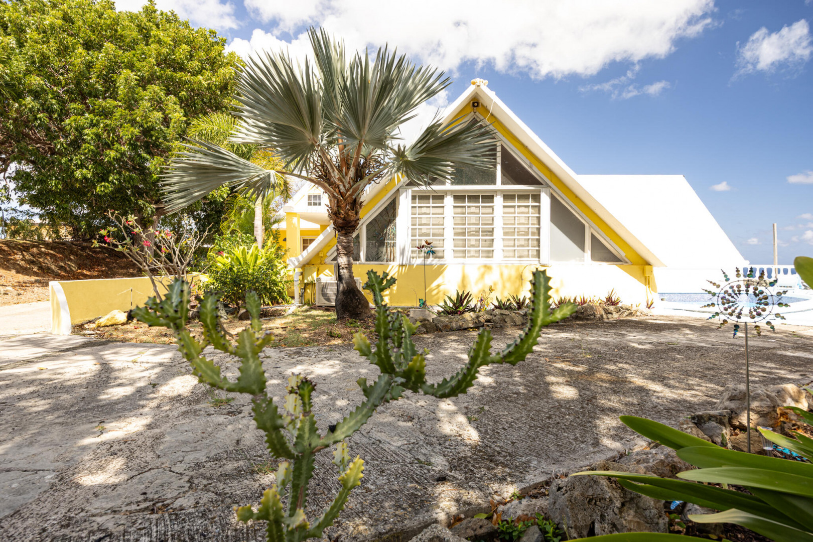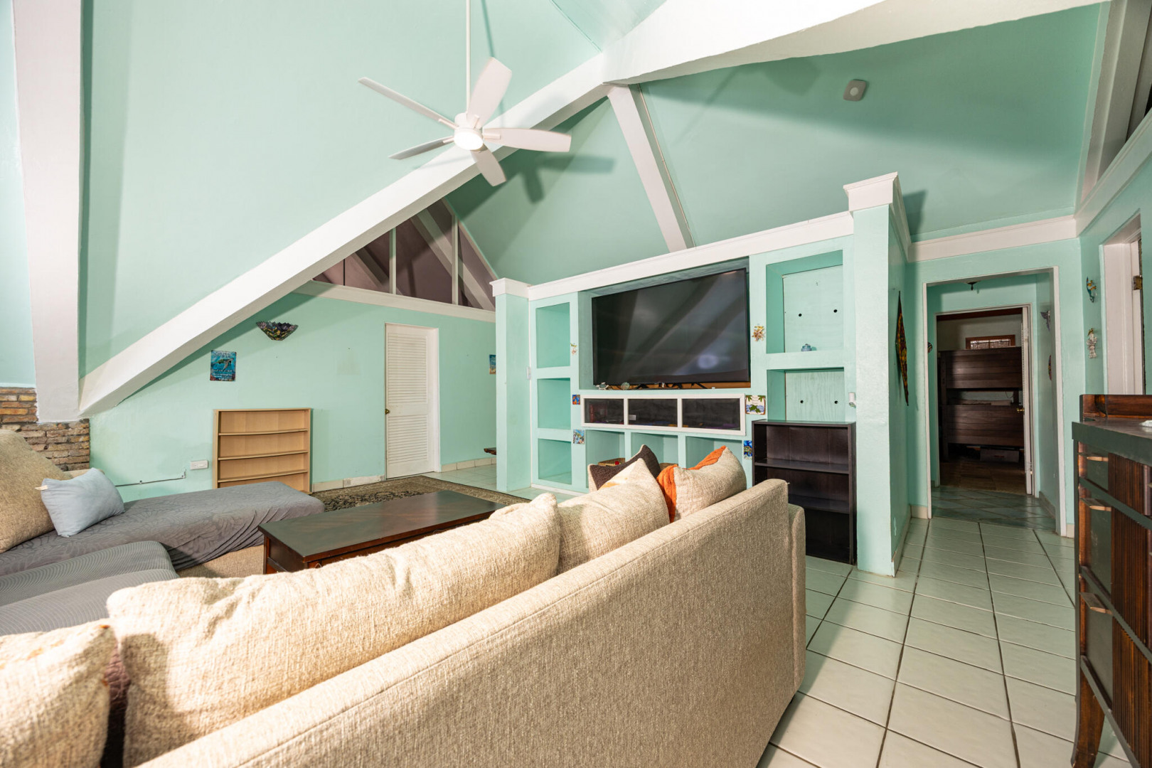 Stunning Custom A-Frame with Caribbean ViewsDesigned by Dick Speas, this 3-bedroom, 3-bathroom custom-built Chalet style A-frame home blends modern efficiency with island charm. Enjoy breathtaking north-facing views of the Caribbean Sea across a lush tropical landscape. Featuring Danish brick and coral accents throughout, this meticulously maintained property is a true island retreat.Sustainability meets comfort with 24 solar panels and triple Tesla batteries, and a 16kW Generac propane generator with an auto-transfer switch. Recent upgrades include all-new AC units in the bedrooms and kitchen, new ceiling fans, and updated appliances. A solar-powered gated entry ensures privacy and convenience. Relax on the spacious outdoor patio and take in the beauty of island living